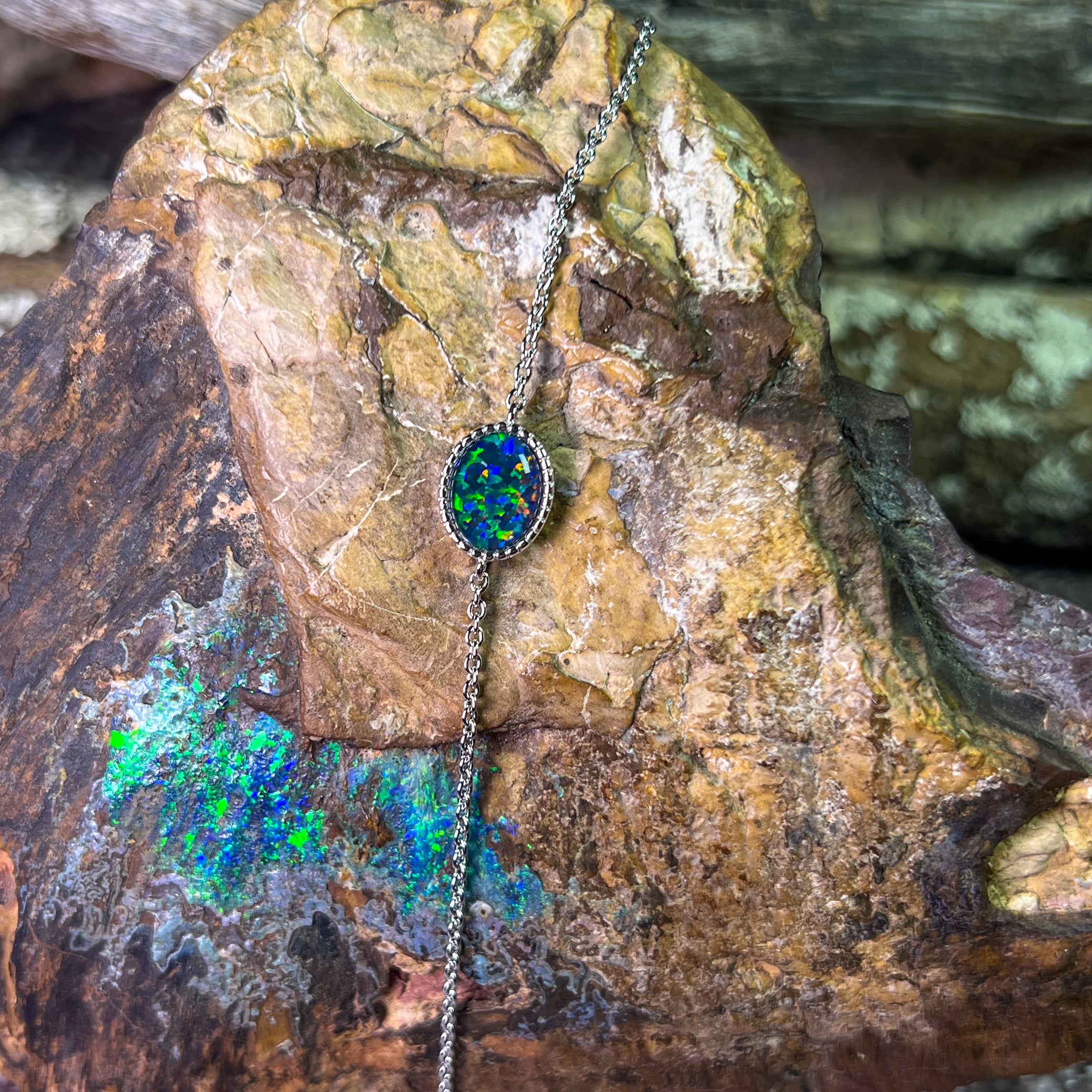 Elevate your style with our stunning Sterling Silver Oval Opal triplet solitaire bracelet! Its unique millgrain finish adds a touch of elegance to any outfit. Make a statement and stand out from the crowd with this gorgeous piece. Order now and experience the benefits of our high-quality craftsmanship.