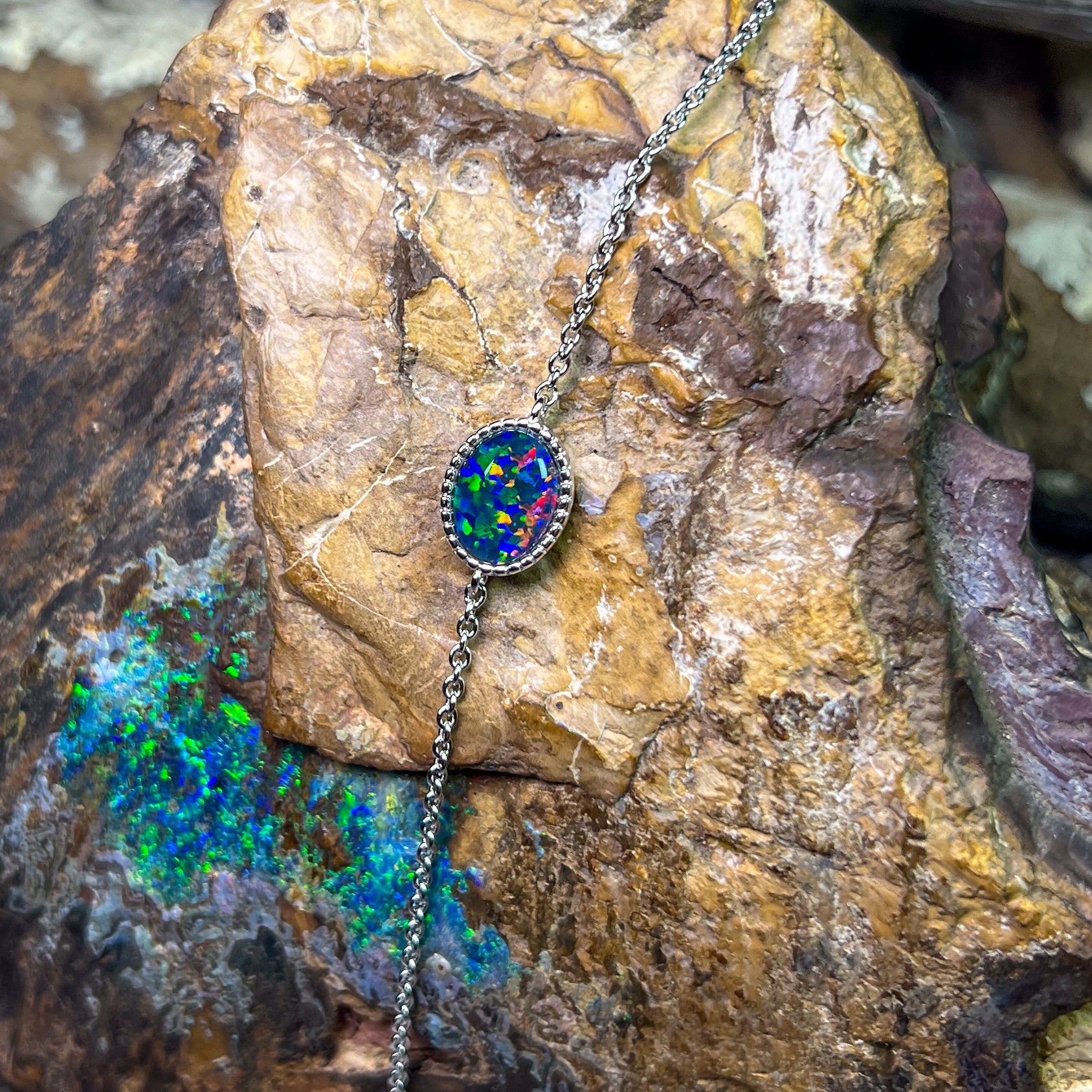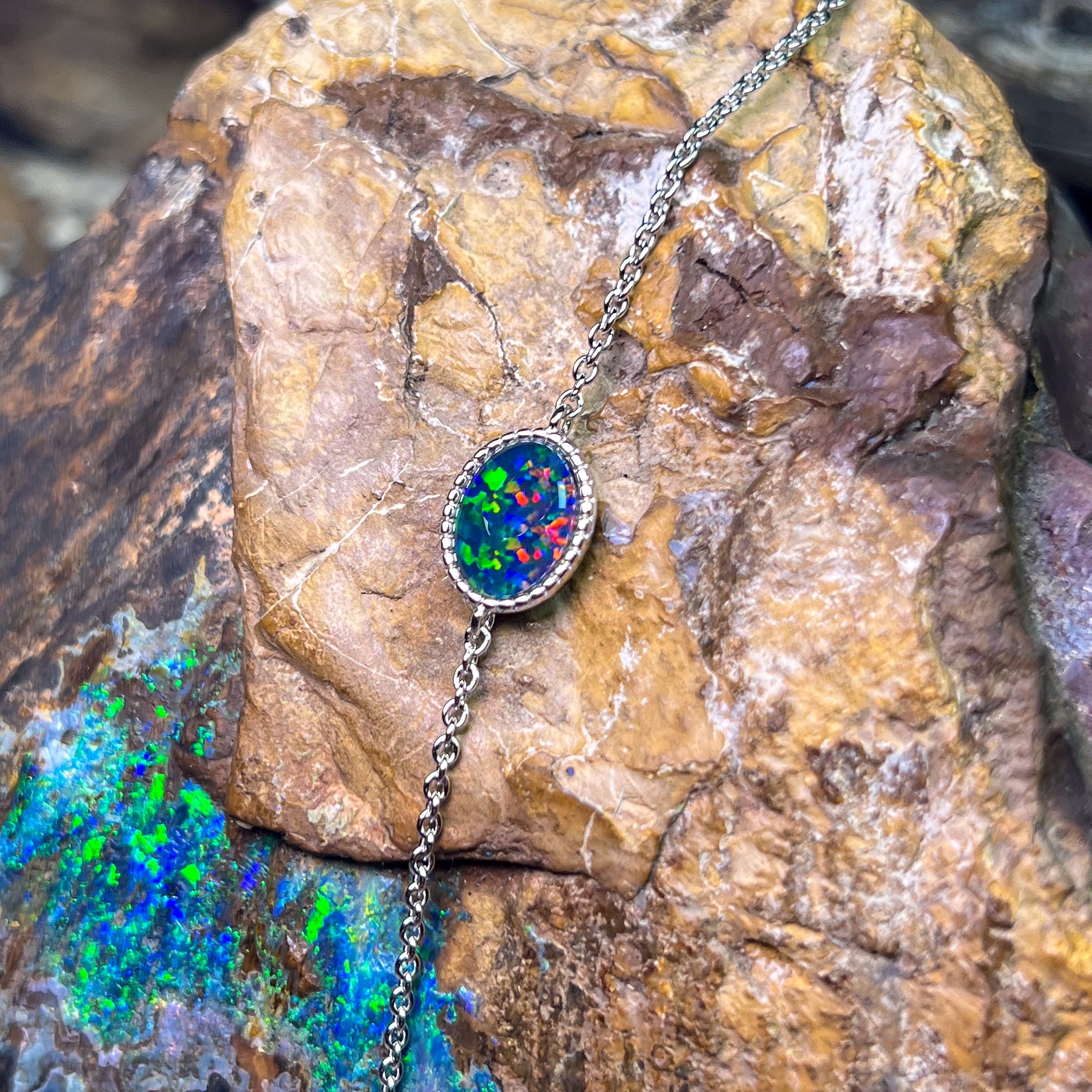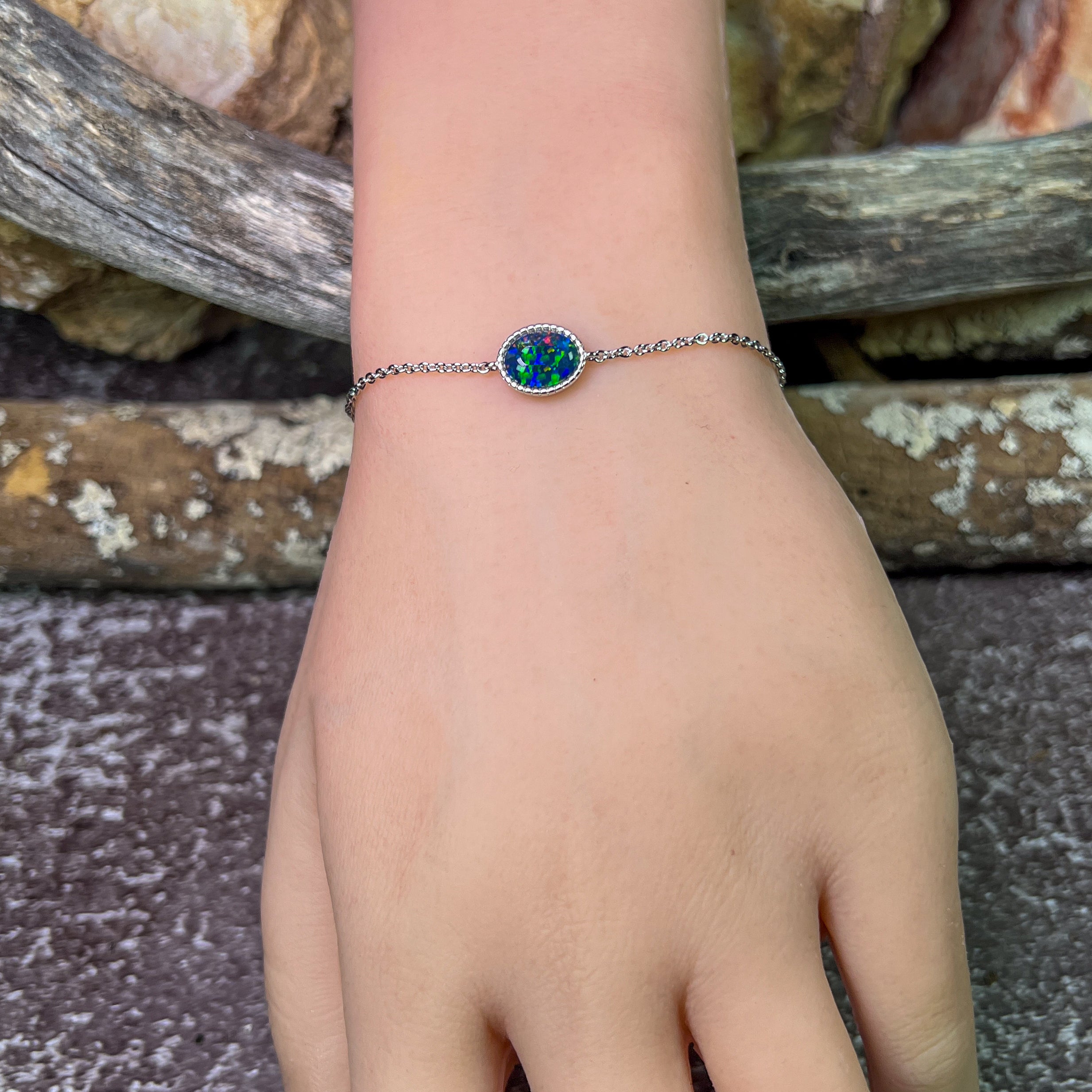 Sterling Silver Oval Opal triplet solitaire bracelet