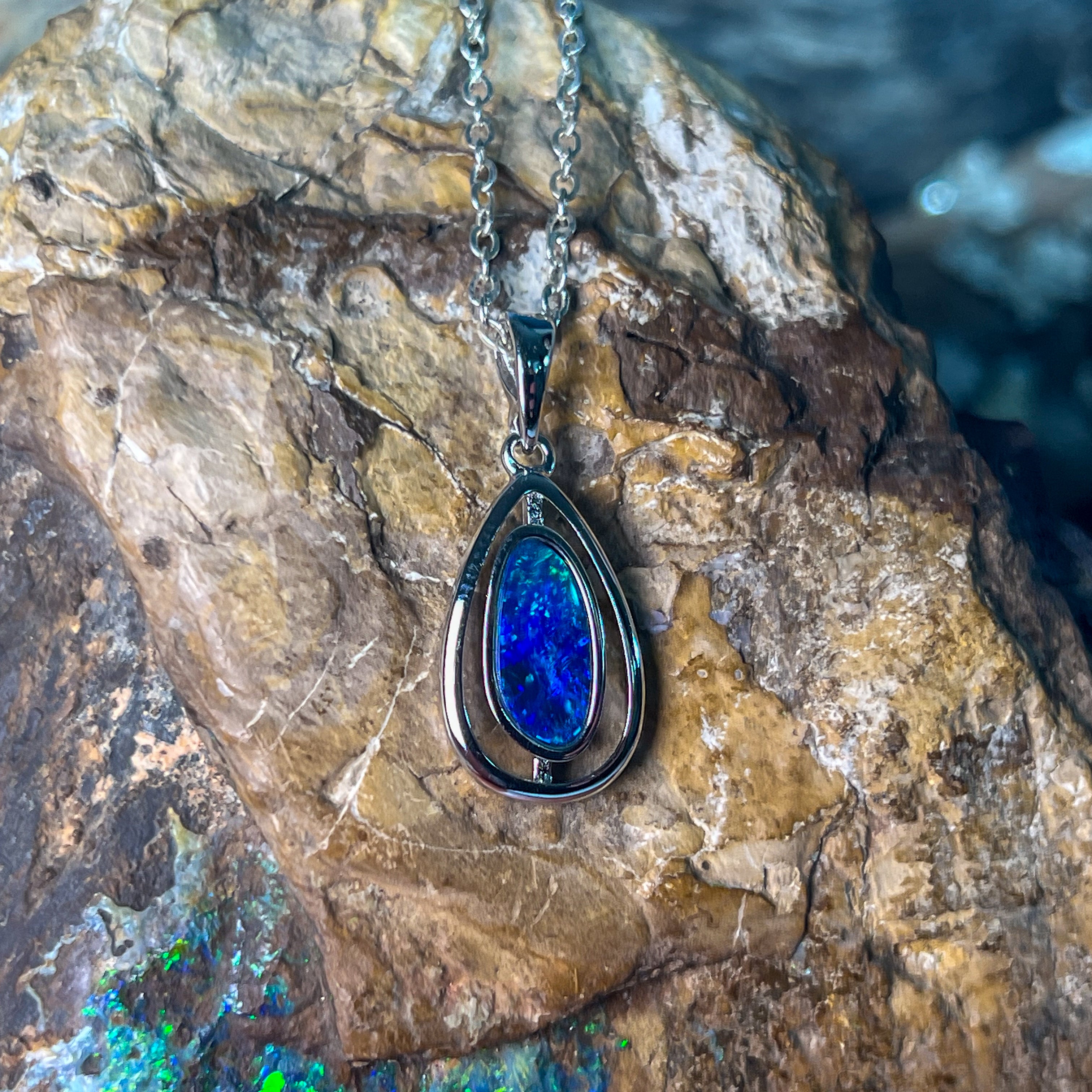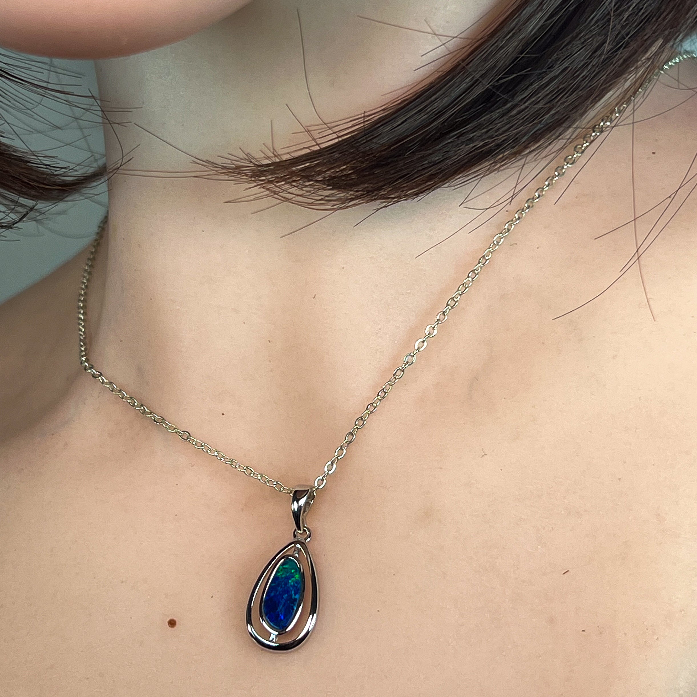 Sterling Silver Pear shape cut out design Opal doublet Blue Green pendant