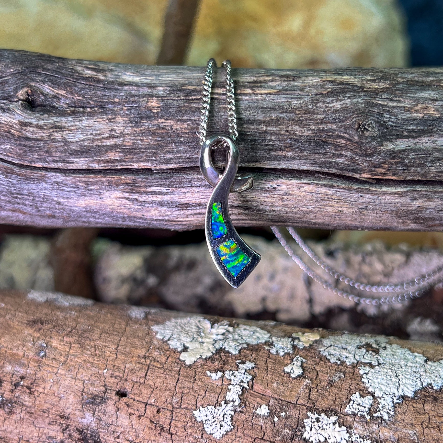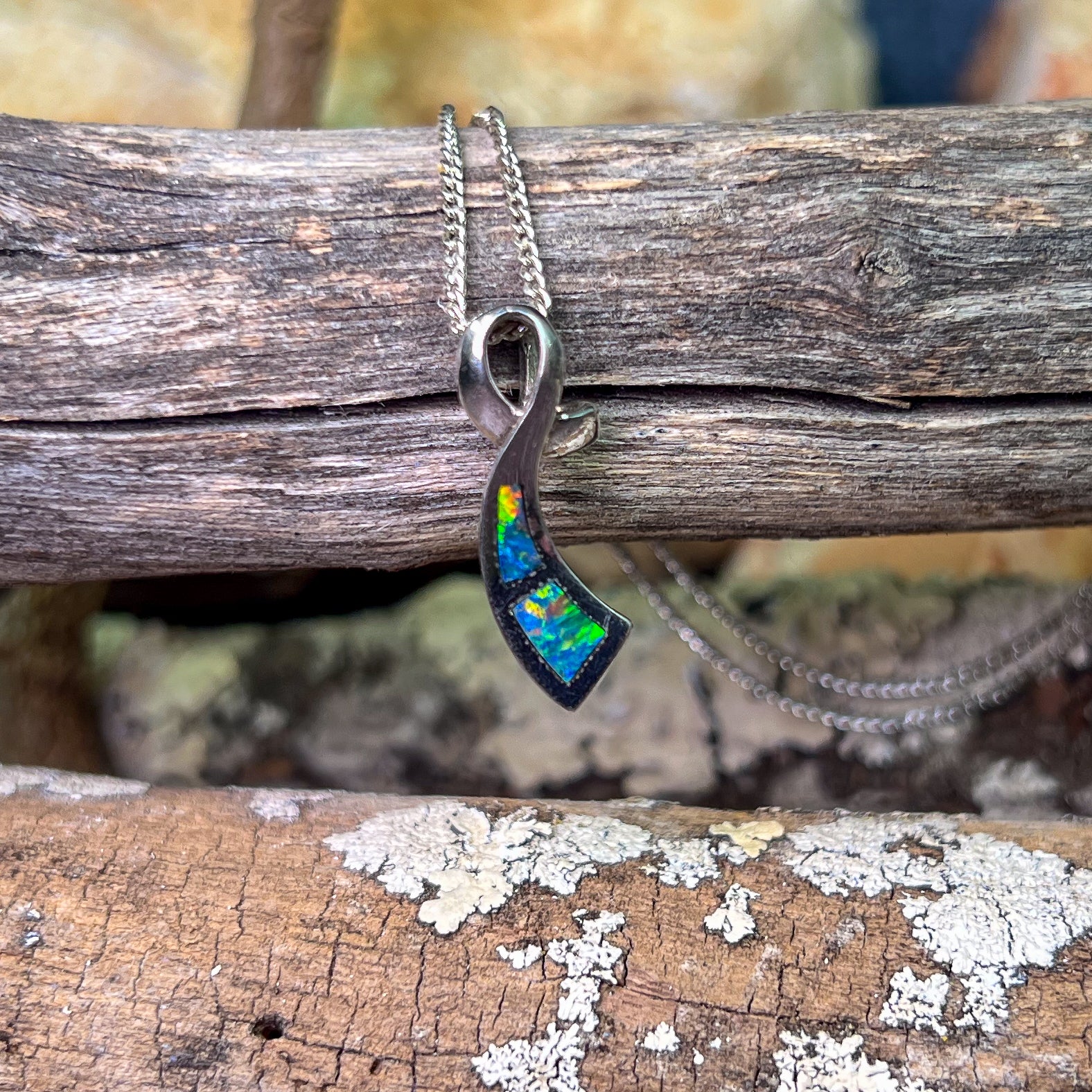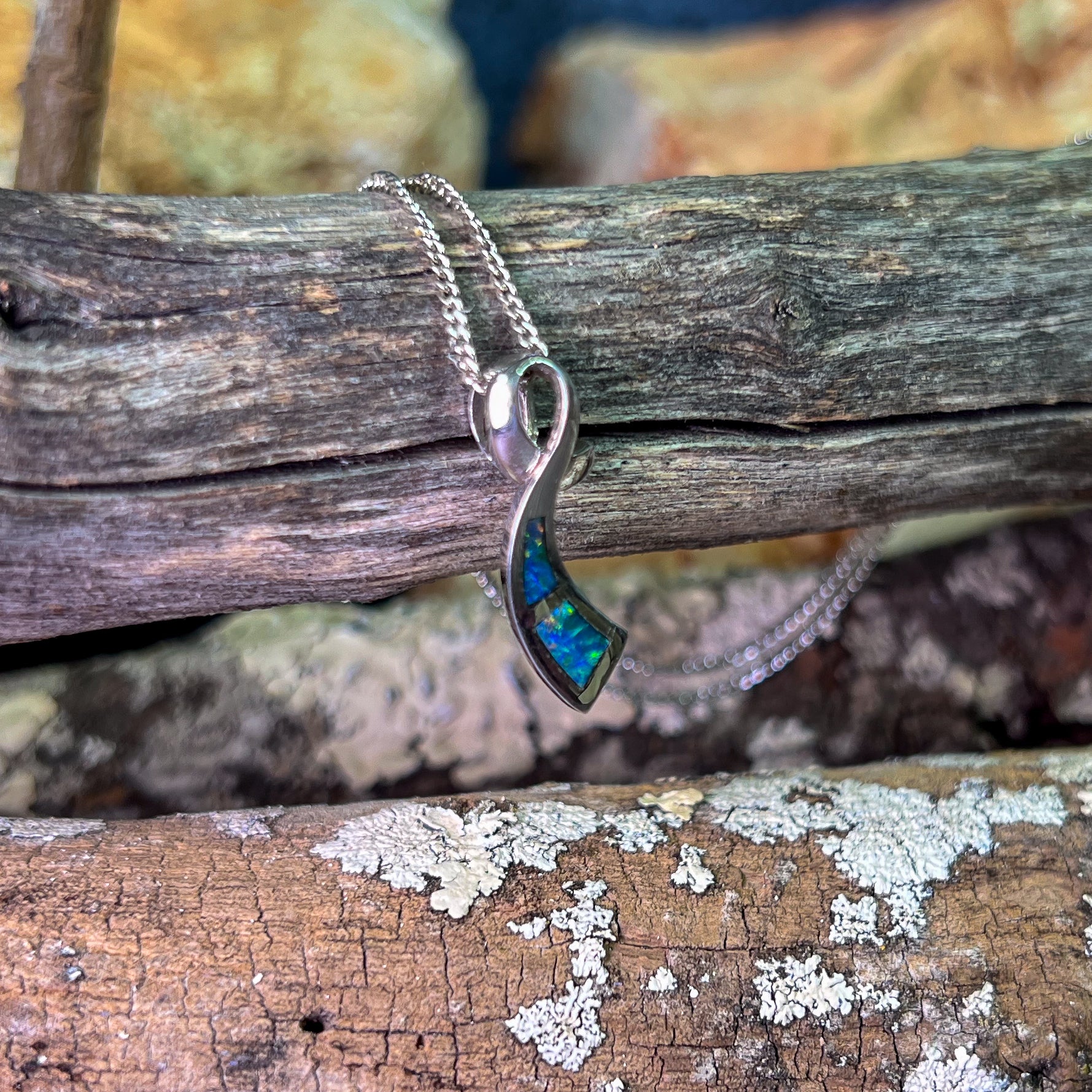 STERLING SILVER TWIST DESIGN OPAL INLAY PENDANT