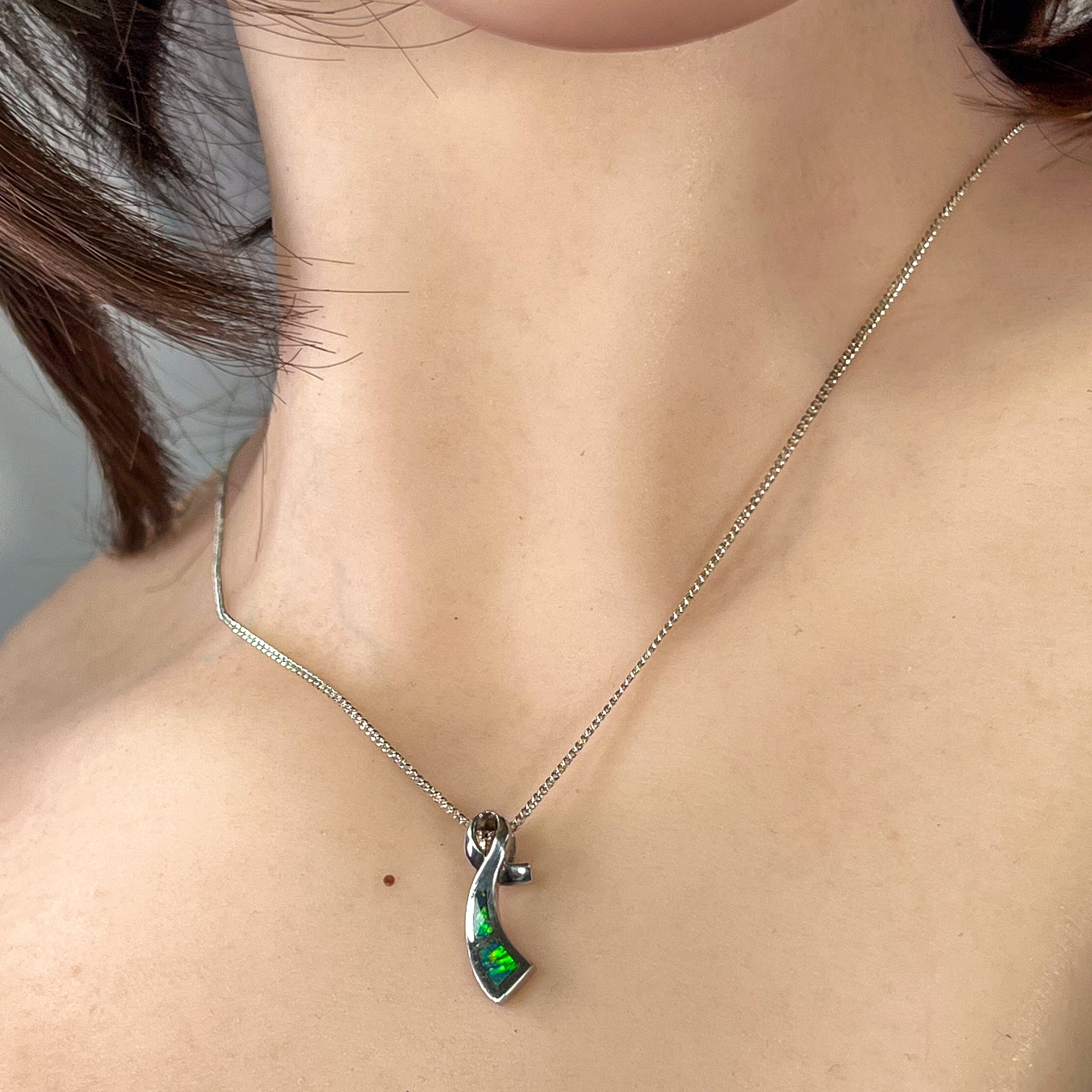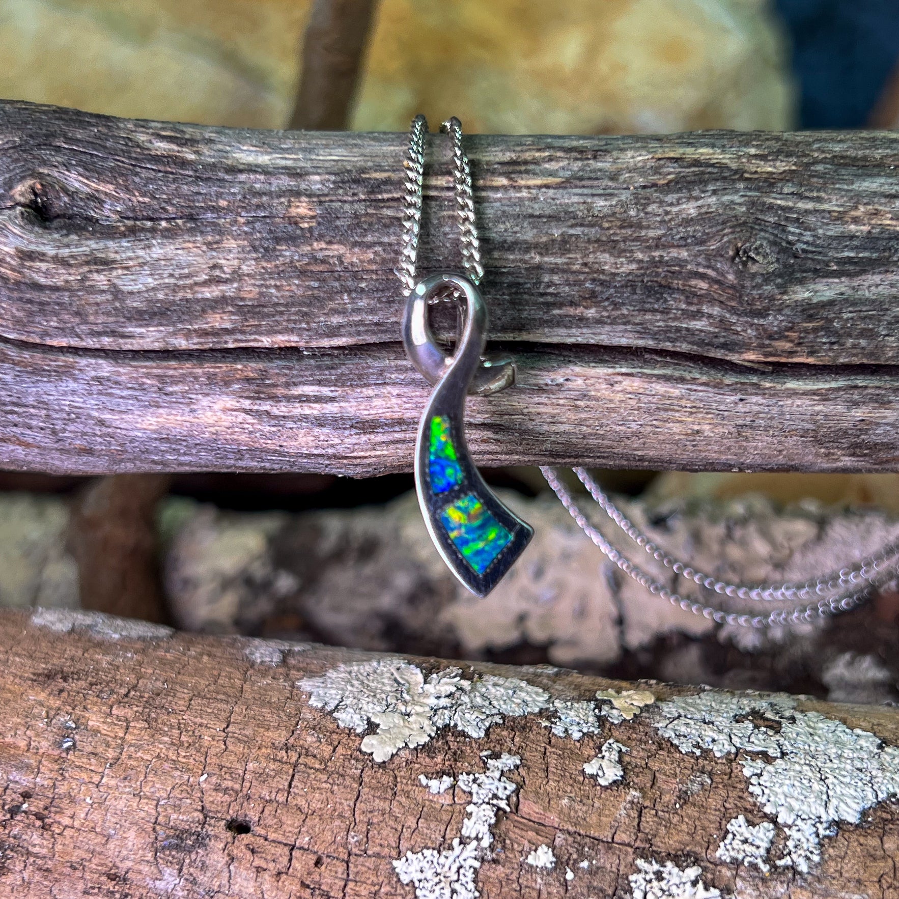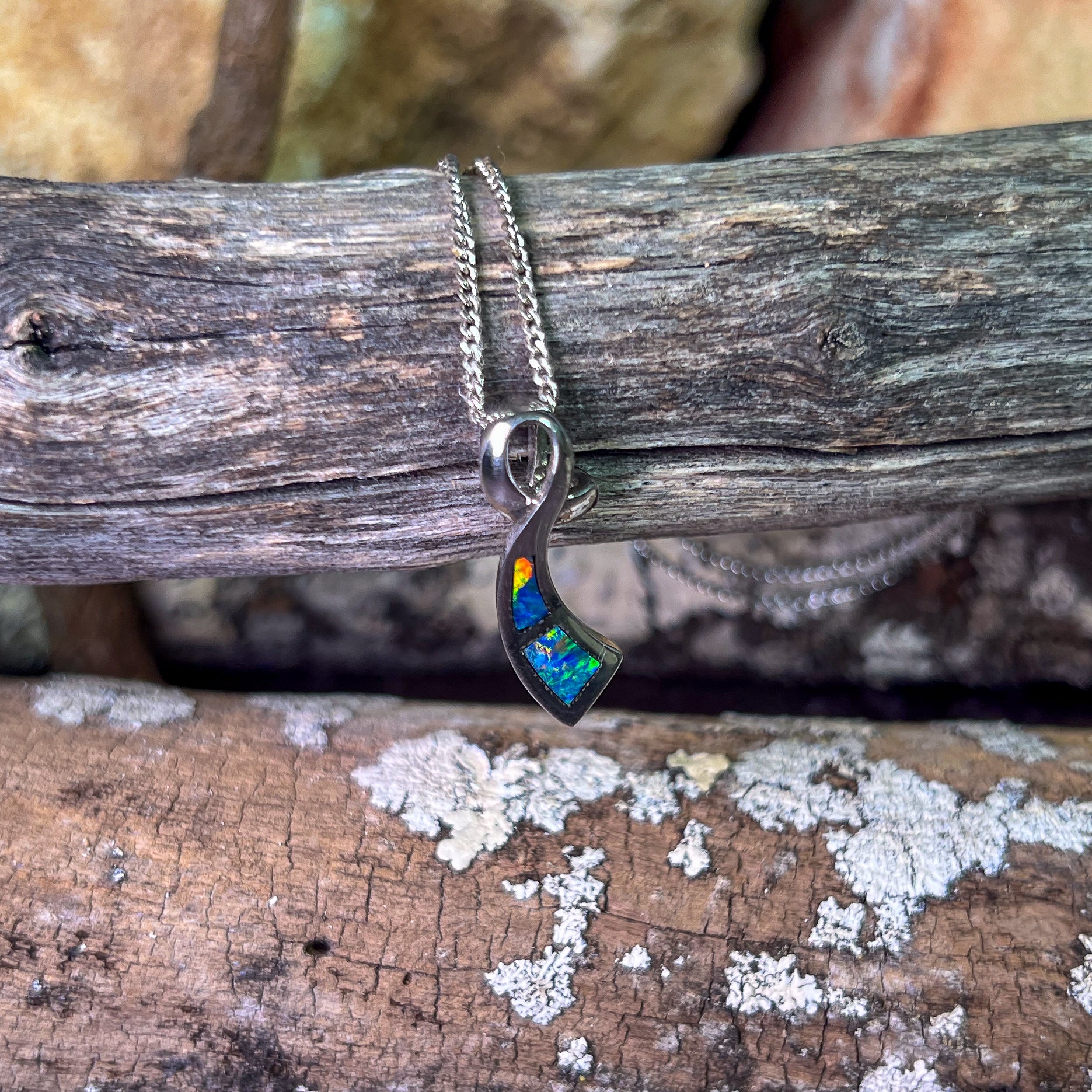 STERLING SILVER TWIST DESIGN OPAL INLAY PENDANT