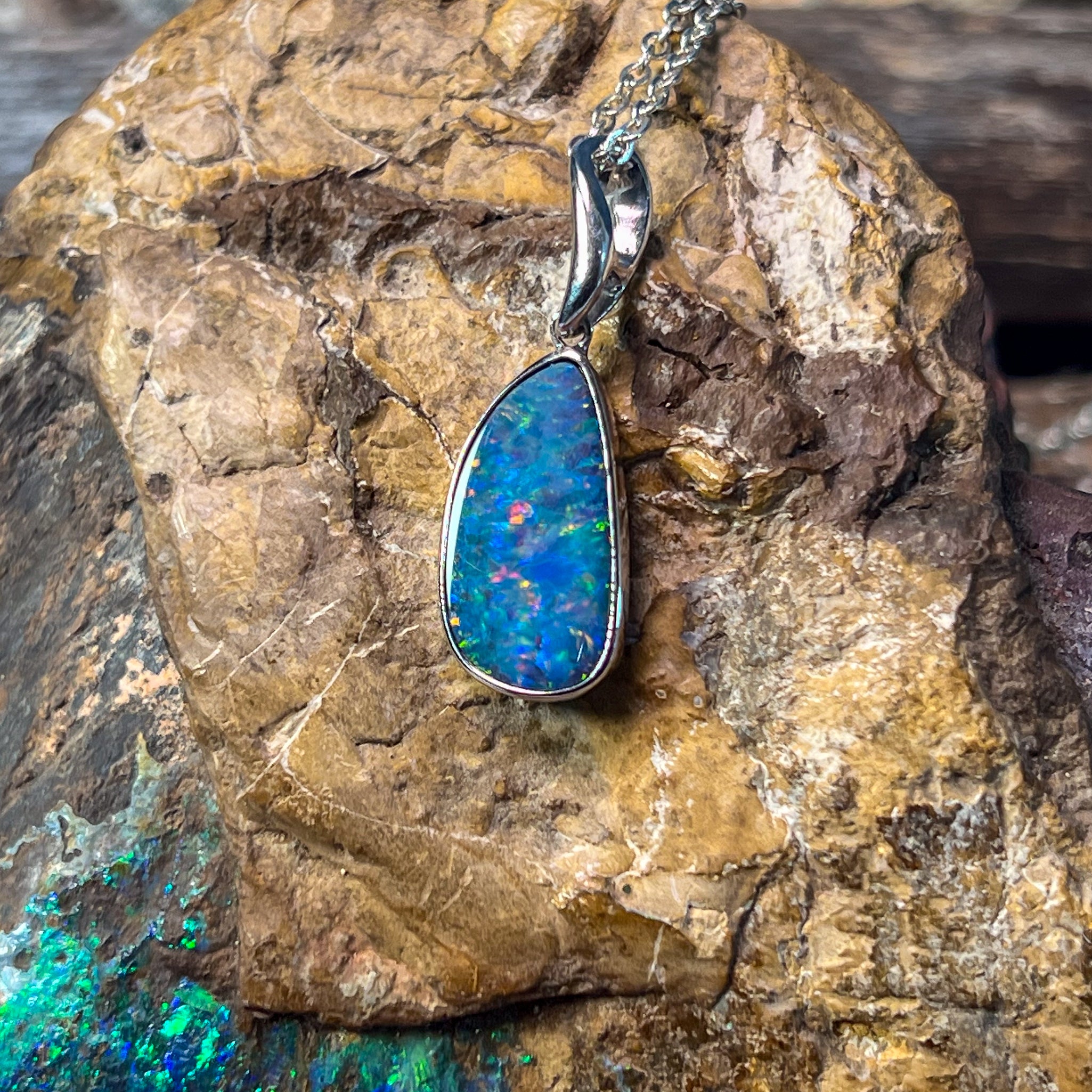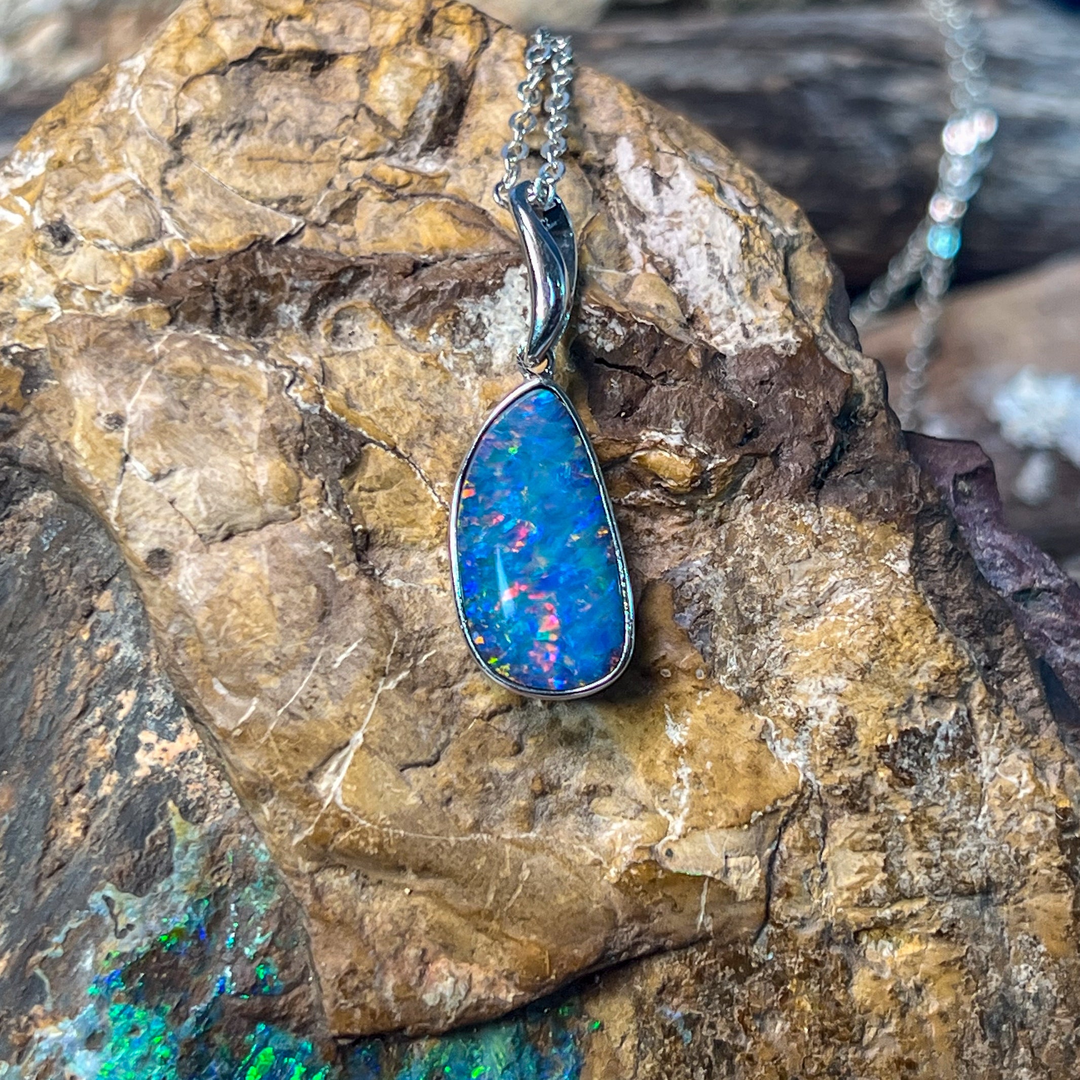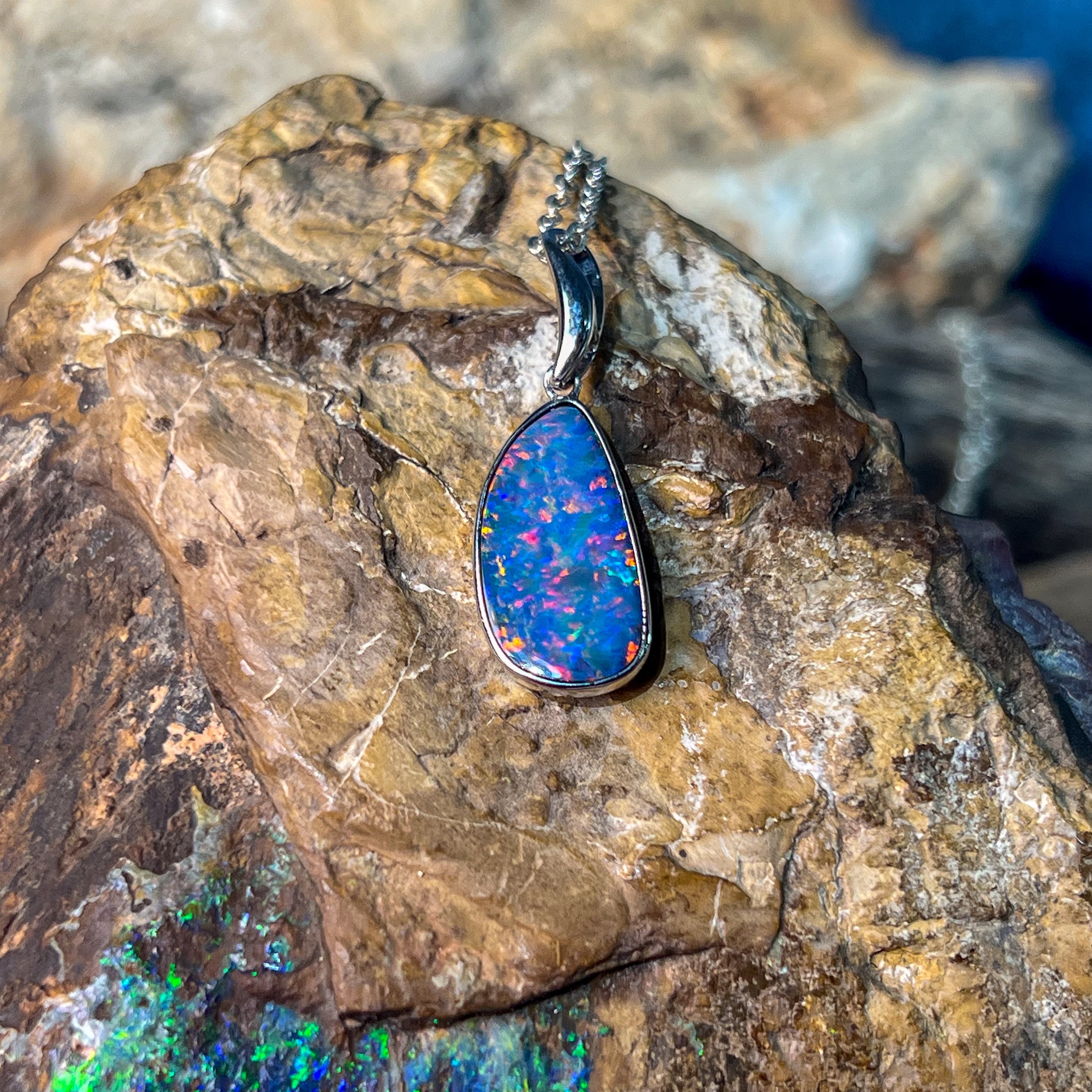 Sterling Silver Red Blue freeform Opal doublet bezel set pendant