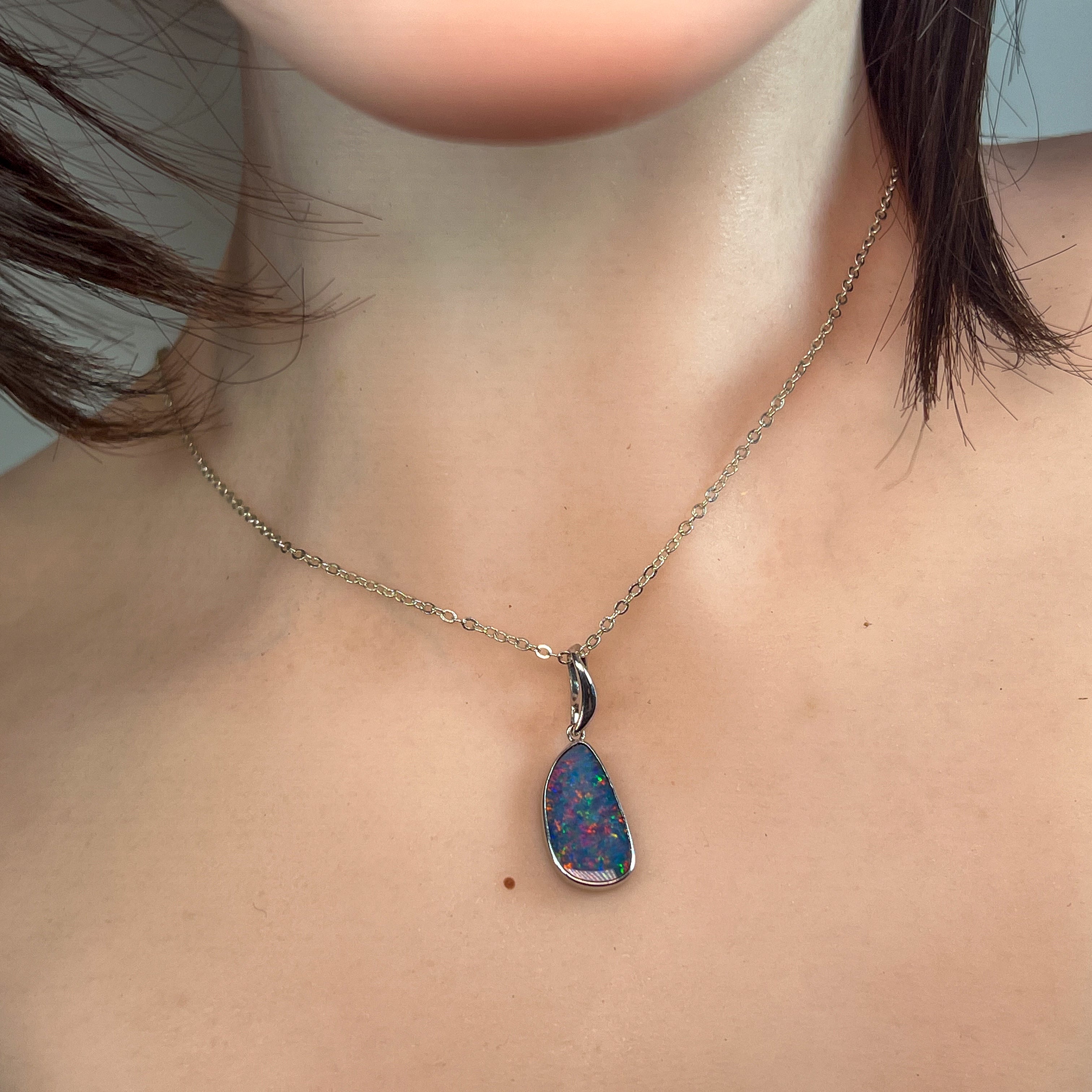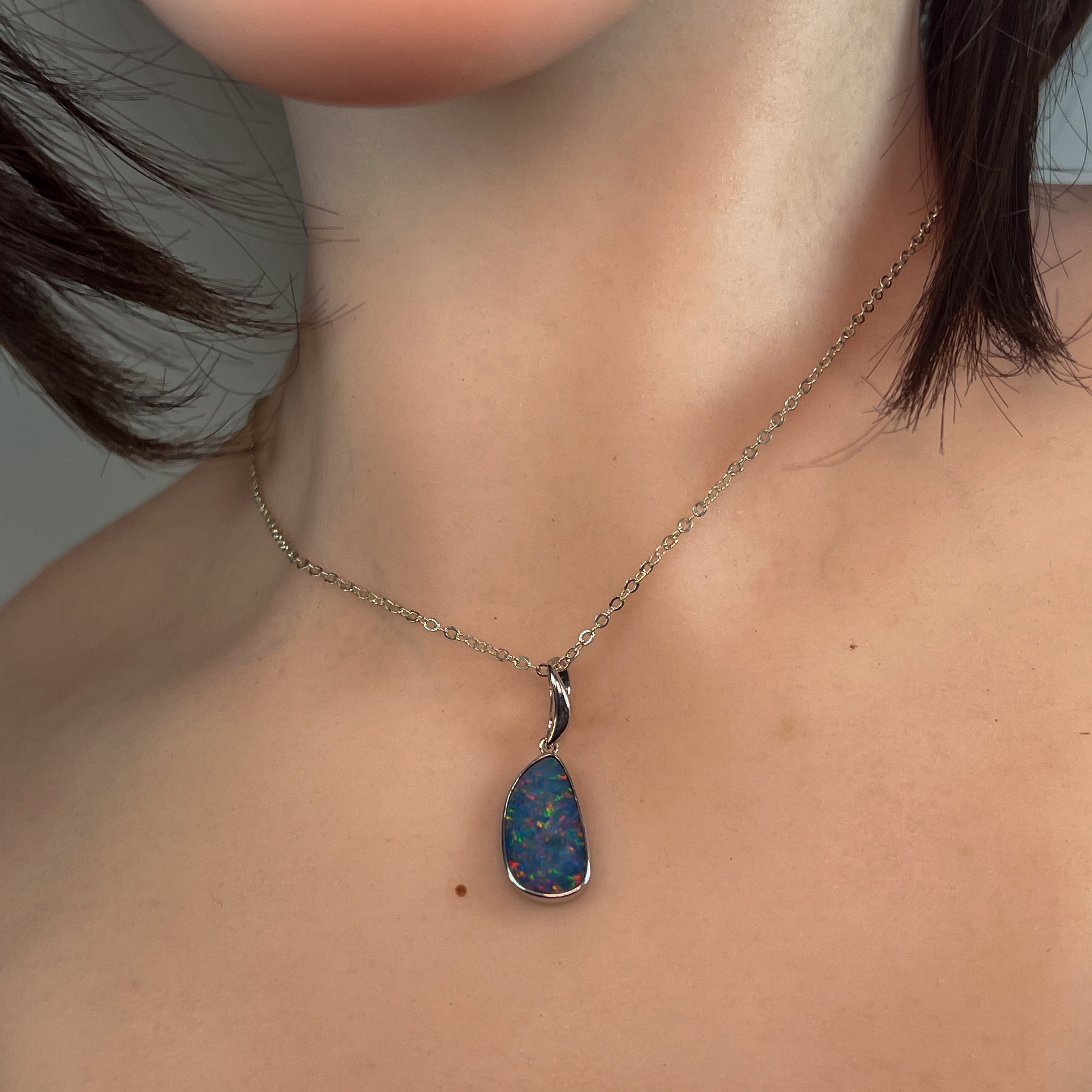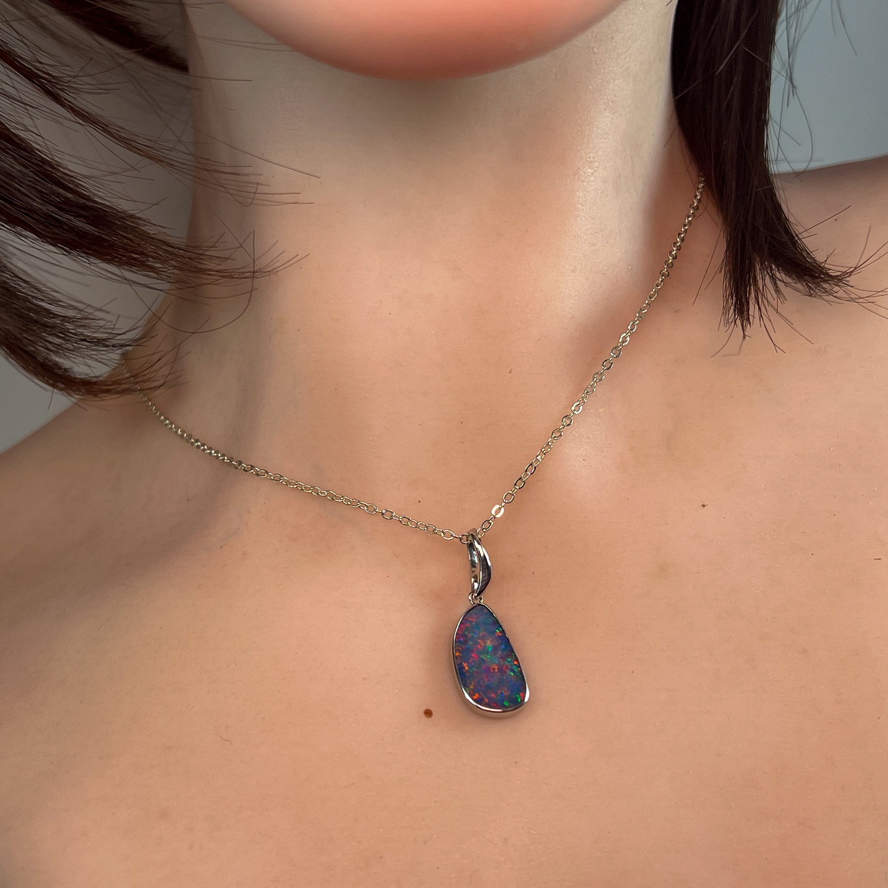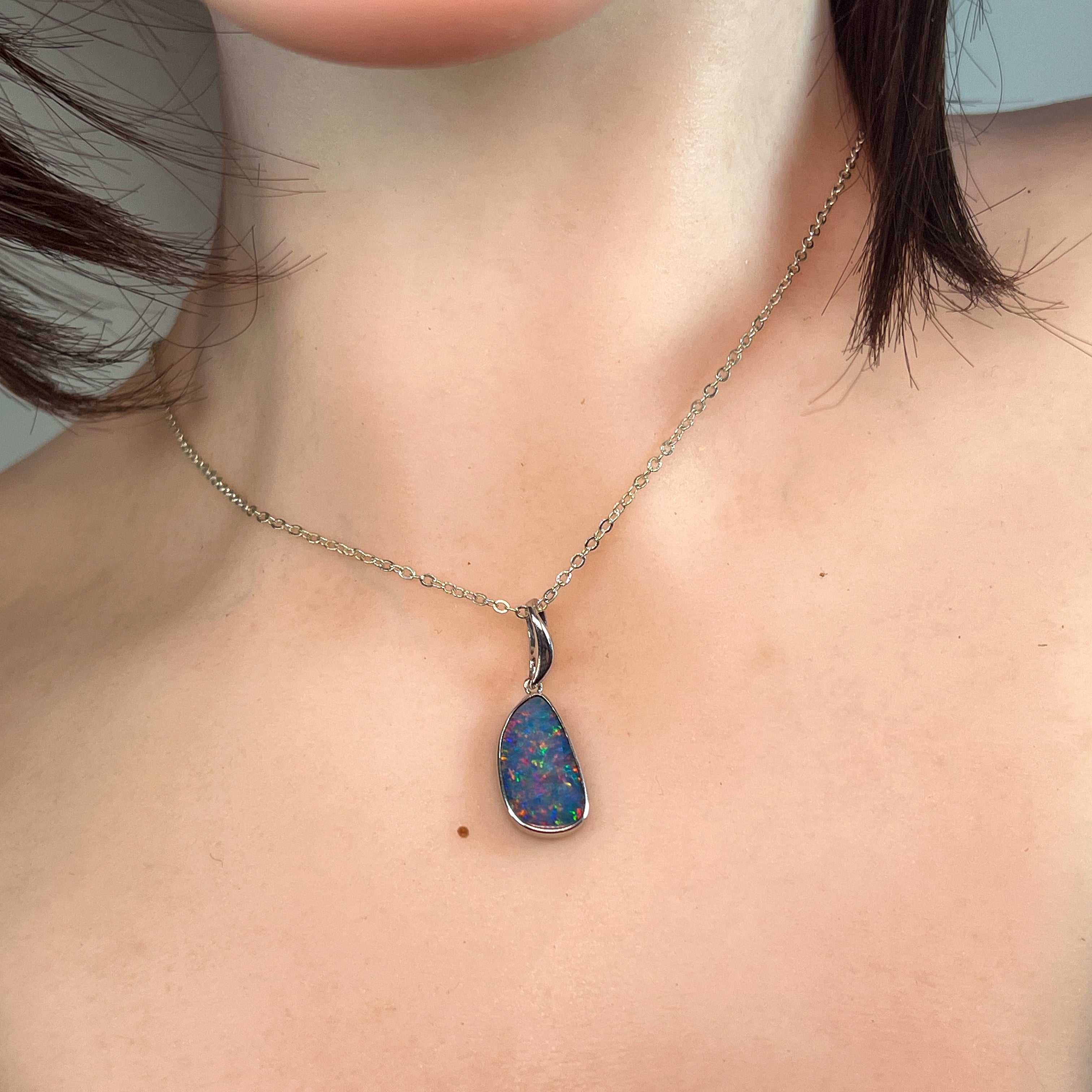 Showcasing a vibrant play of colors, this sterling silver pendant features a red and blue freeform opal doublet artfully bezel set for a secure, stylish finish. Its unique design brings a captivating sparkle to any outfit, making it perfect for adding a standout touch to your collection. Lightweight and durable, this pendant combines elegance with everyday wearability.