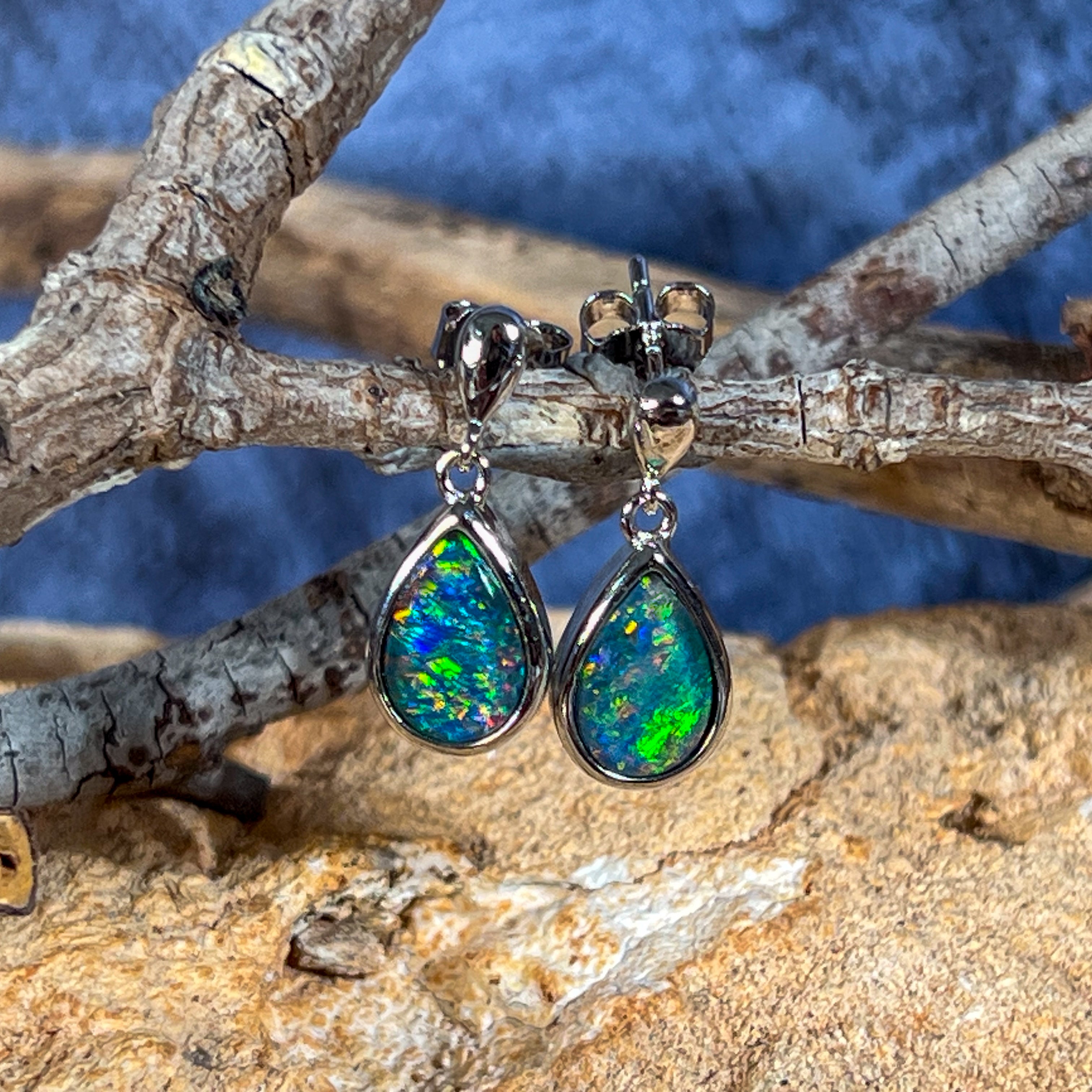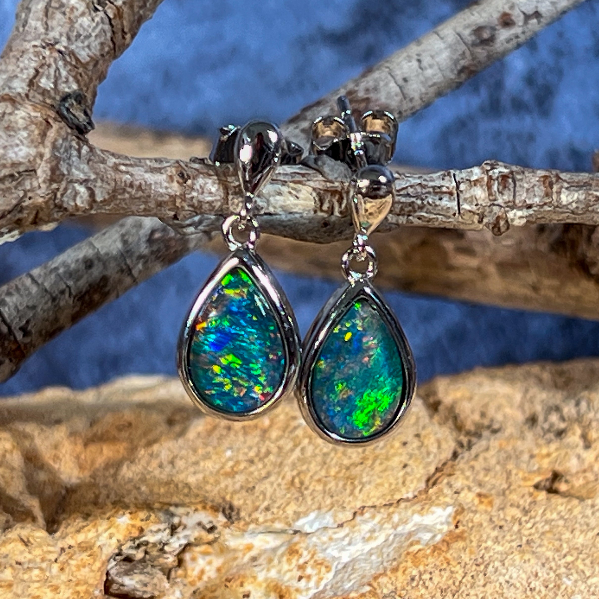 Sterling Silver short dangling pear shape Opal triplet 9x6mm