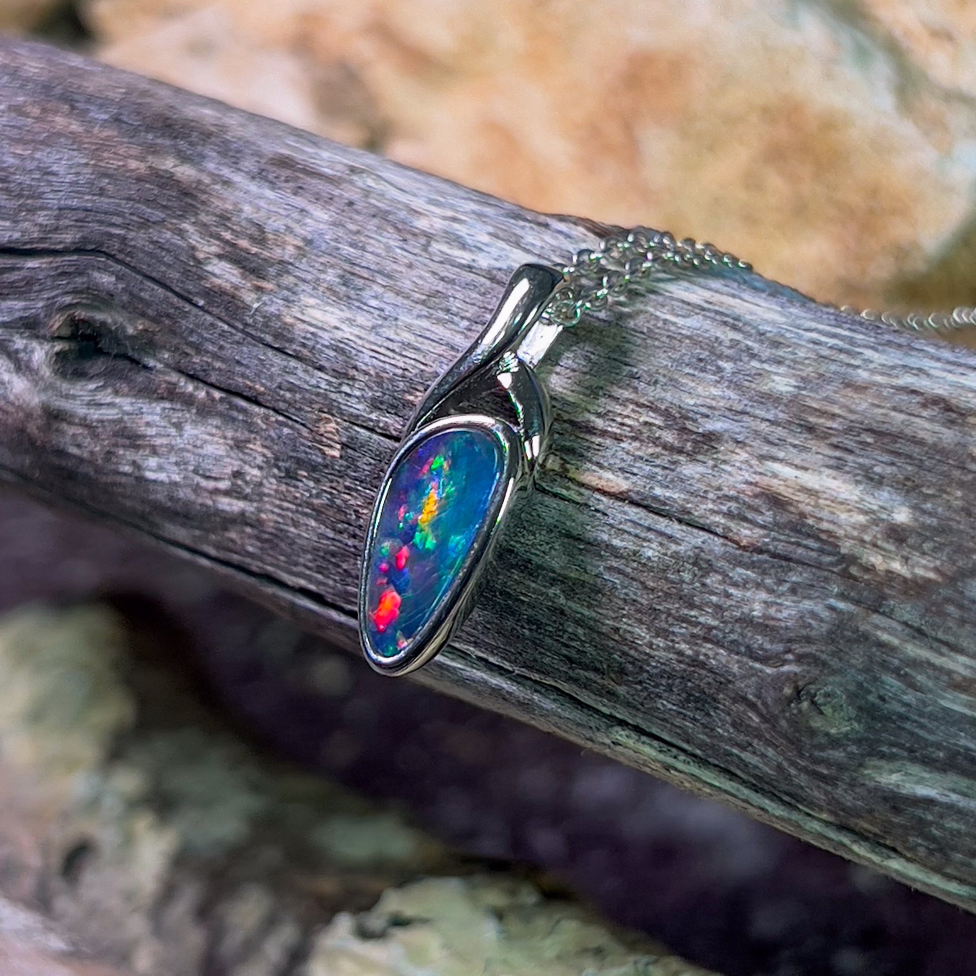 Sparkle with the mesmerizing fire colour of our Sterling Silver Teardrop shape Opal doublet pendant. Elegantly crafted, this pendant adds a touch of radiance and sophistication to any outfit. Embrace the enchanting beauty of the opal doublet and let its fiery hues inspire you every day!