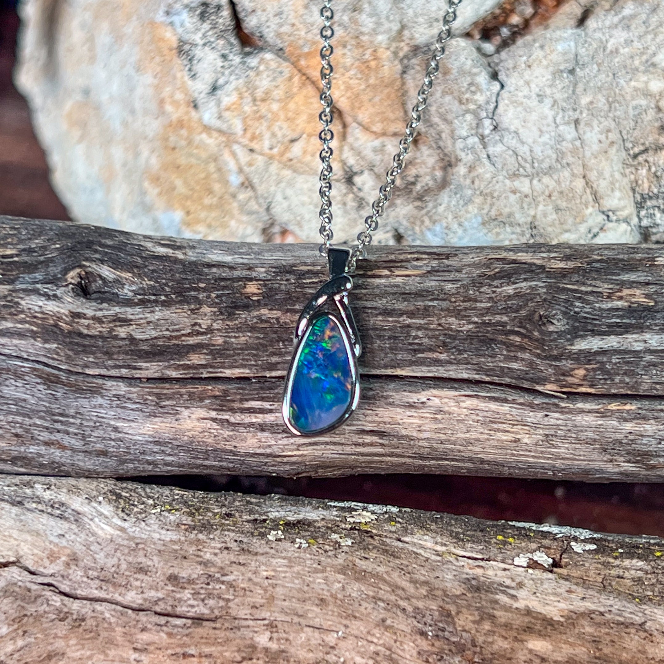 Sterling Silver twist loop Opal doublet pendant
