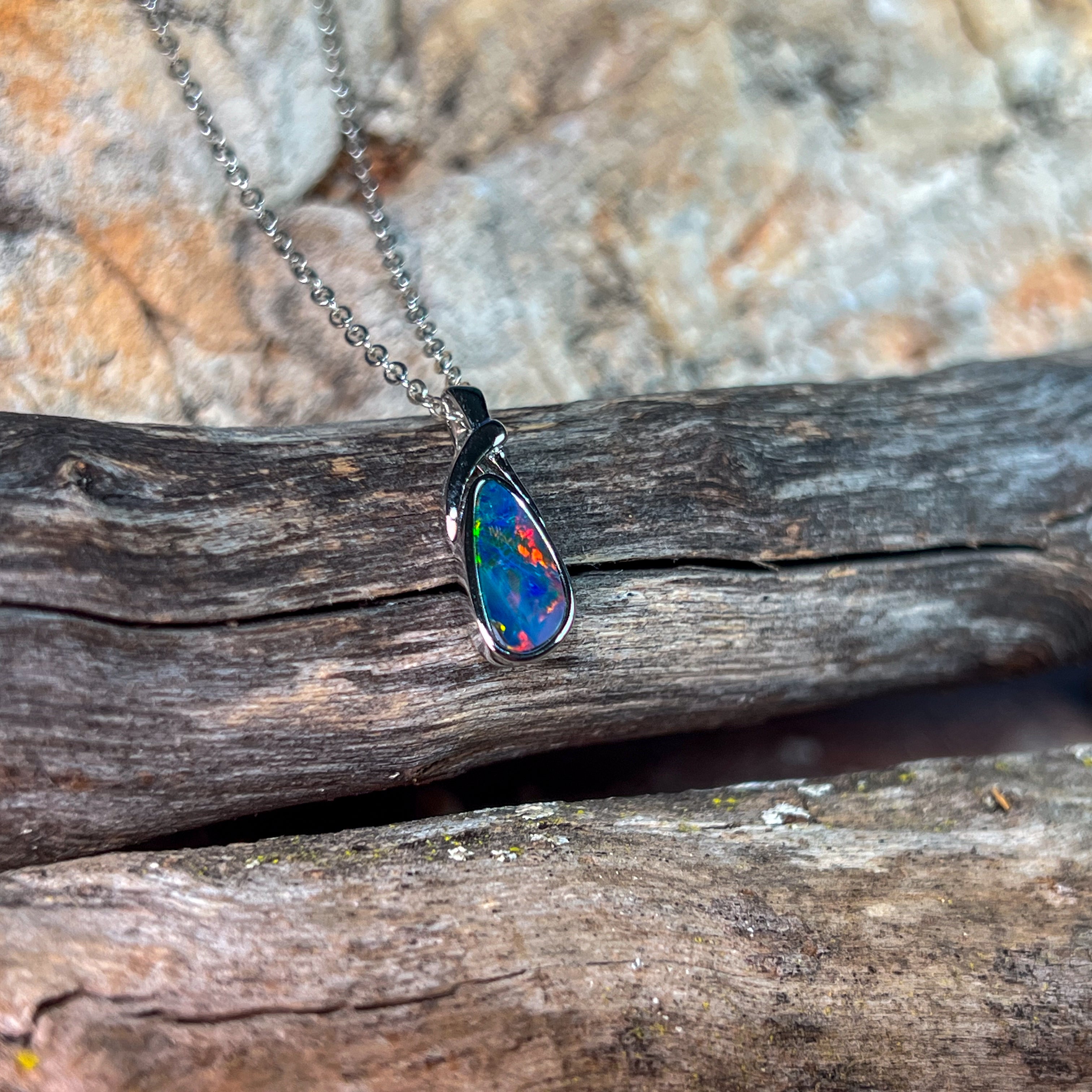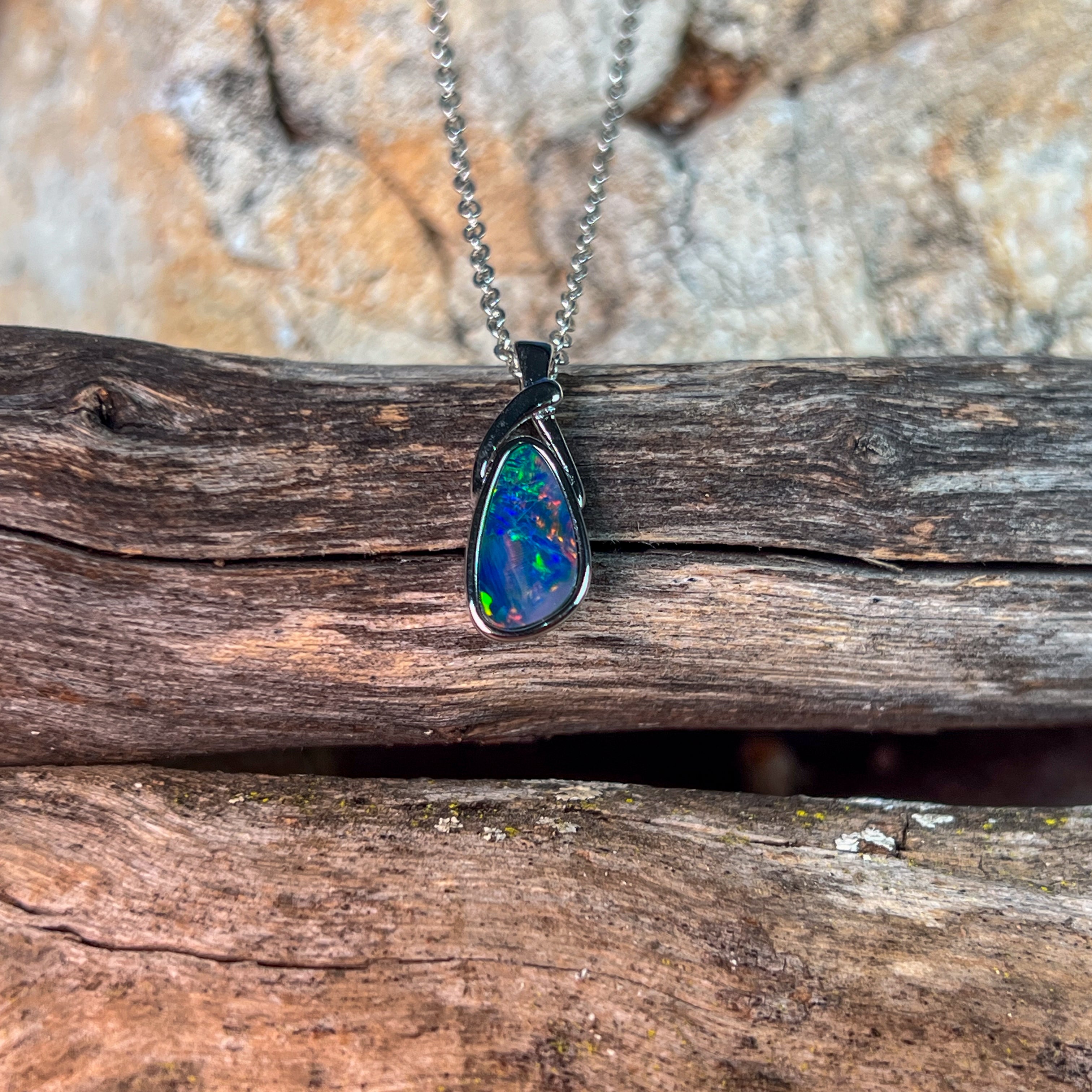 Elevate your jewellery collection with this stunning Sterling Silver twist loop Opal doublet pendant. Featuring a mesmerising play of multi-coloured light, each opal doublet displays its own unique palette of vibrant hues that shift and dance with every movement. The elegant twist loop design adds contemporary sophistication, while the precious opal showcases nature's most captivating colour spectrum. Perfect for those who appreciate individuality and natural beauty, this pendant transforms any outfit into something truly extraordinary. A timeless piece that celebrates the magic of Australian opals.