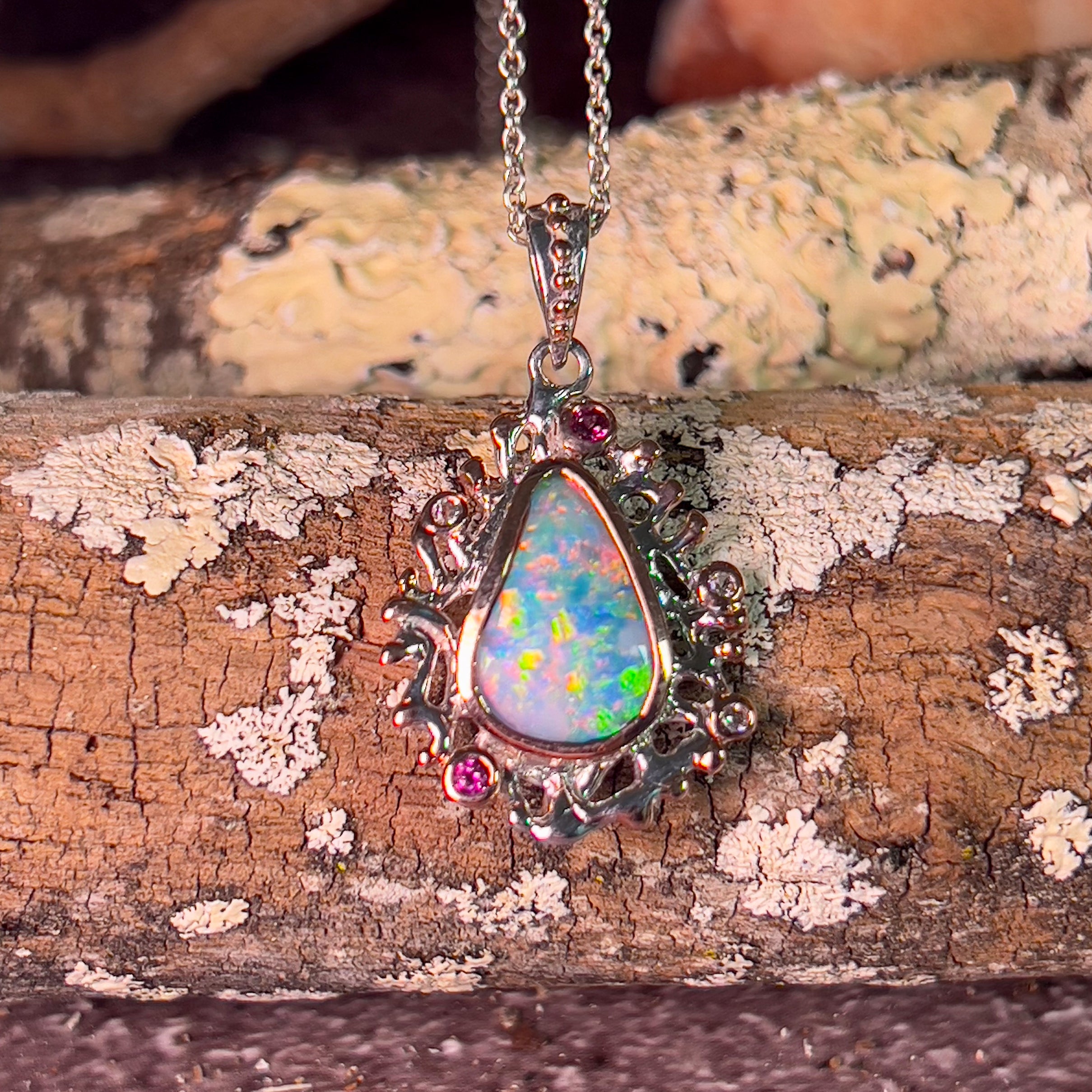 Sterling Silver Two tone coral design Opal and colour stone pendant