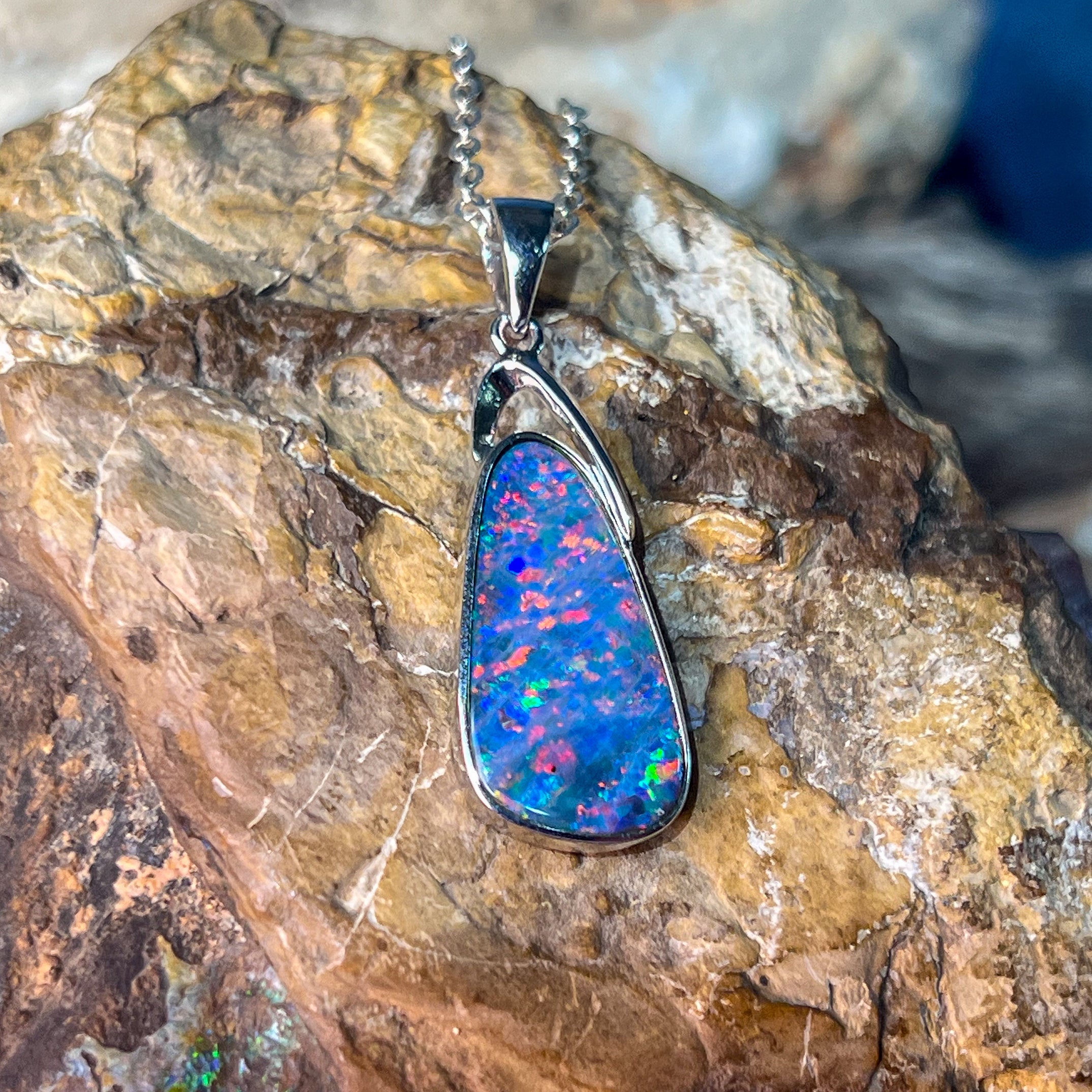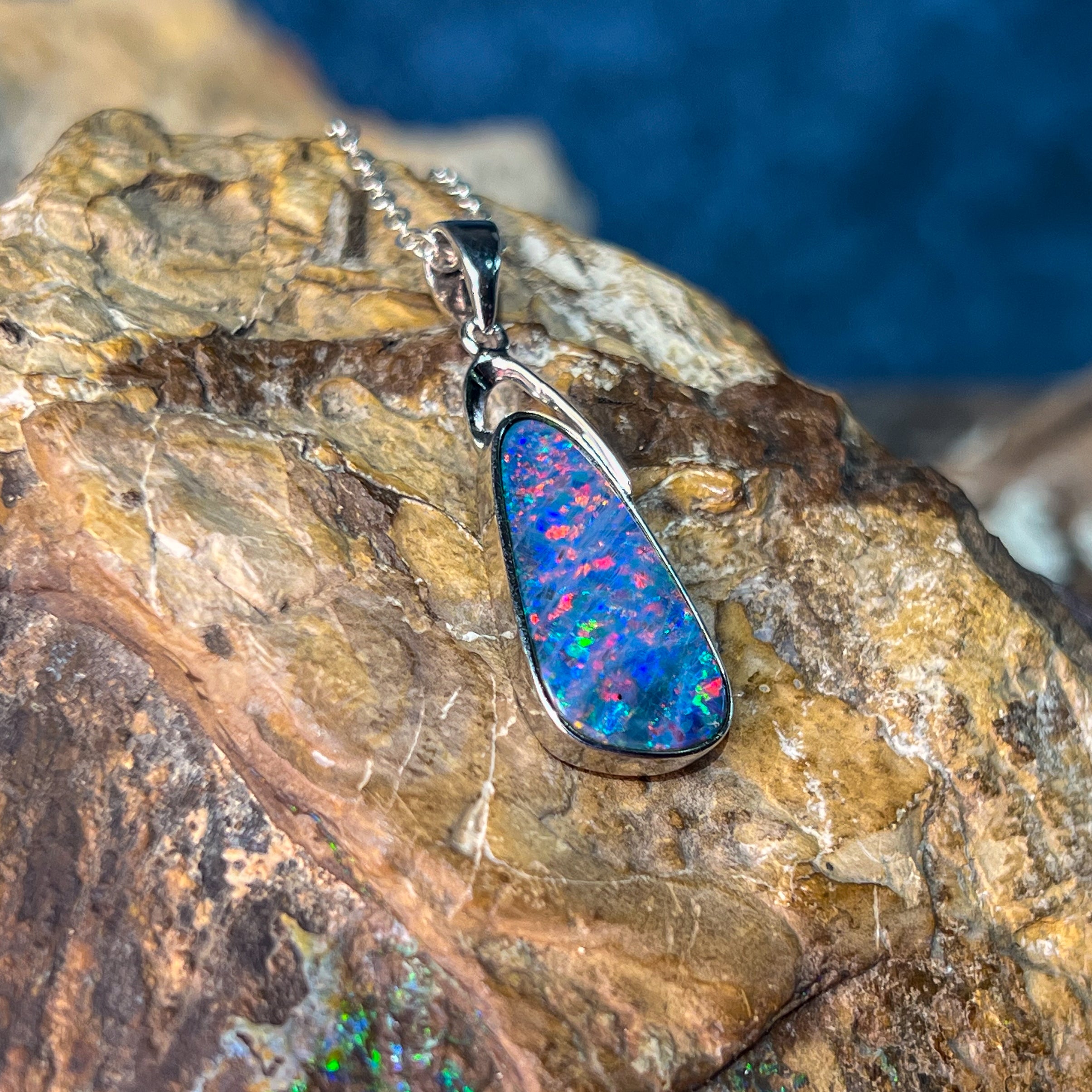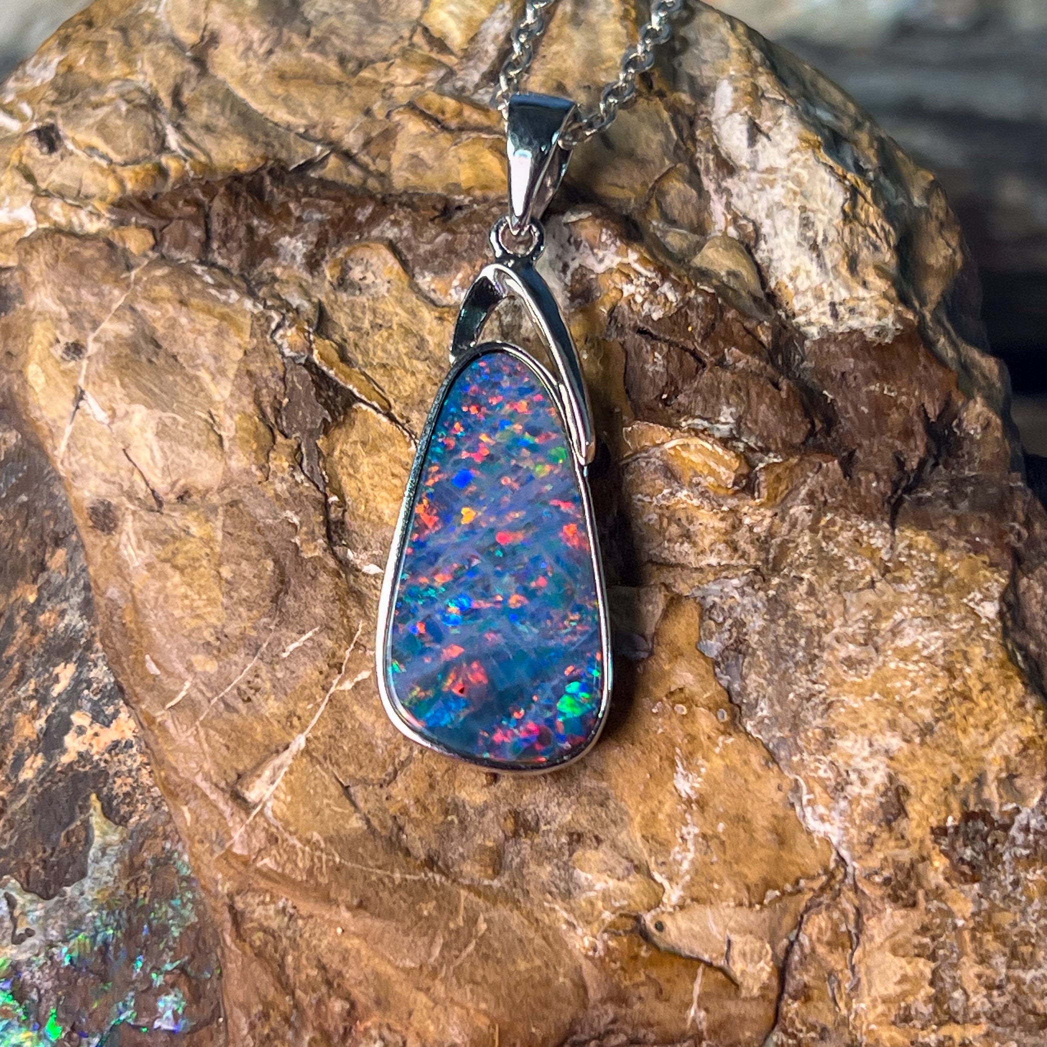 Elevate your style with this stunning Sterling Silver pendant featuring a large drop-shaped Violet Red Opal doublet. Its bold size and rich, vibrant hues draw the eye, making it perfect for any occasion where you want to make a lasting impression. Crafted with quality sterling silver, this piece combines elegance with durability, adding a luxurious touch to your collection.