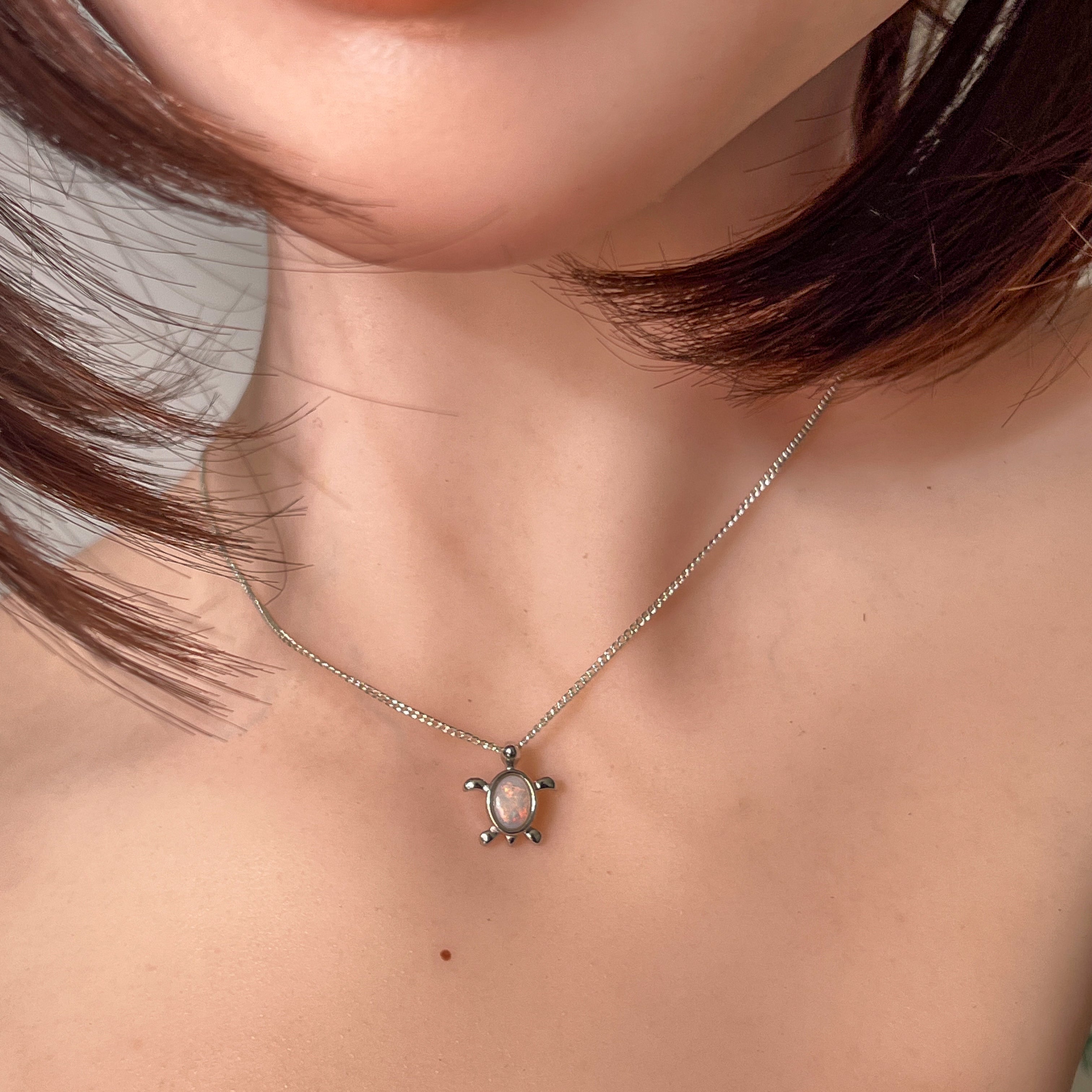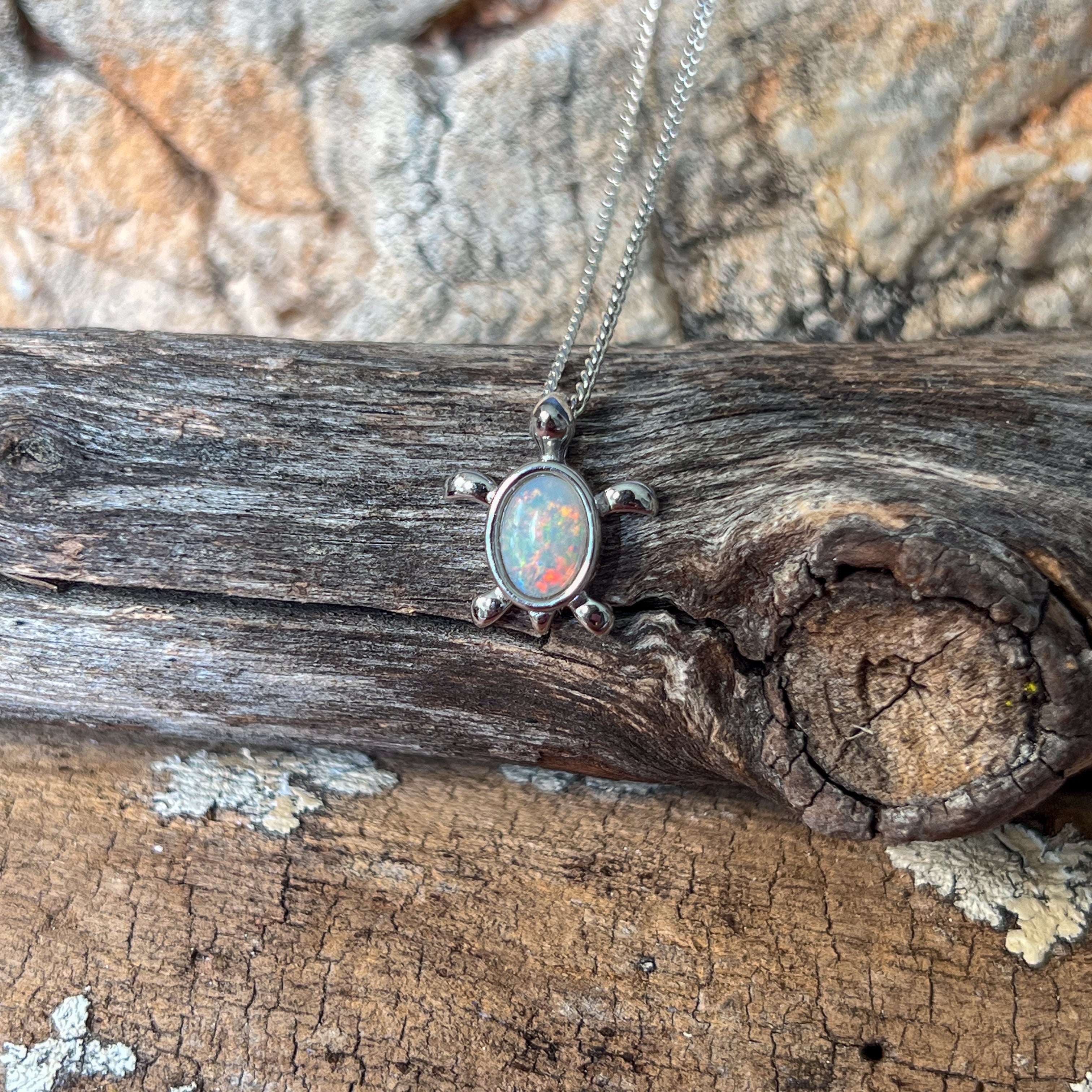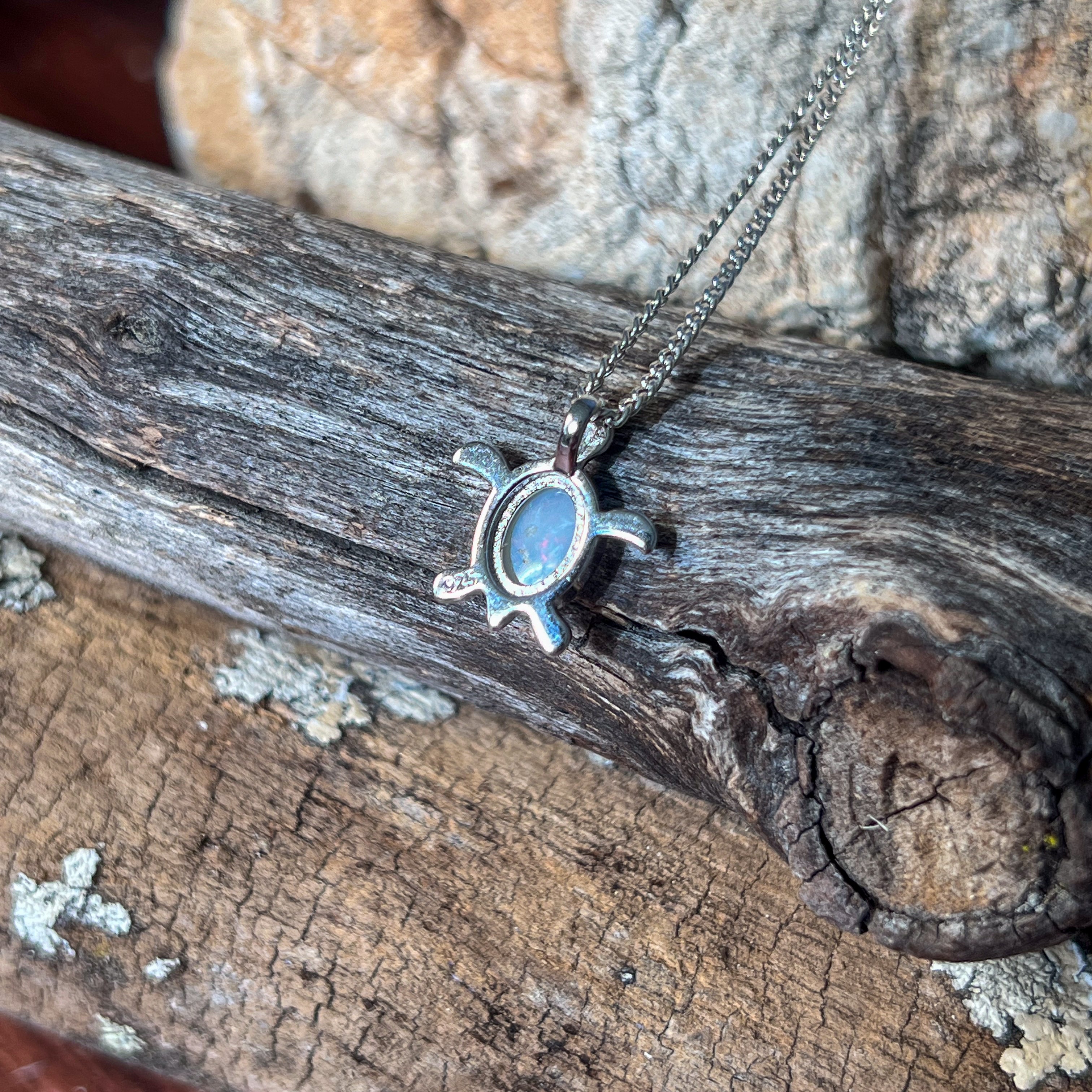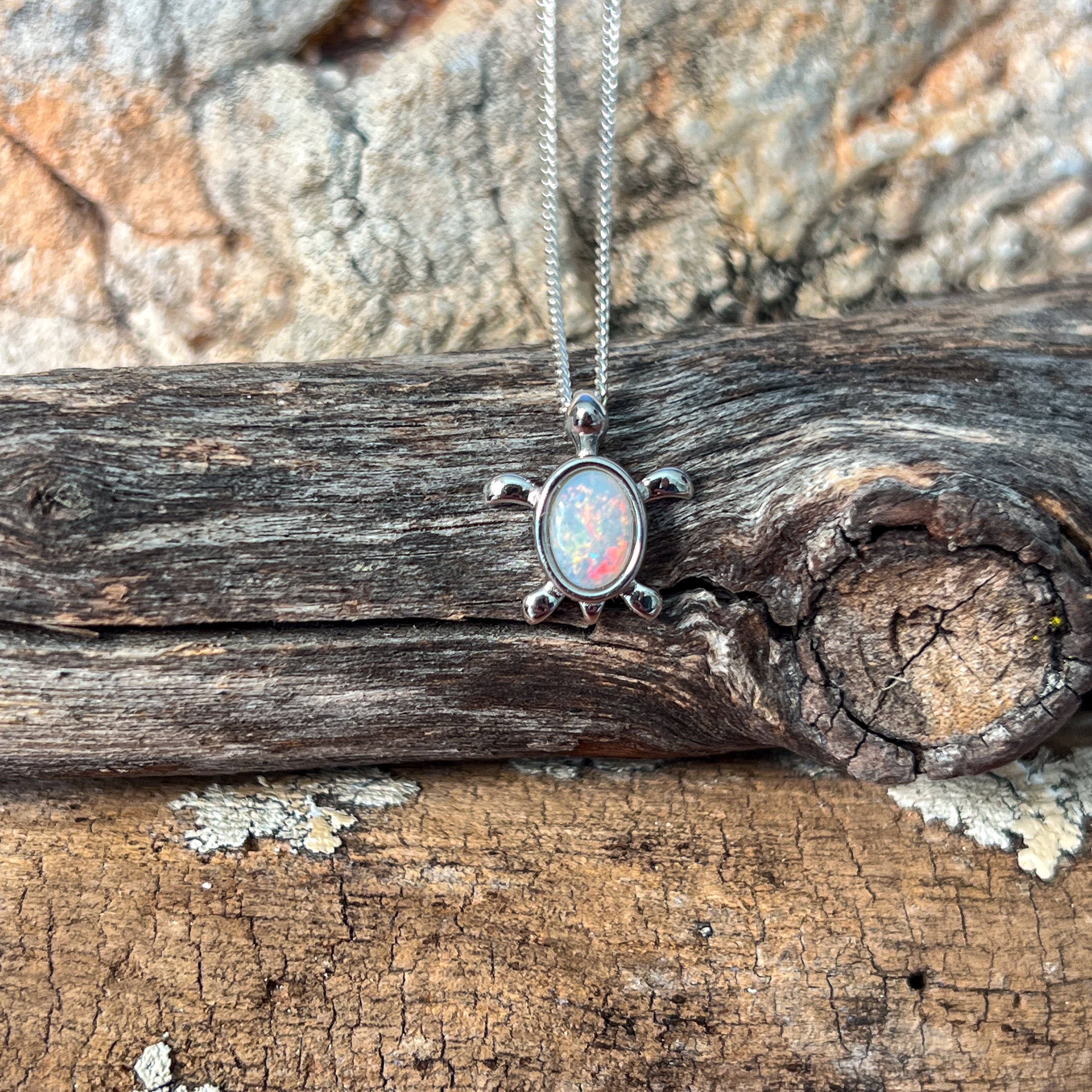Add a splash of charm to your look with this playful sterling silver turtle pendant, featuring a dazzling 7x5mm white opal. Perfect as a birthstone necklace, it brings a touch of whimsy and elegance, making it a delightful gift or a fun everyday accessory. Let this little turtle carry your style with a sparkle that’s as unique as you!