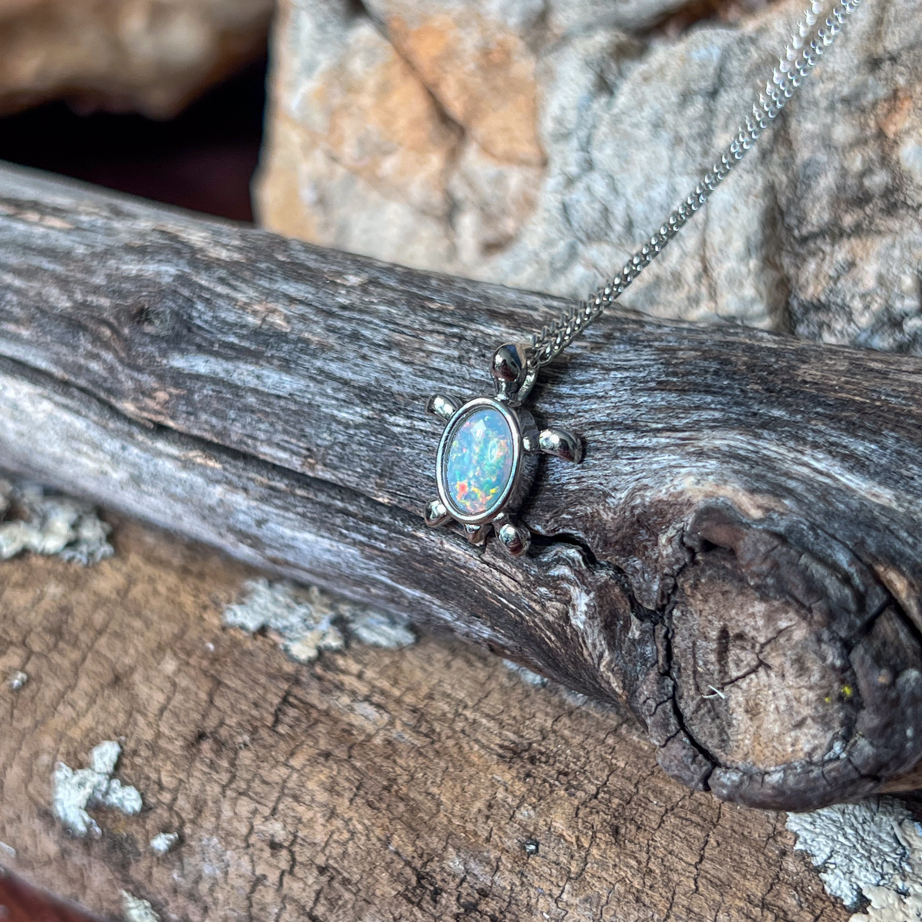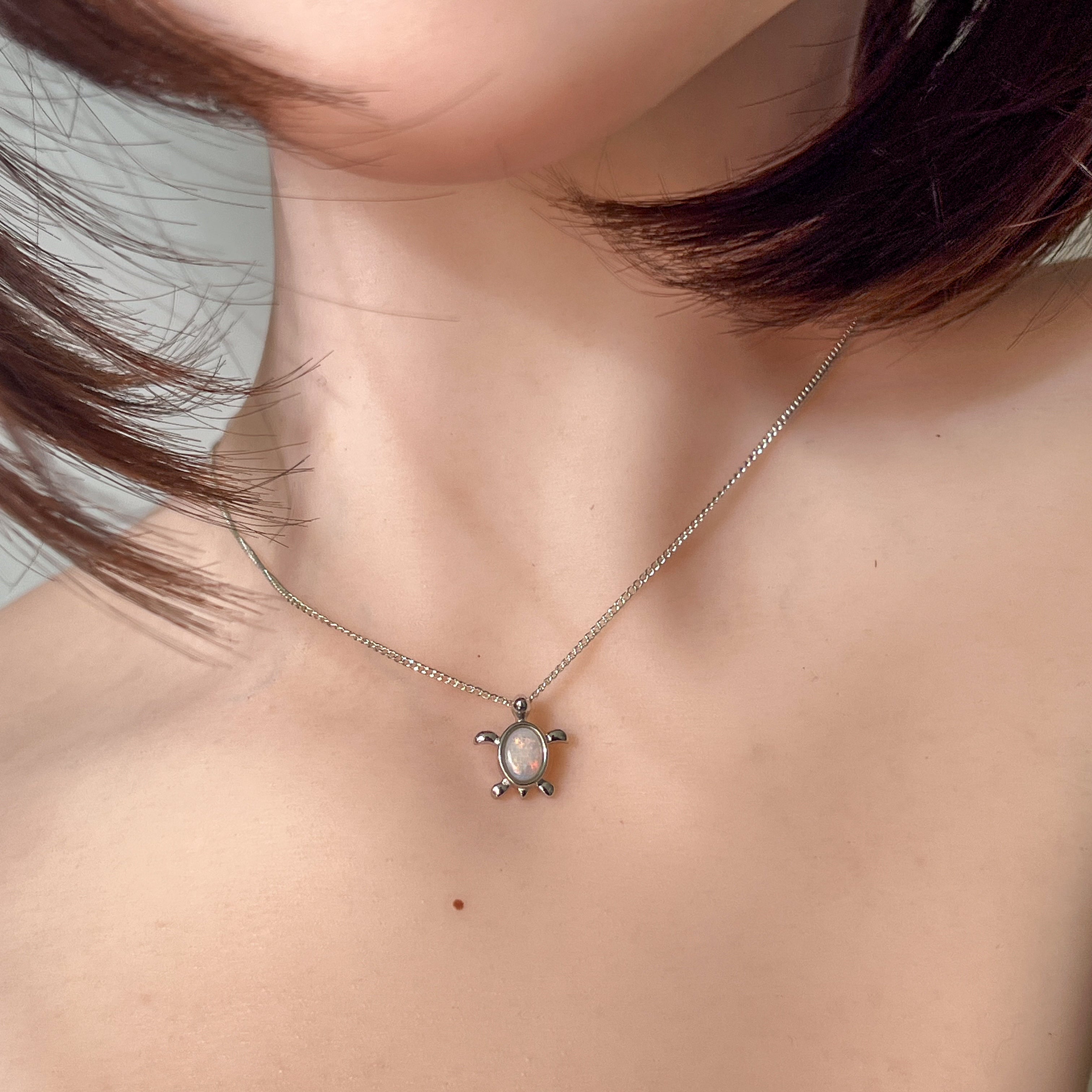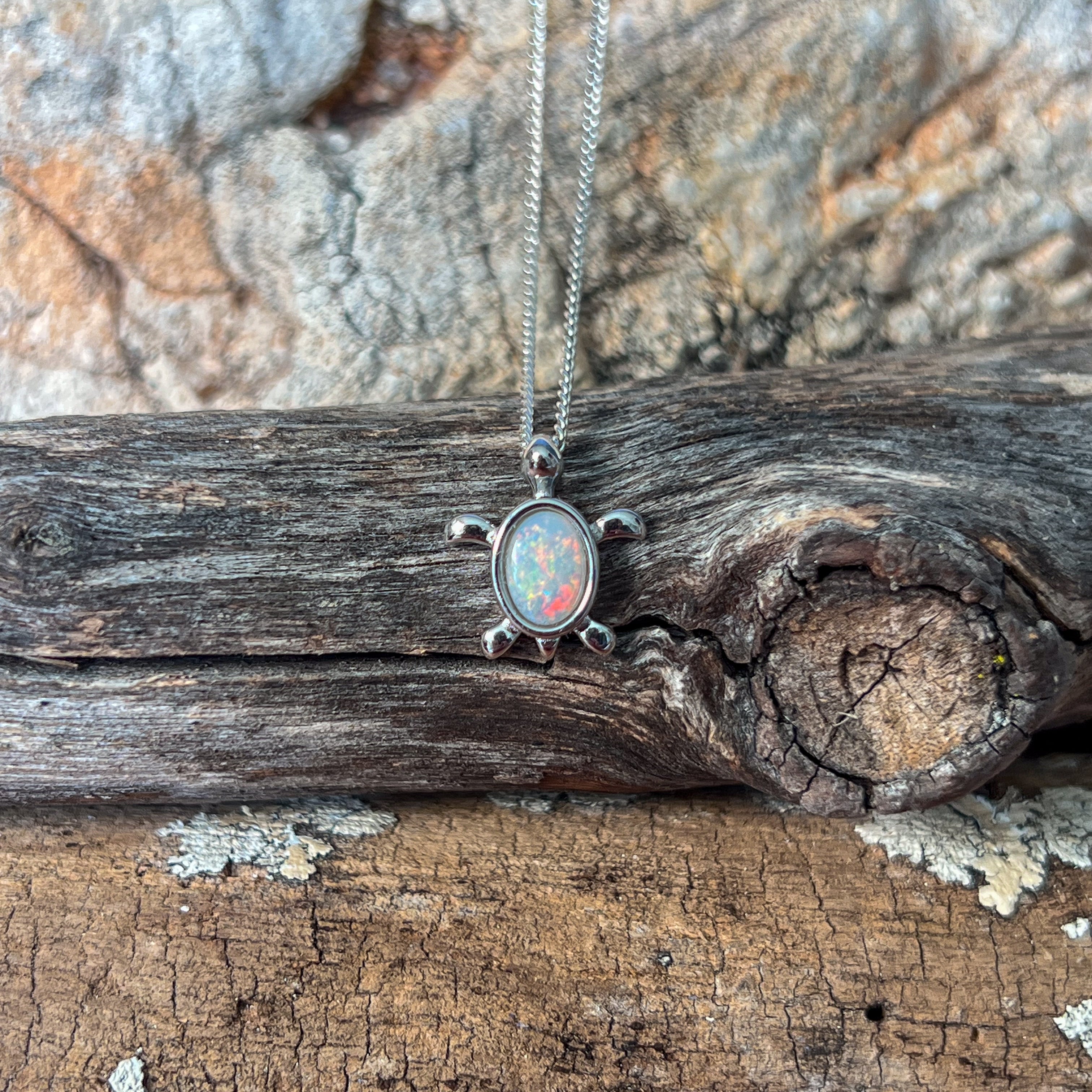 Add a splash of charm to your look with this playful sterling silver turtle pendant, featuring a dazzling 7x5mm white opal. Perfect as a birthstone necklace, it brings a touch of whimsy and elegance, making it a delightful gift or a fun everyday accessory. Let this little turtle carry your style with a sparkle that’s as unique as you!