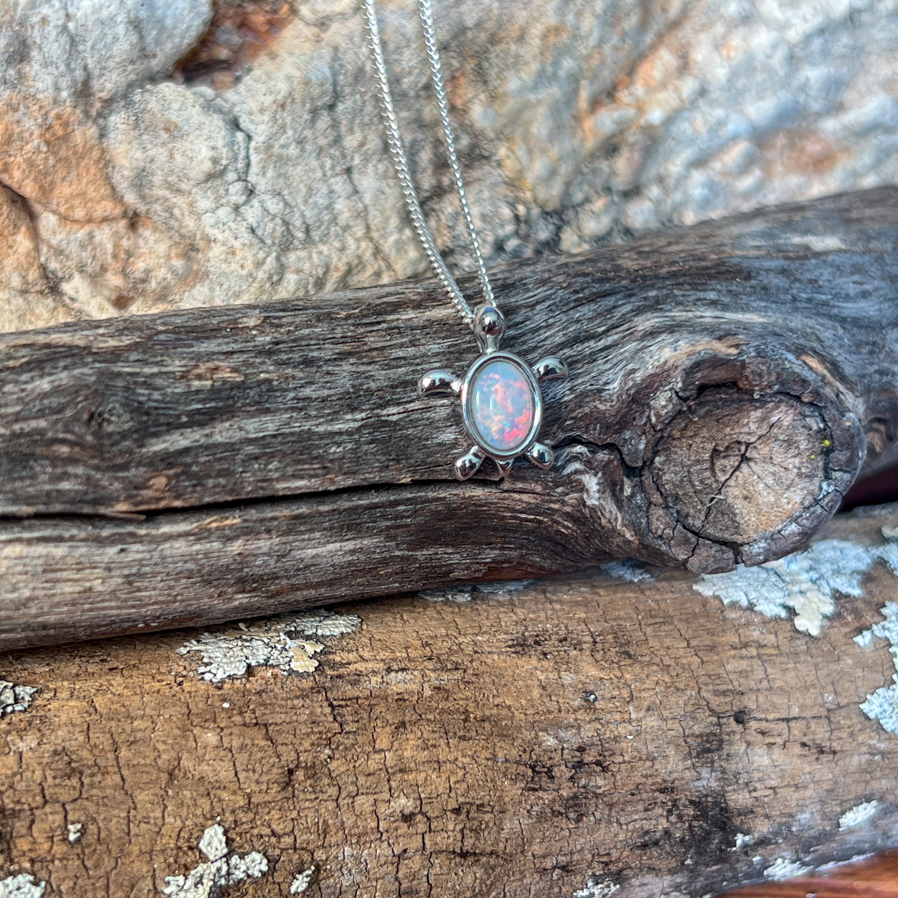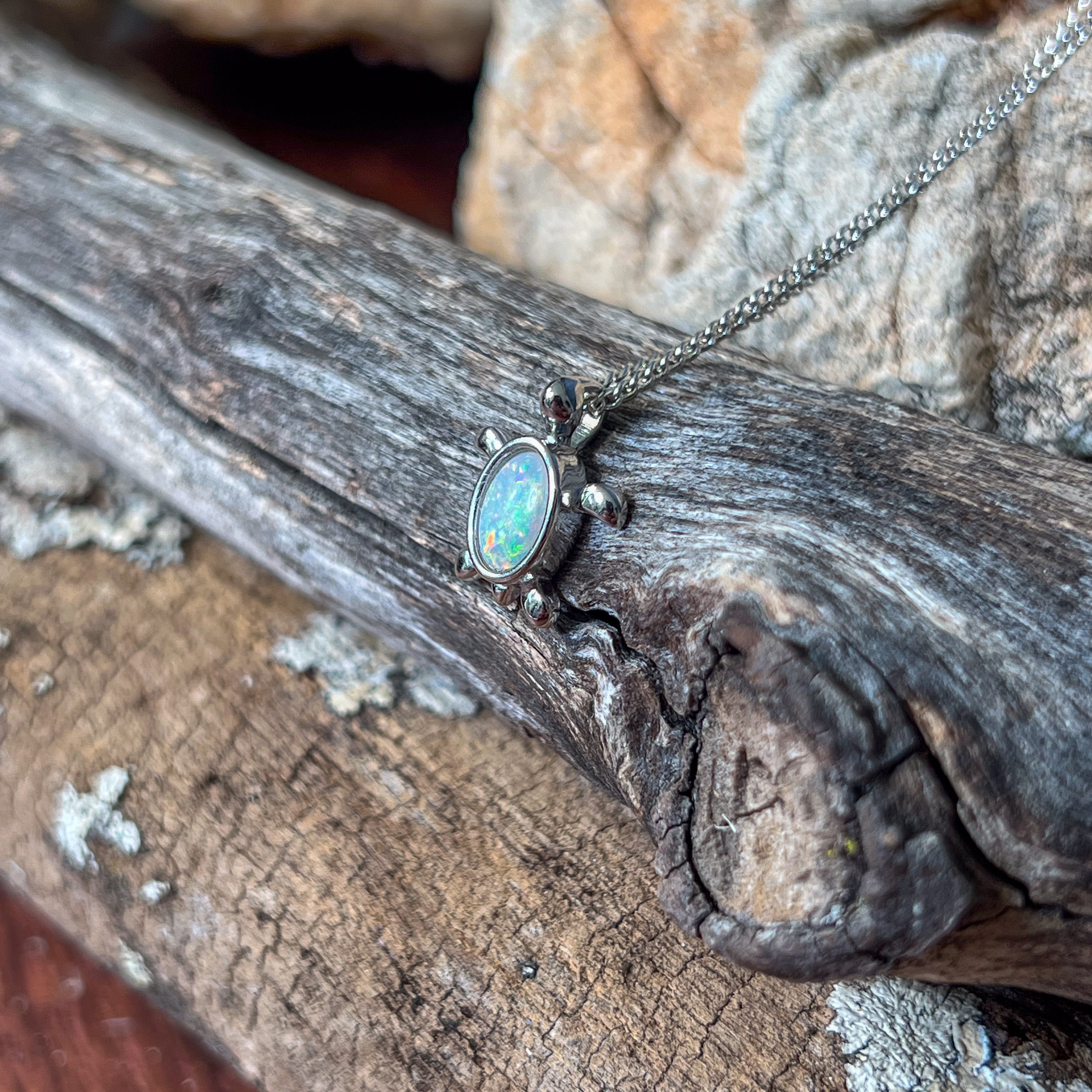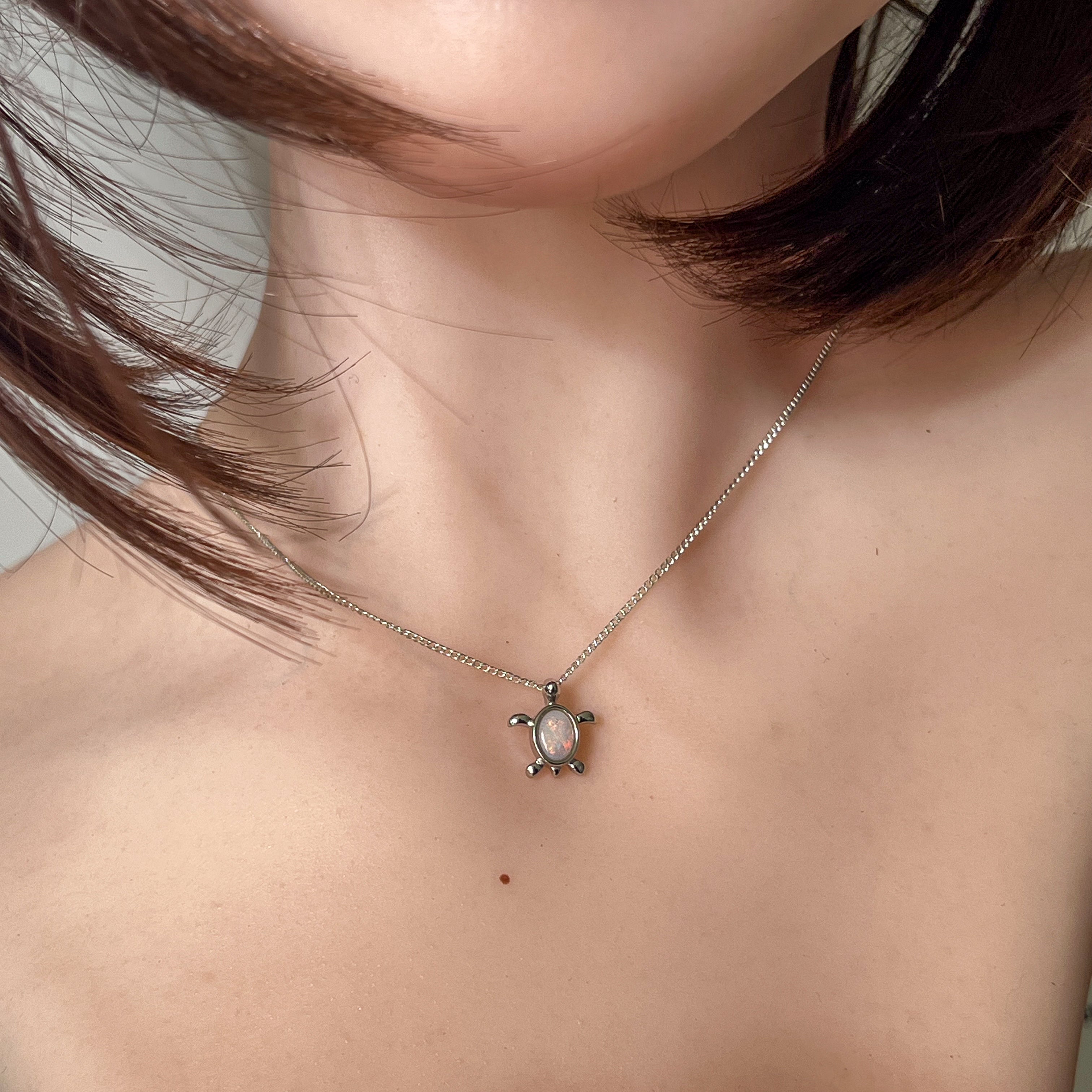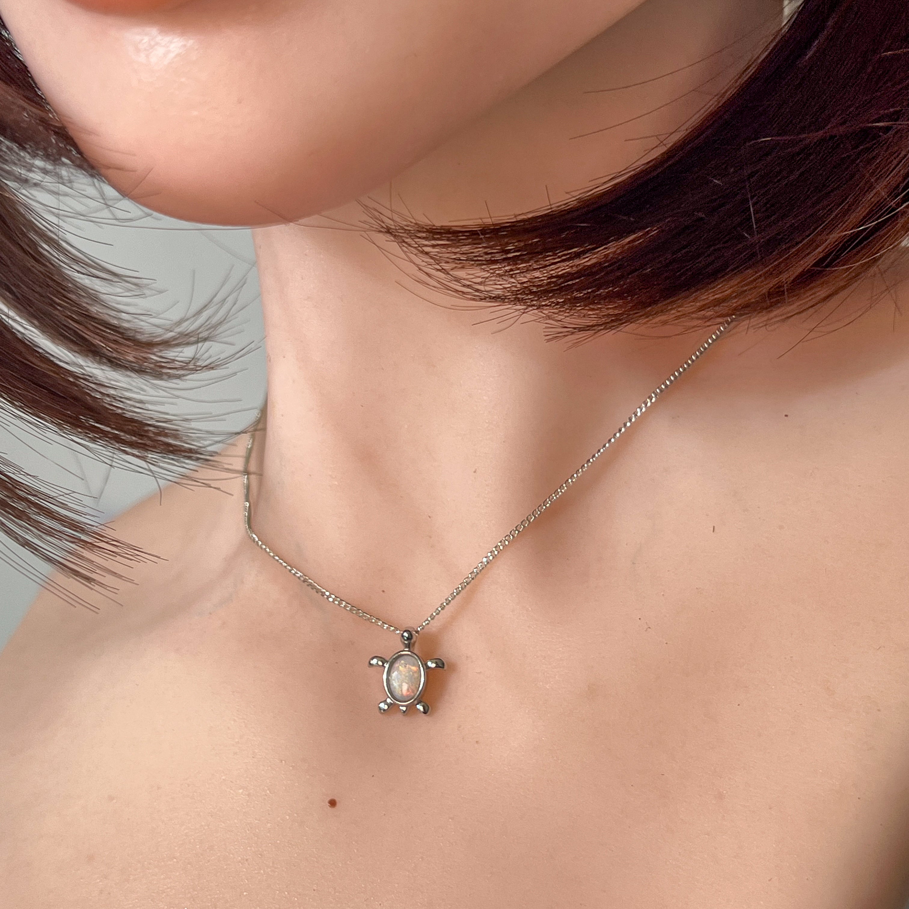 Add a splash of charm to your look with this playful sterling silver turtle pendant, featuring a dazzling 7x5mm white opal. Perfect as a birthstone necklace, it brings a touch of whimsy and elegance, making it a delightful gift or a fun everyday accessory. Let this little turtle carry your style with a sparkle that’s as unique as you!