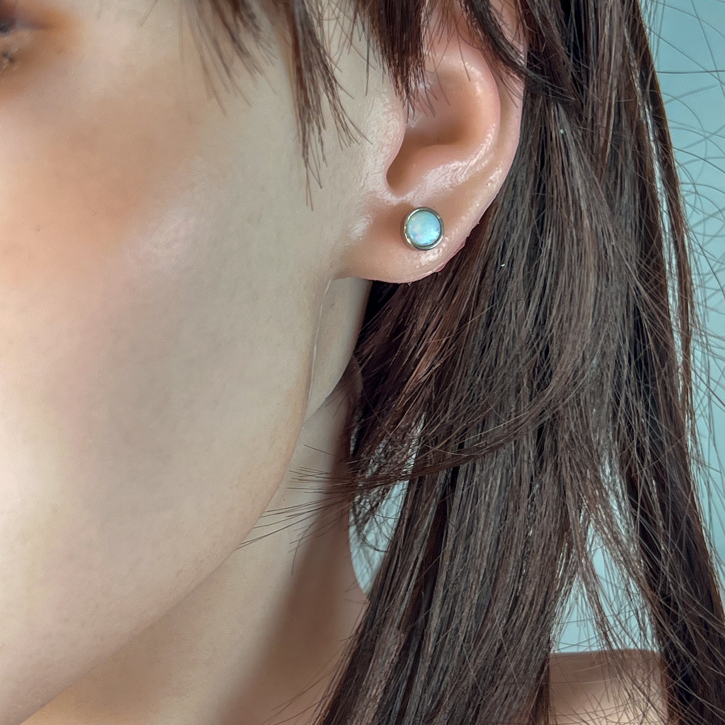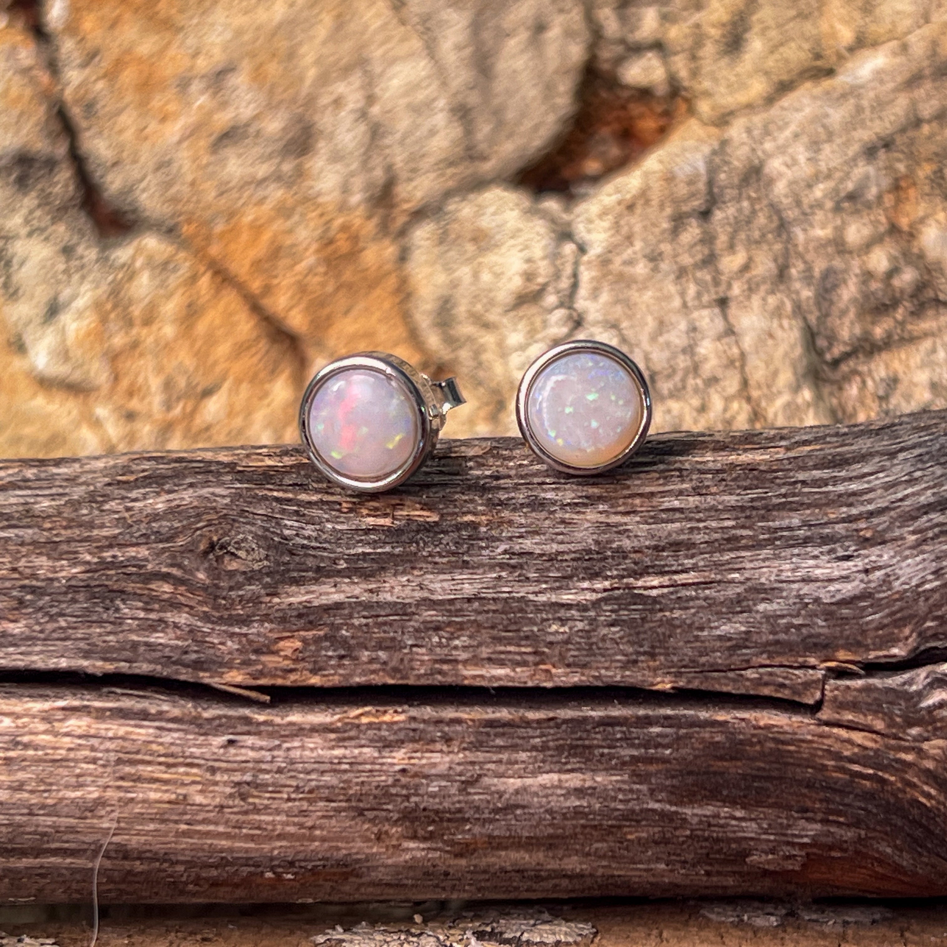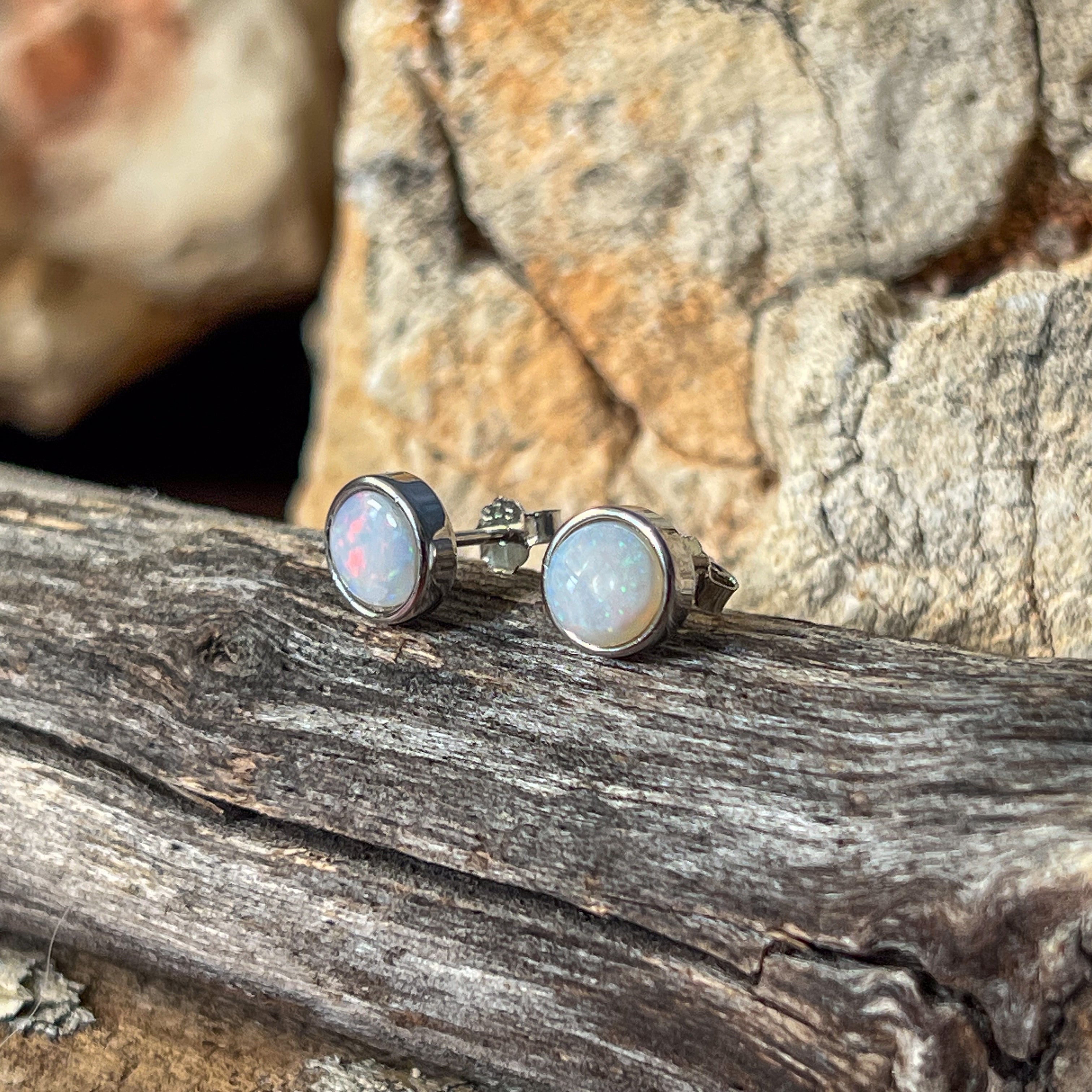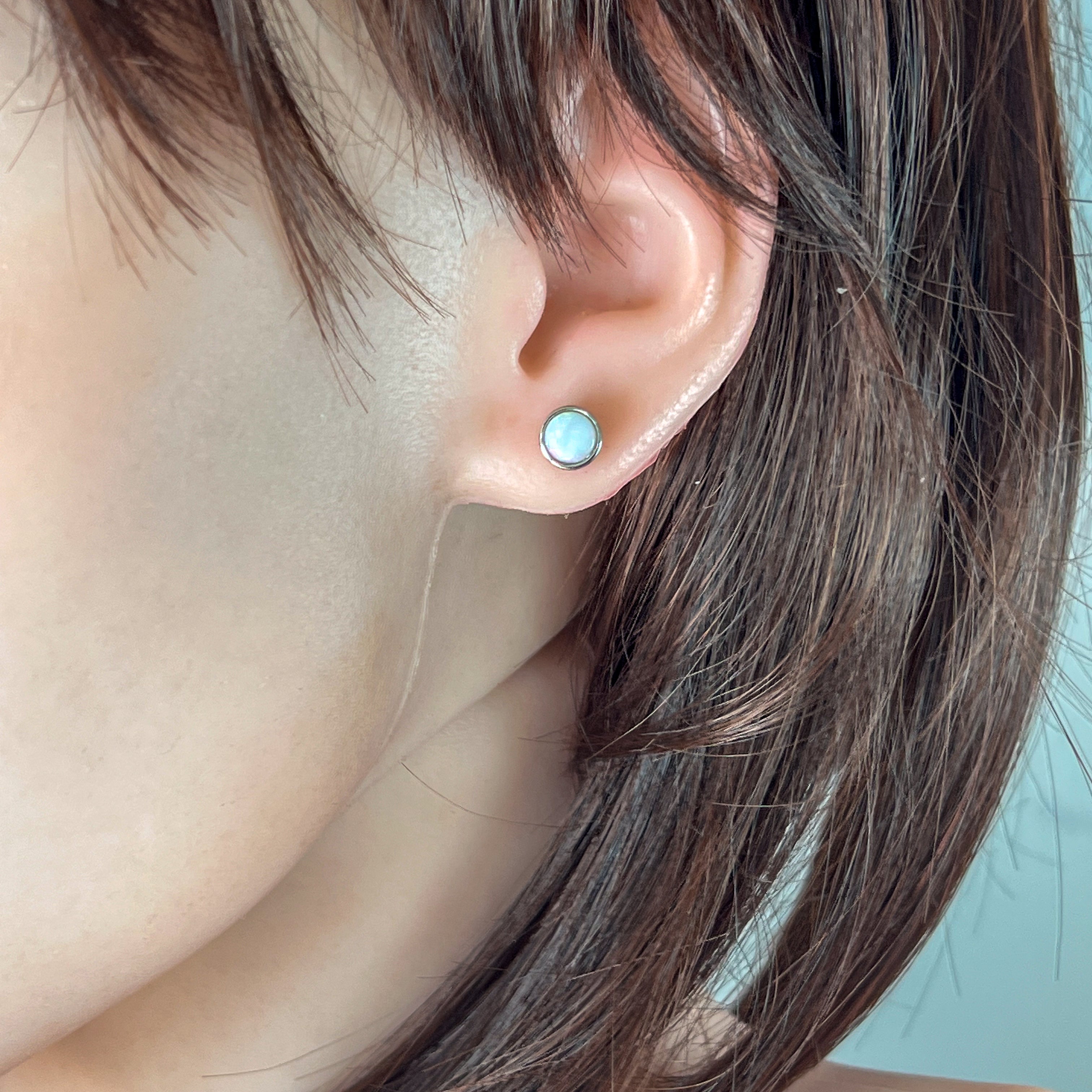 Elevate your elegance with these sterling silver white opal round studs, measuring 6mm. Their classic bezel setting offers a timeless silhouette that enhances the opal’s natural iridescence, making them perfect for both everyday wear and special occasions. Crafted for lasting beauty and subtle sophistication, these studs add a refined touch to any ensemble.