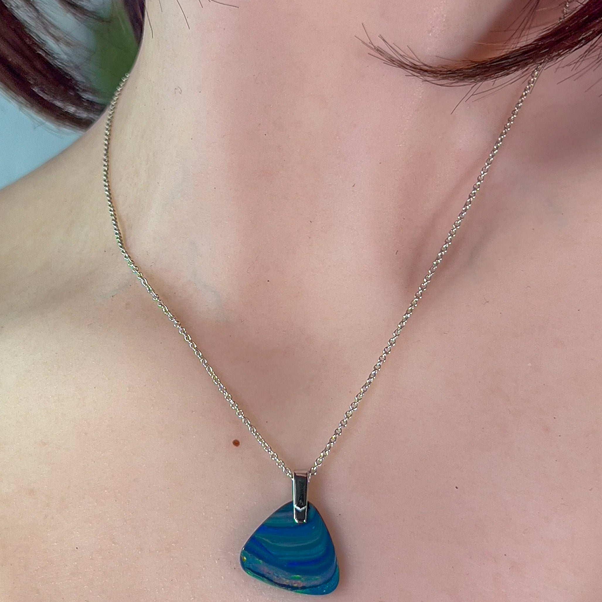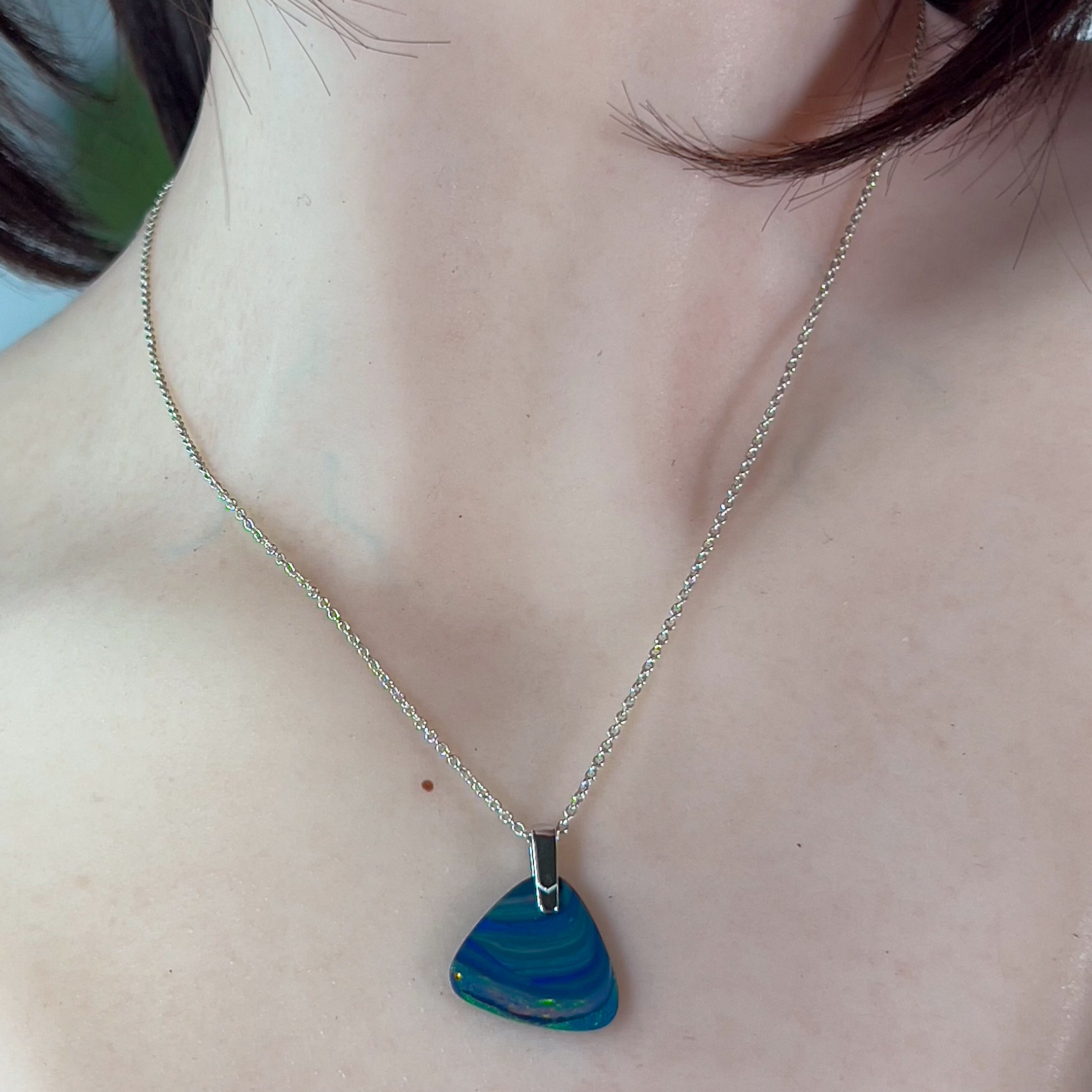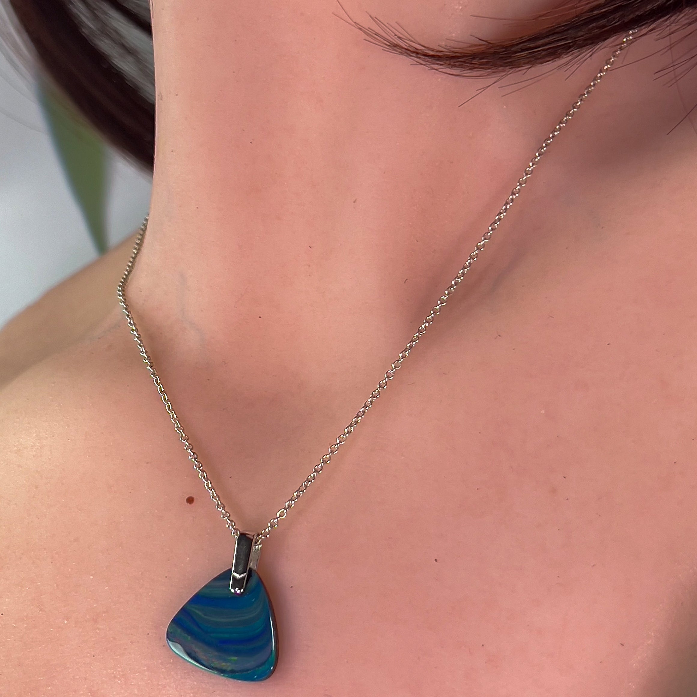 One Sterling Silver Opal pendant bezel set Wide Fan shape
