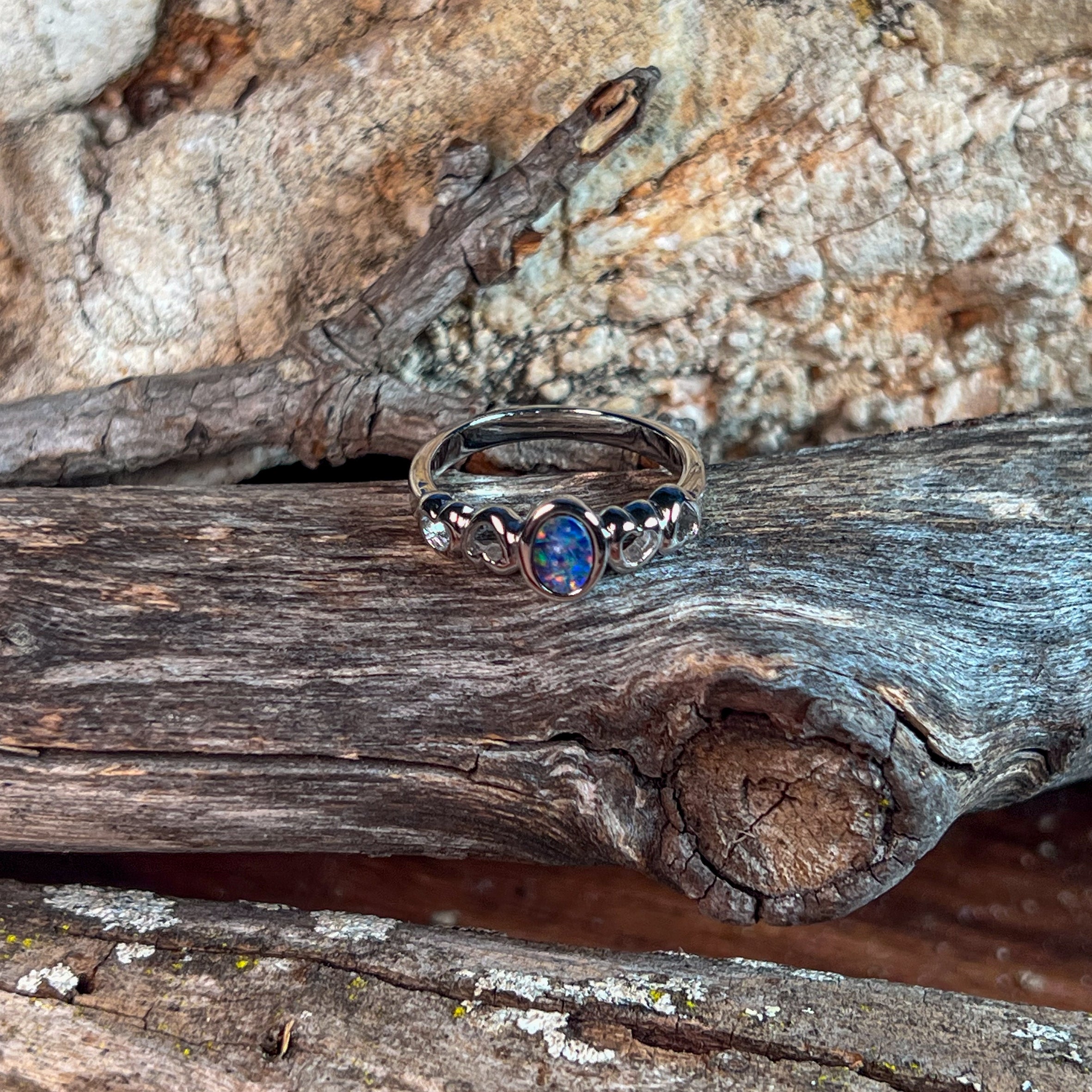 One Sterling Silver bezel set Opal design ring