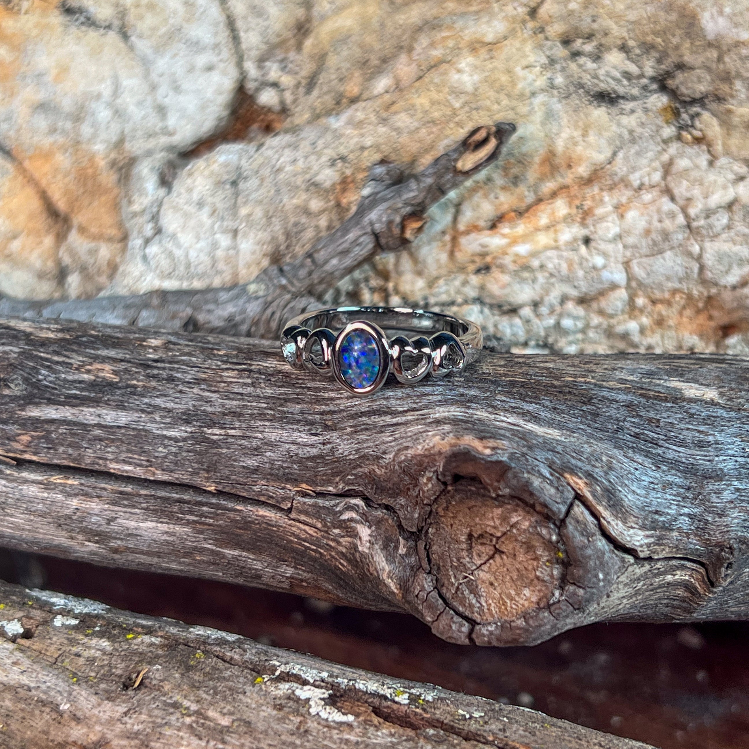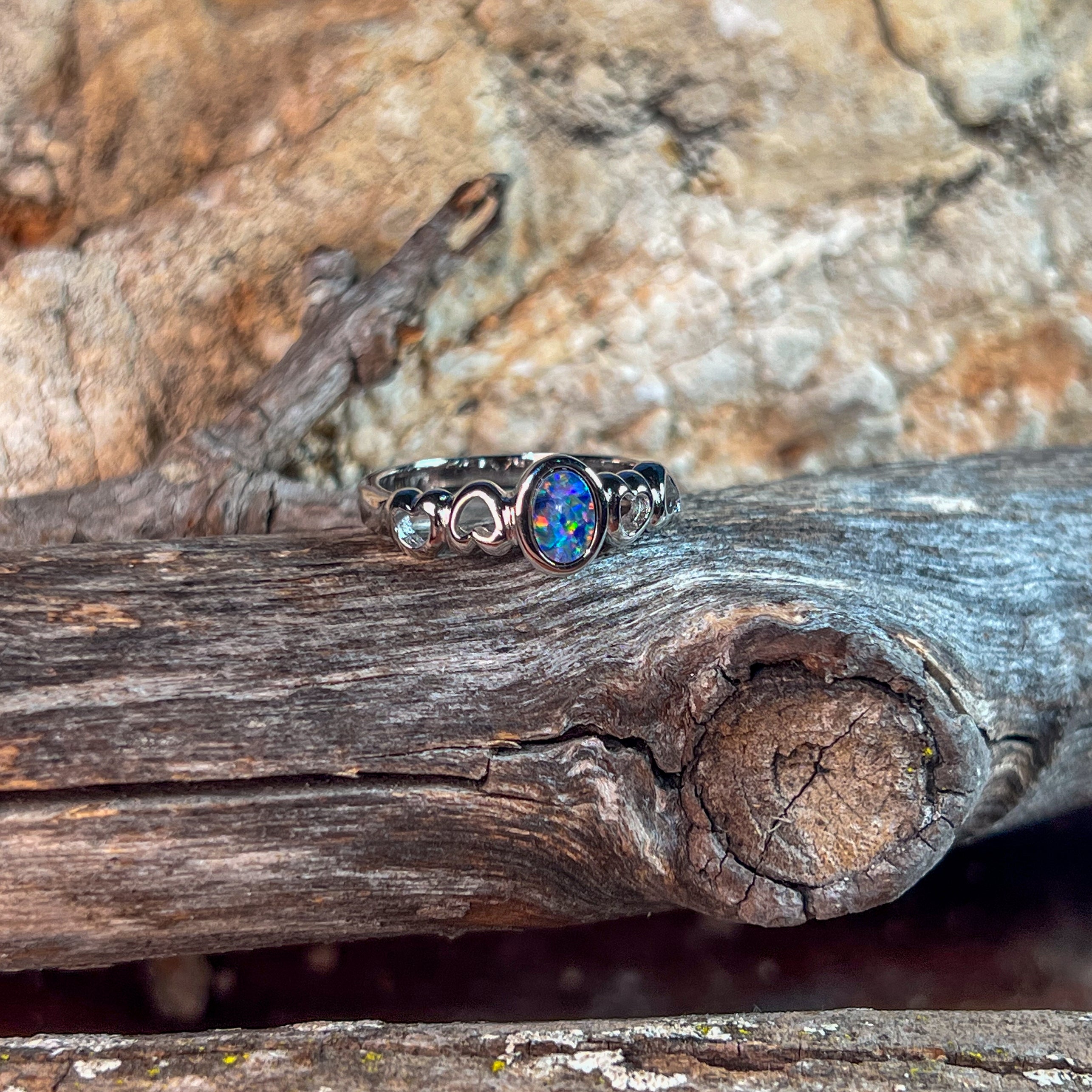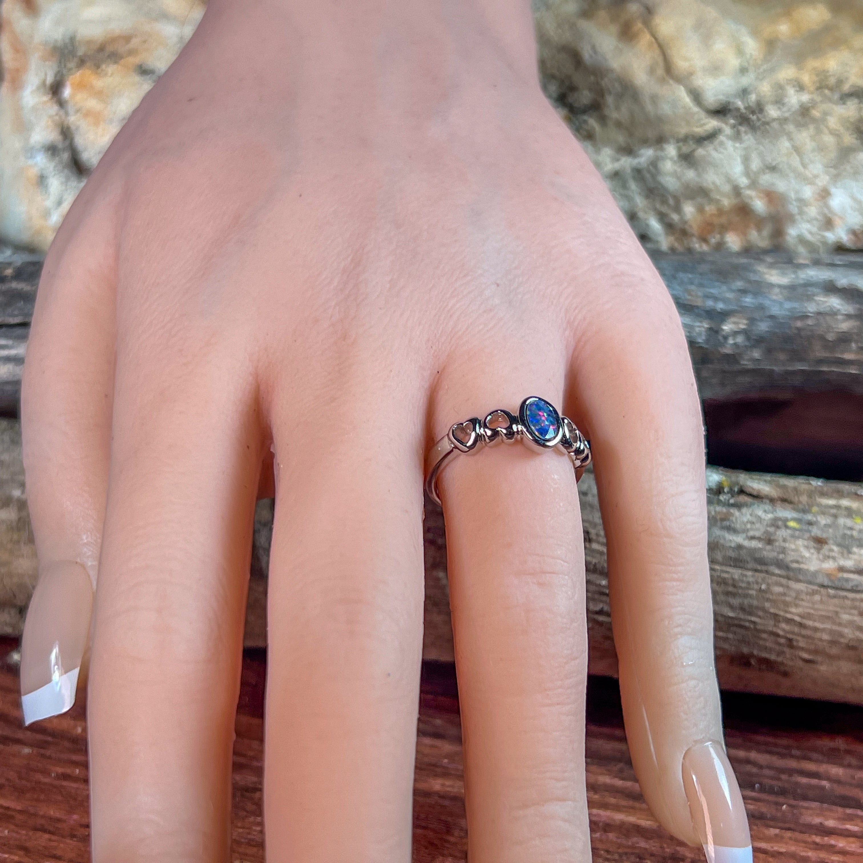 Sterling Silver 6x4mm Opal doublet heart shape band