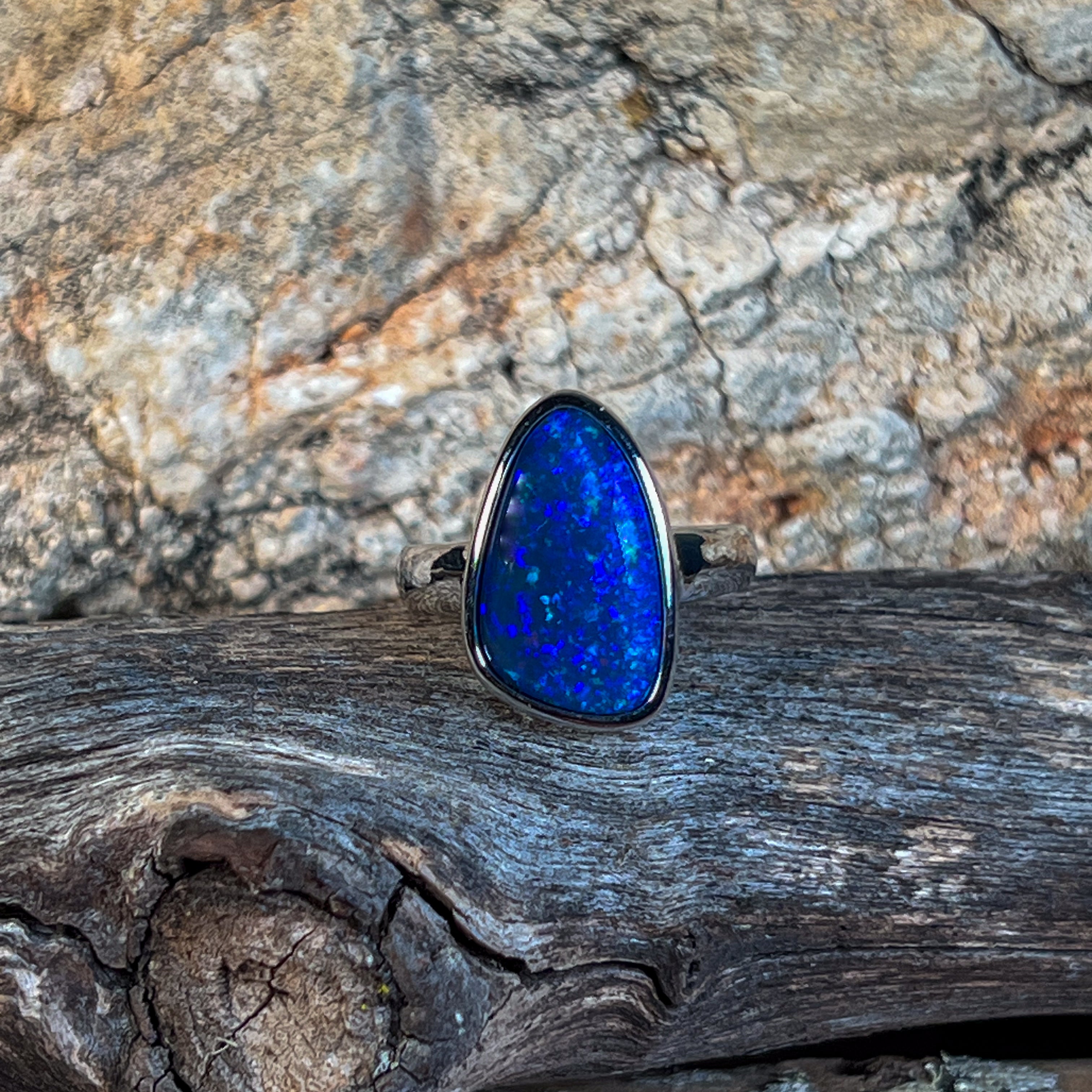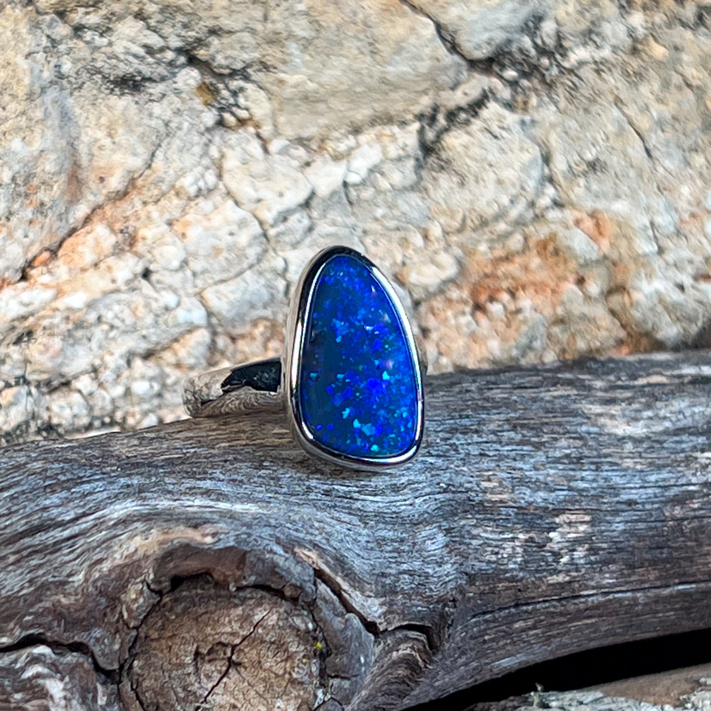 Dive into the depths of ocean-inspired elegance with this stunning Sterling Silver bezel set Blue Opal doublet. Weighing in at an impressive 5.69 carats, this beauty showcases rich, deep blue hues that seem to hold the mysteries of the sea. The secure bezel setting cradles your opal in timeless silver, creating a piece that's both sophisticated and wonderfully wearable. Perfect for those who crave colour with substance—this is no delicate whisper, but a bold statement that demands admiration.