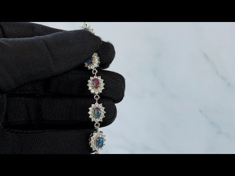Australian Triplet Opals surrounded by cubic zirconia bracelet set in Sterling Silver