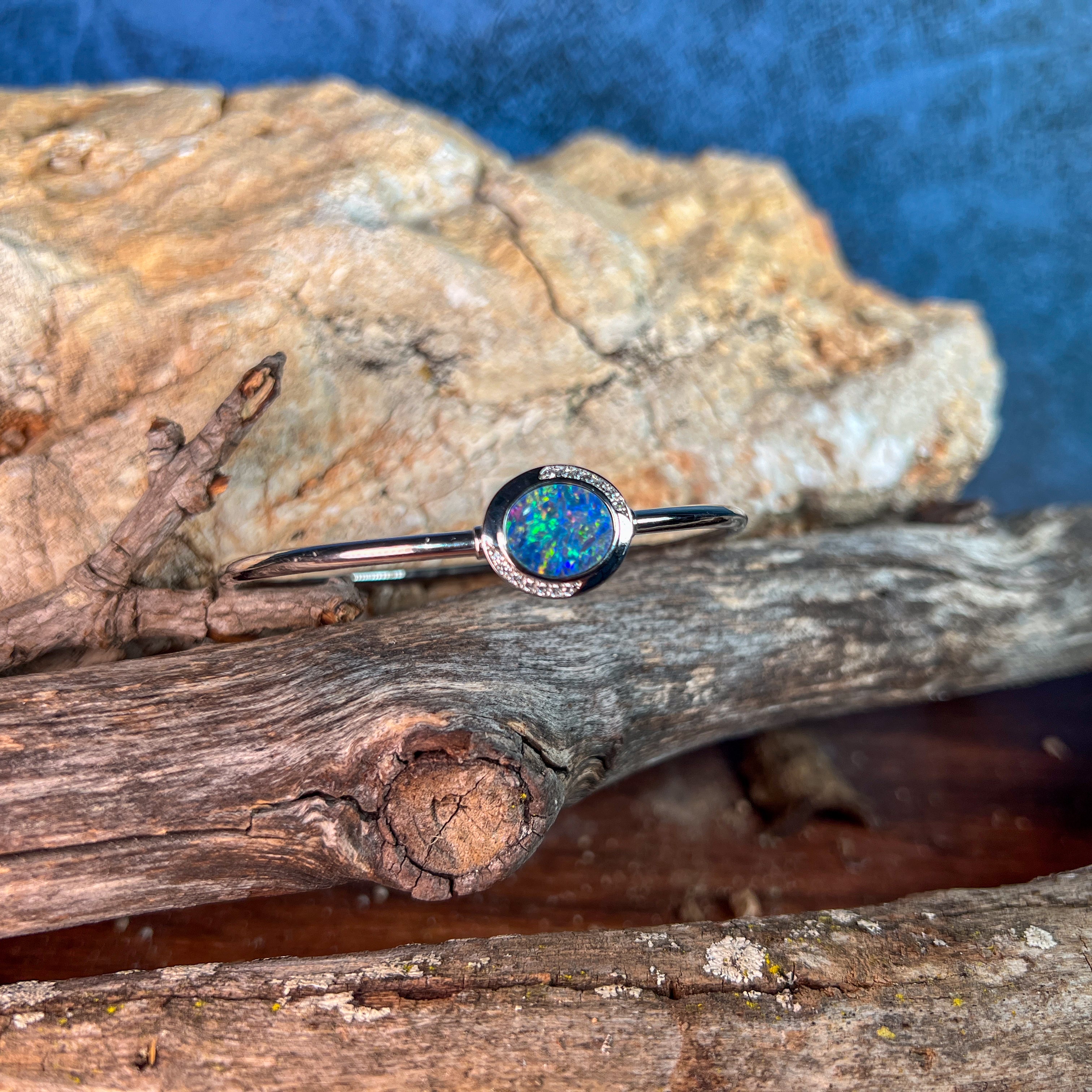 Sterling Silver bangle Crystal Opal inlayed graduating