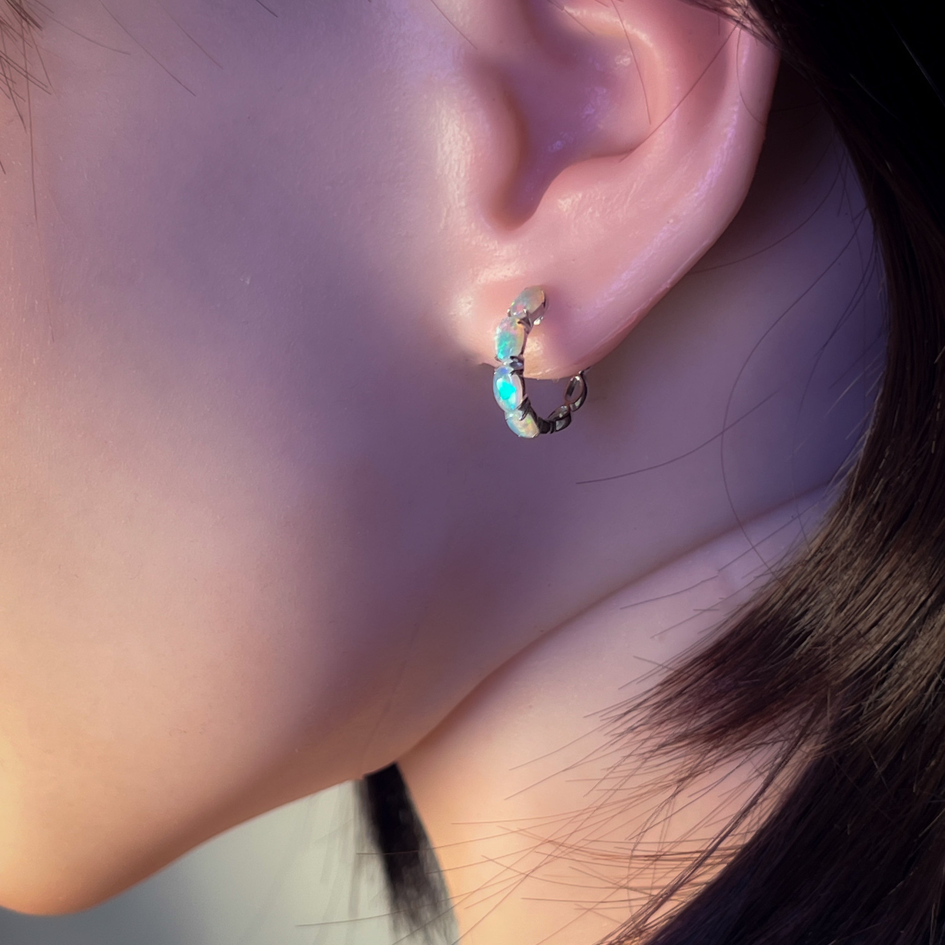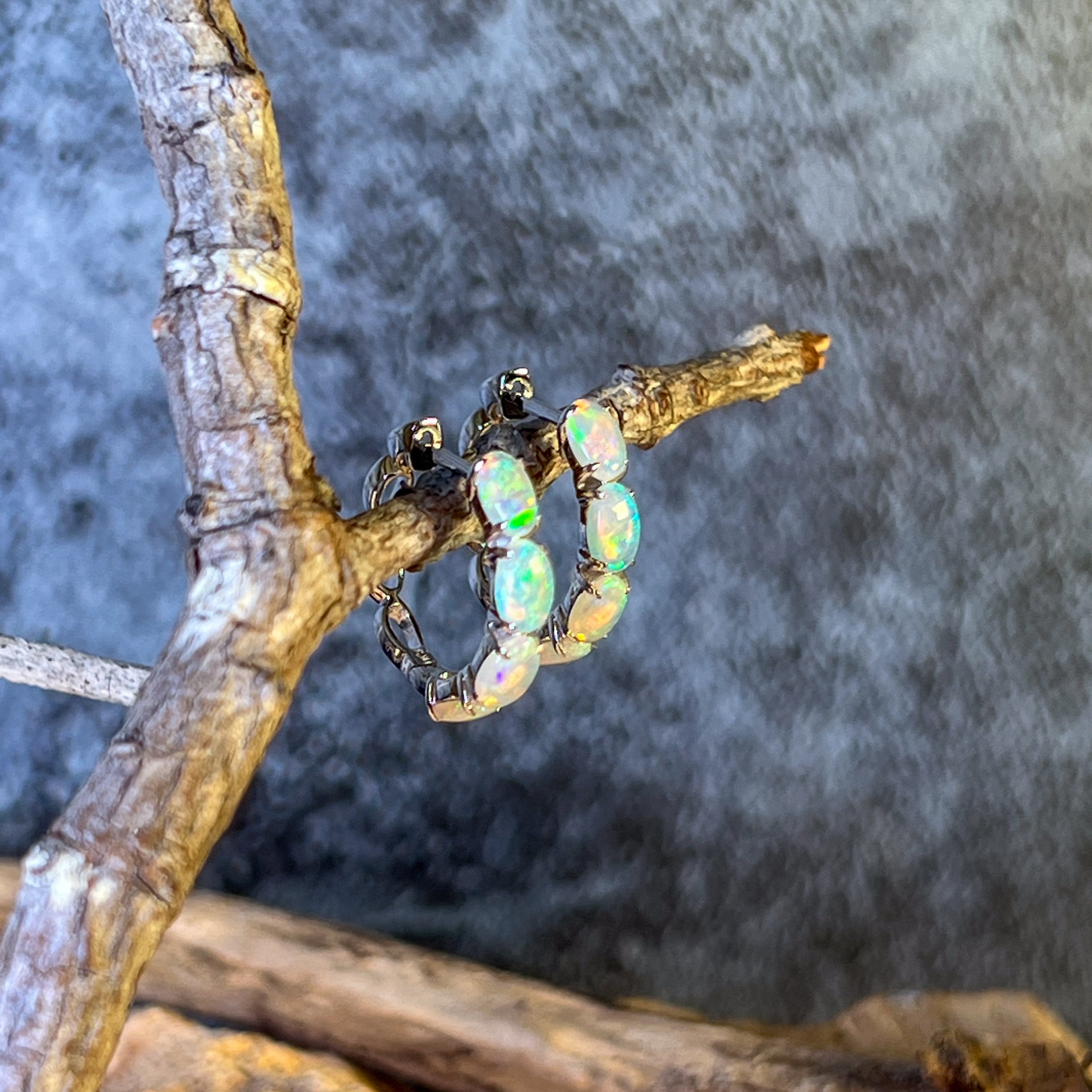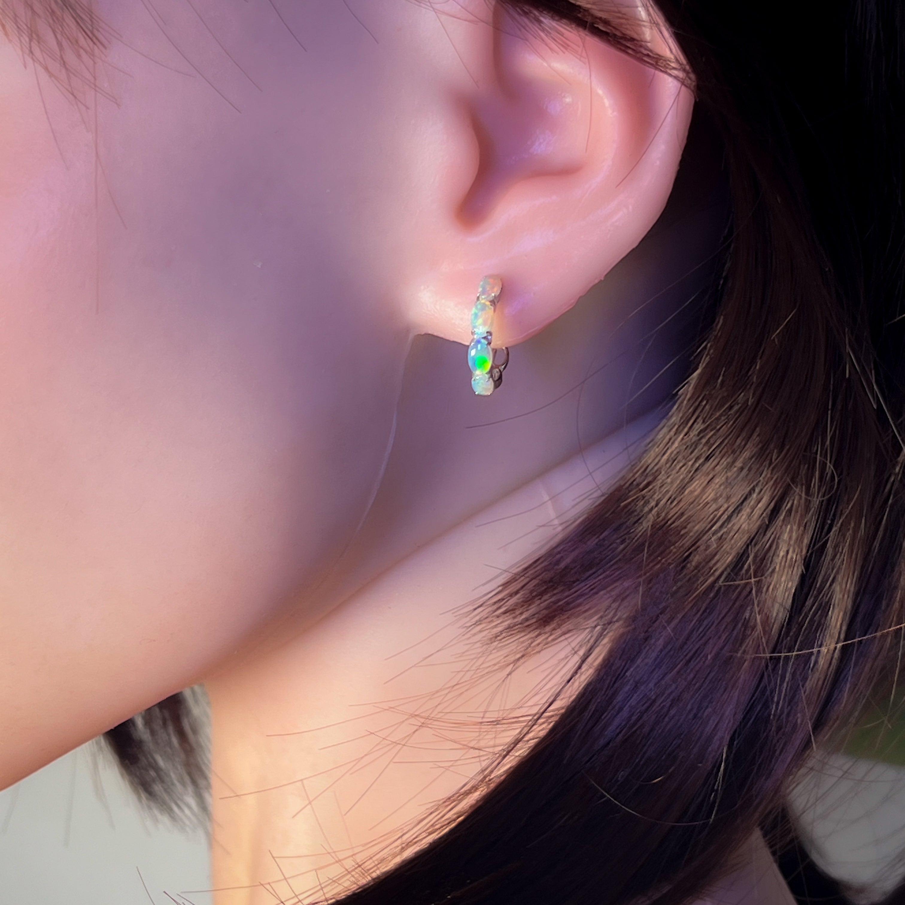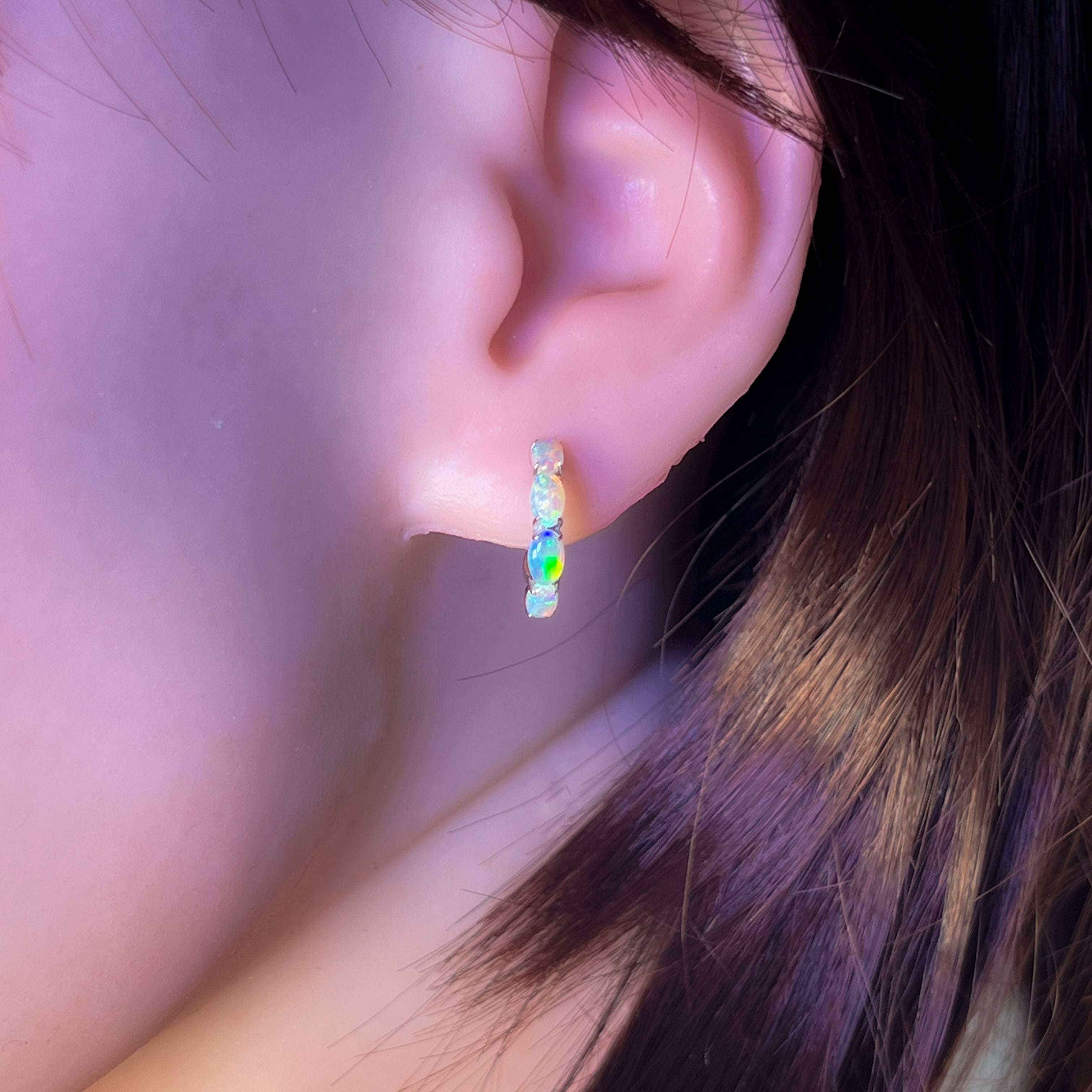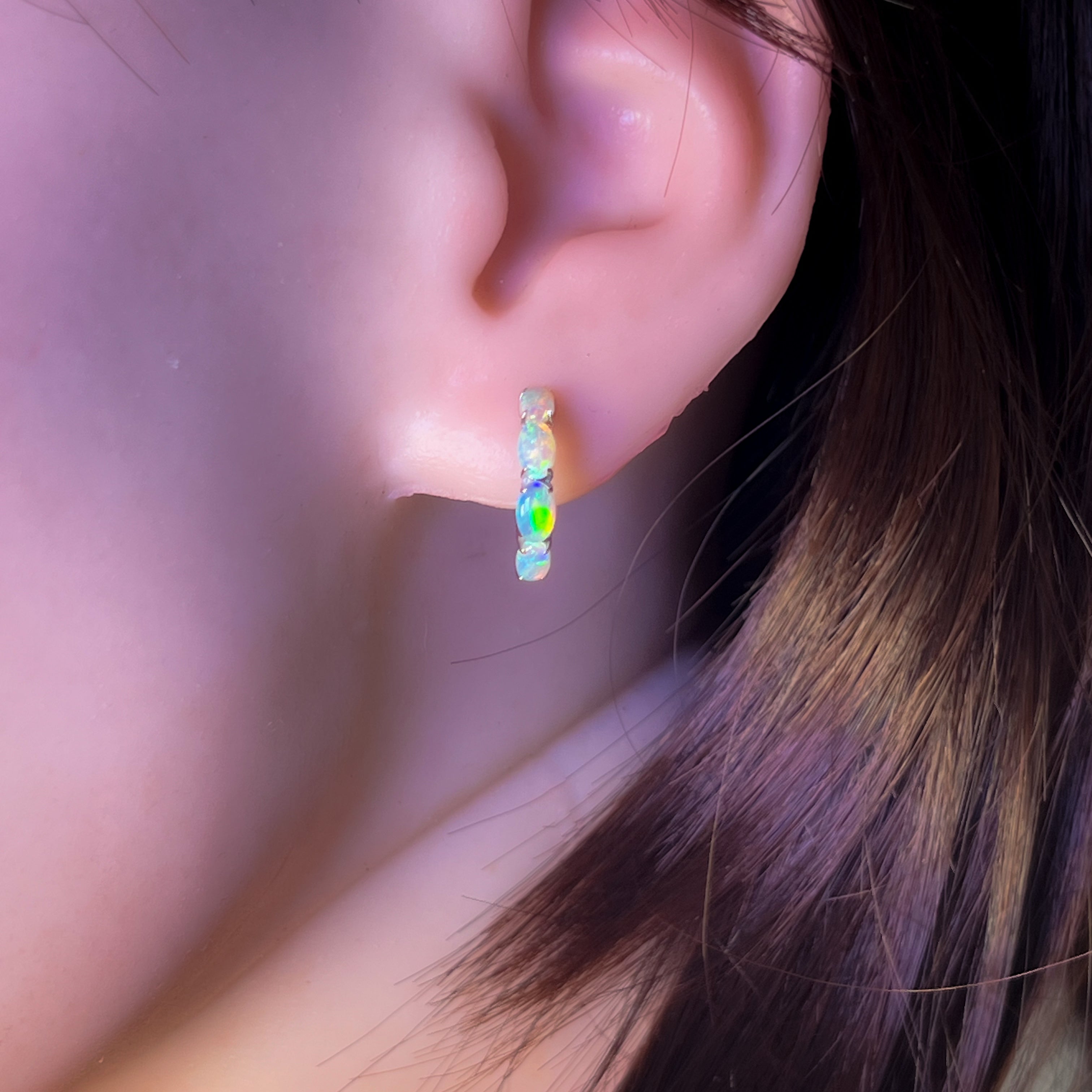 14kt White Gold Huggie design Crystal Opal 1.2ct earrings