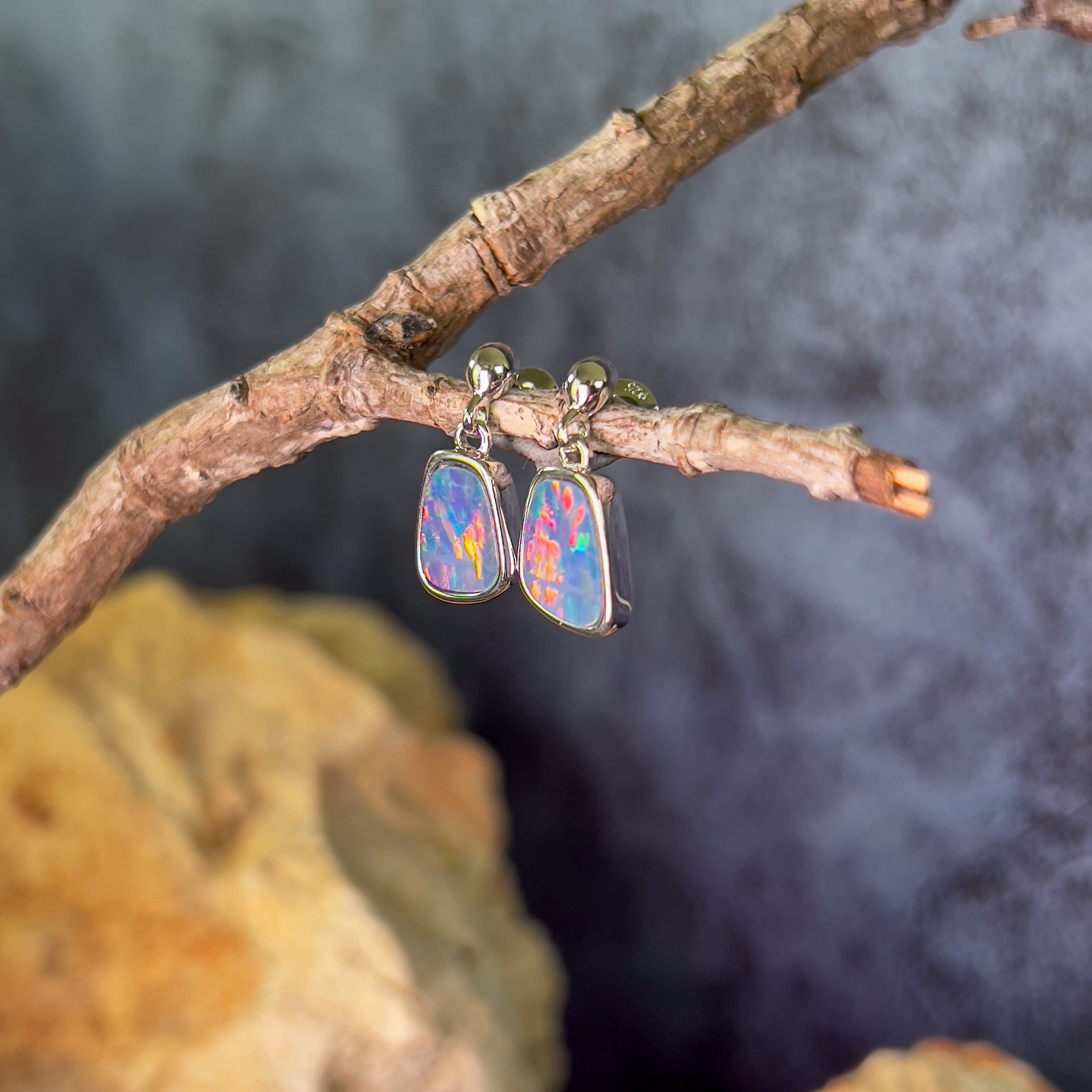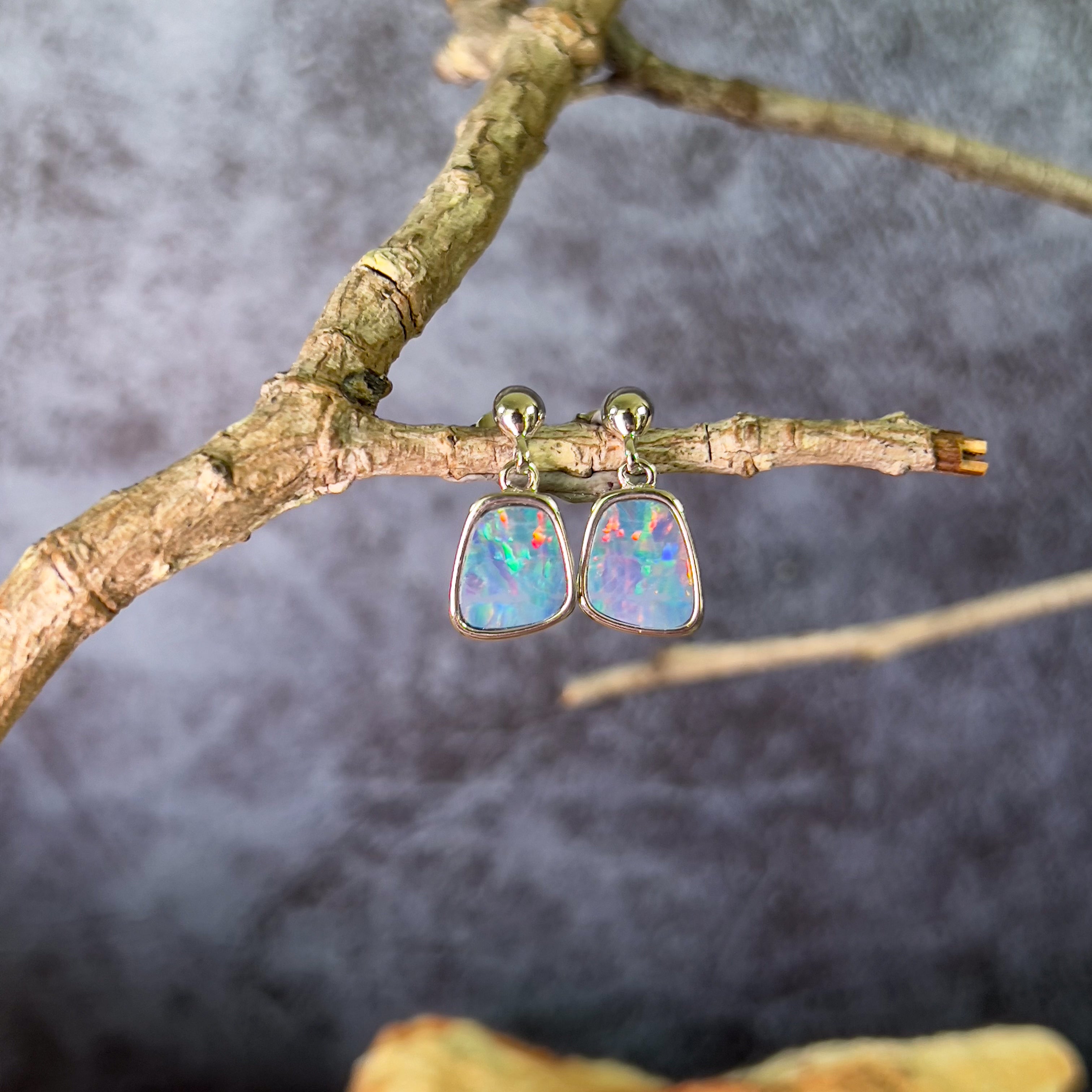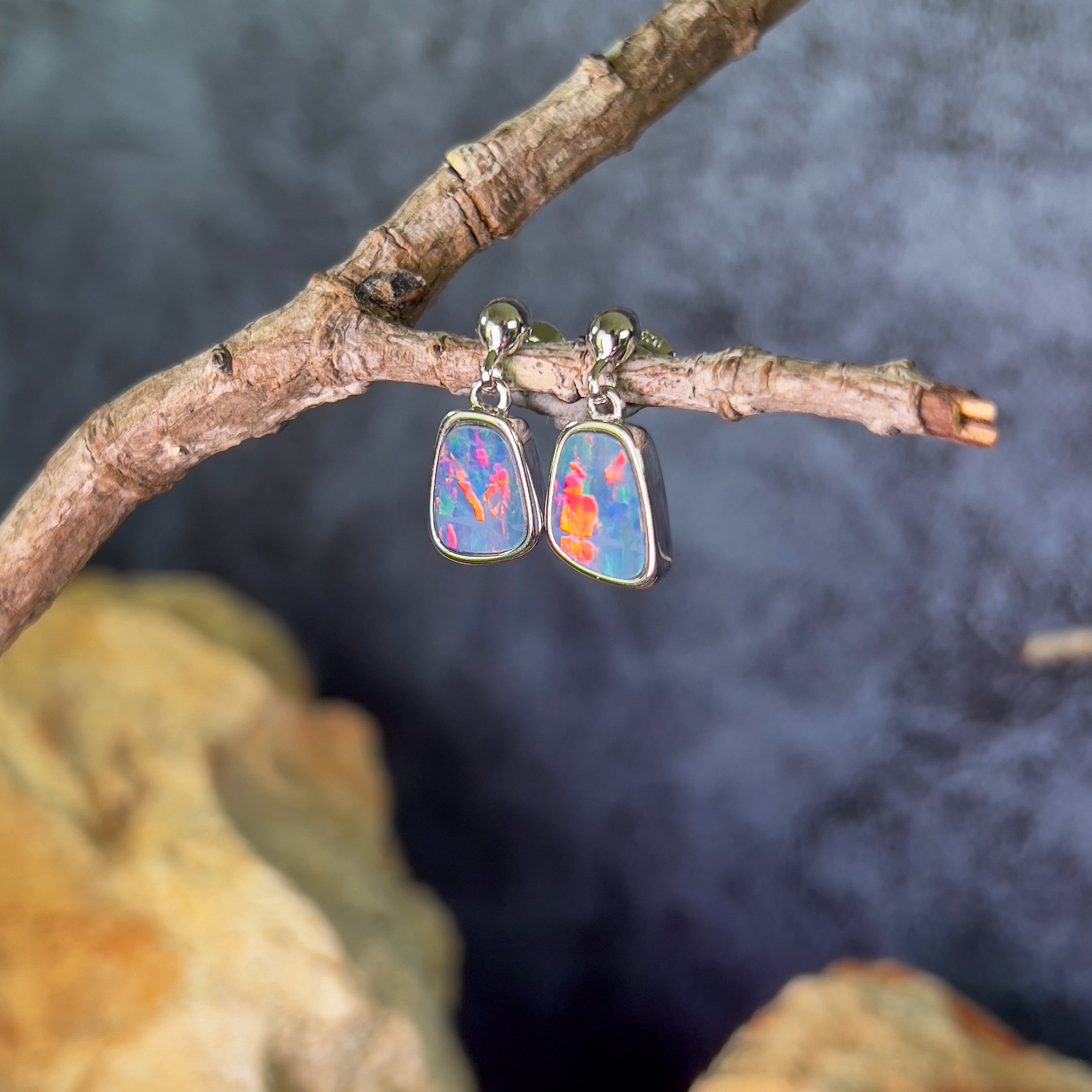 Add some sparkle to your outfit with these Sterling Silver Opal doublet earrings! The dangling rectangles give a unique touch while the short length keeps them comfortable to wear. (Plus, they make a great gift for any occasion!)