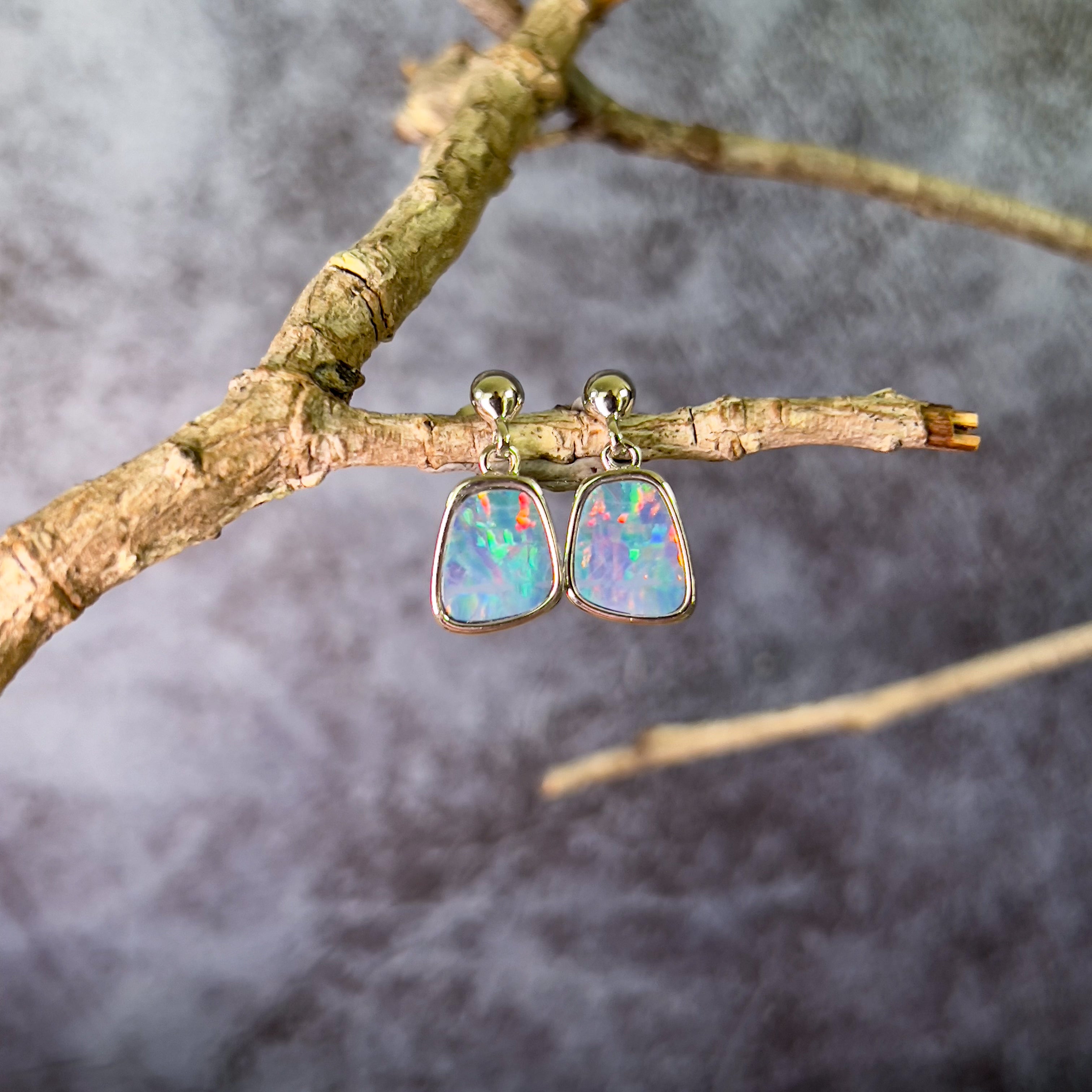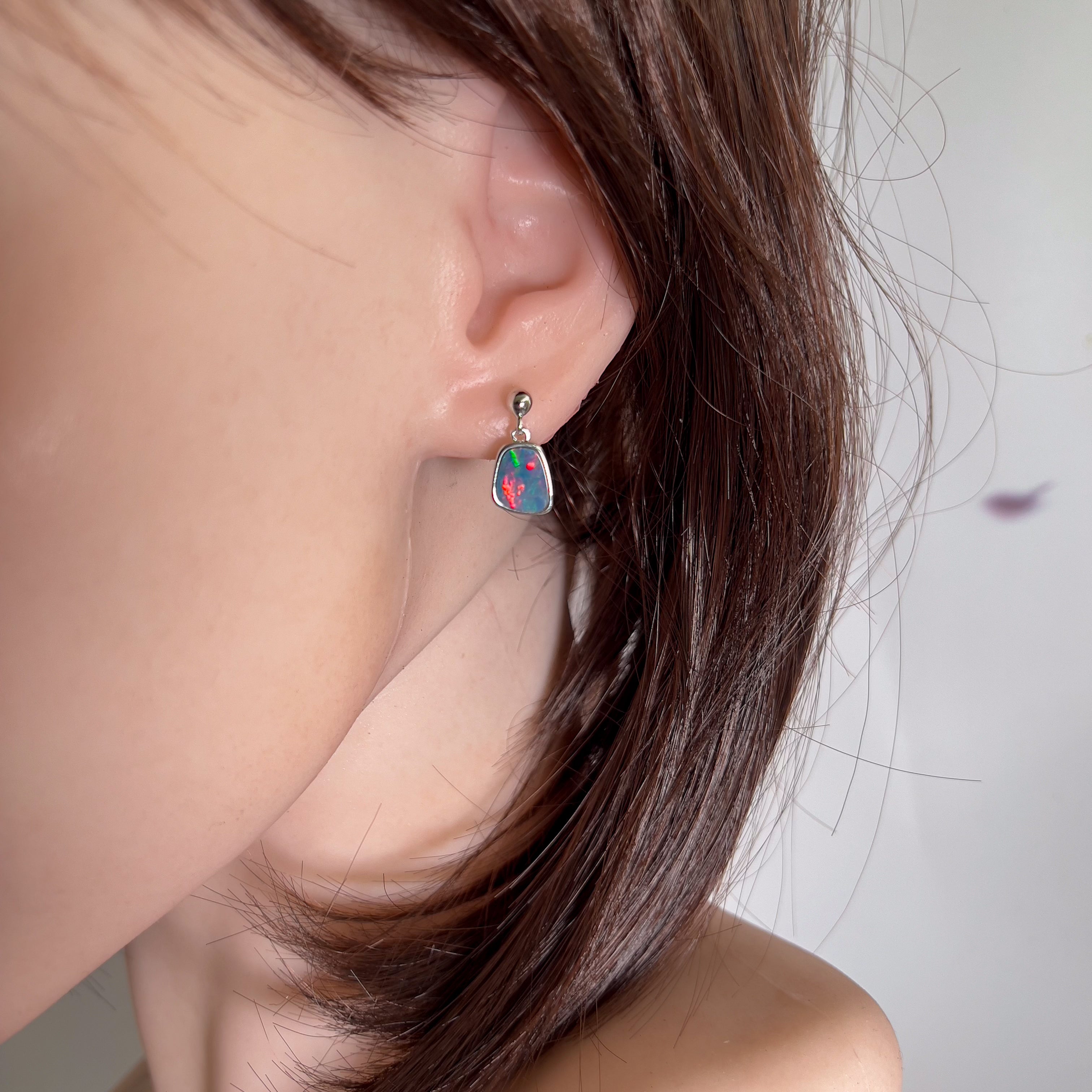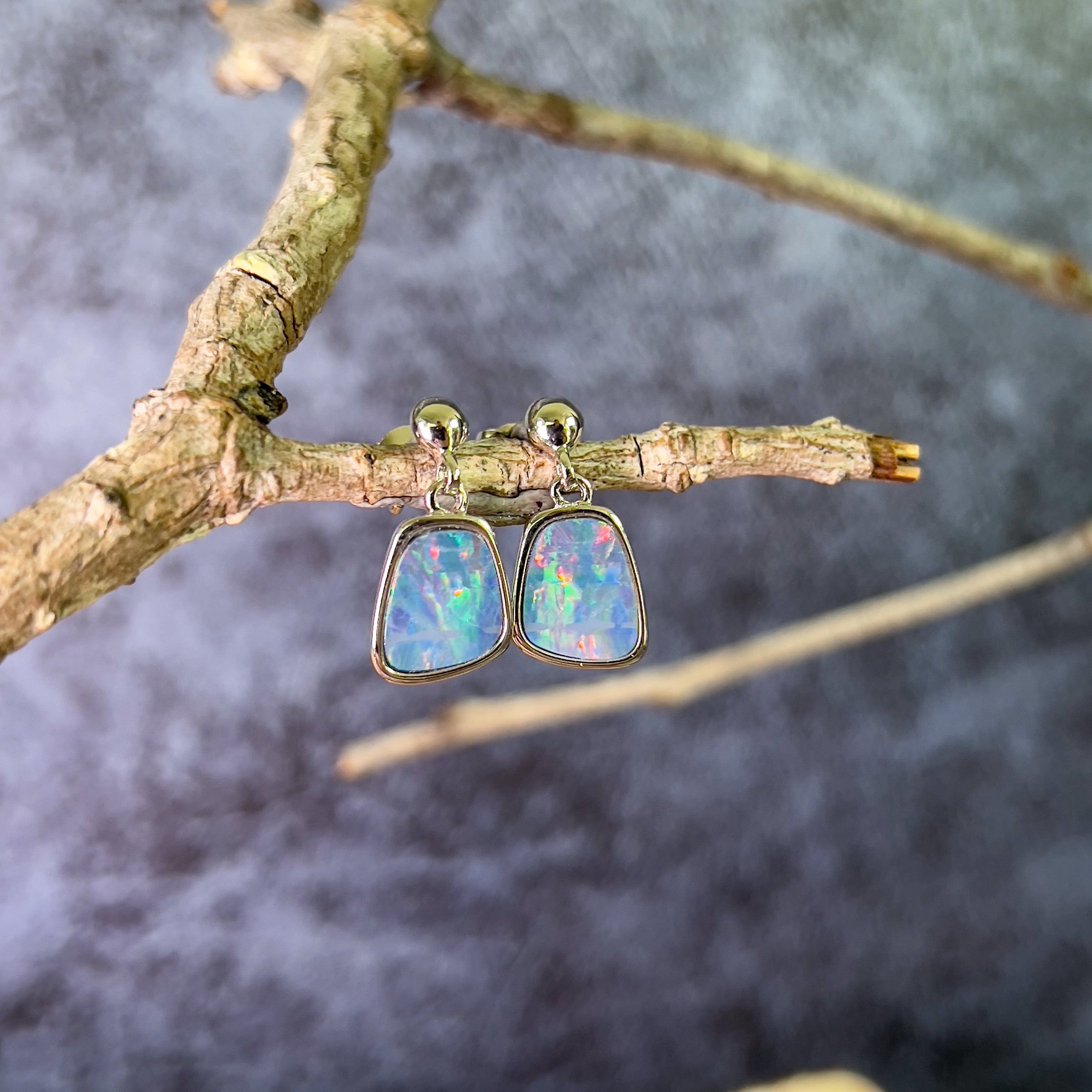 Add some sparkle to your outfit with these Sterling Silver Opal doublet earrings! The dangling rectangles give a unique touch while the short length keeps them comfortable to wear. (Plus, they make a great gift for any occasion!)
