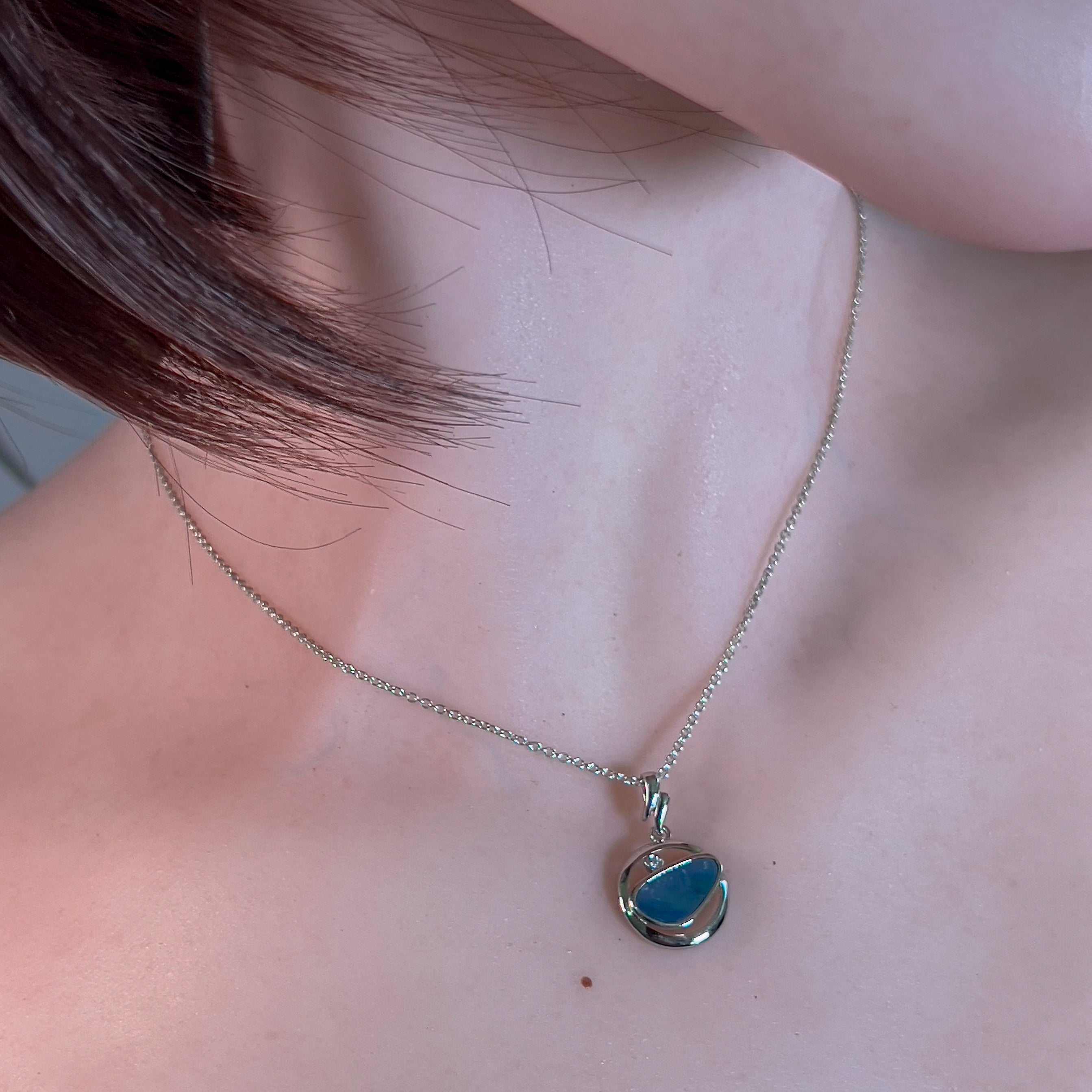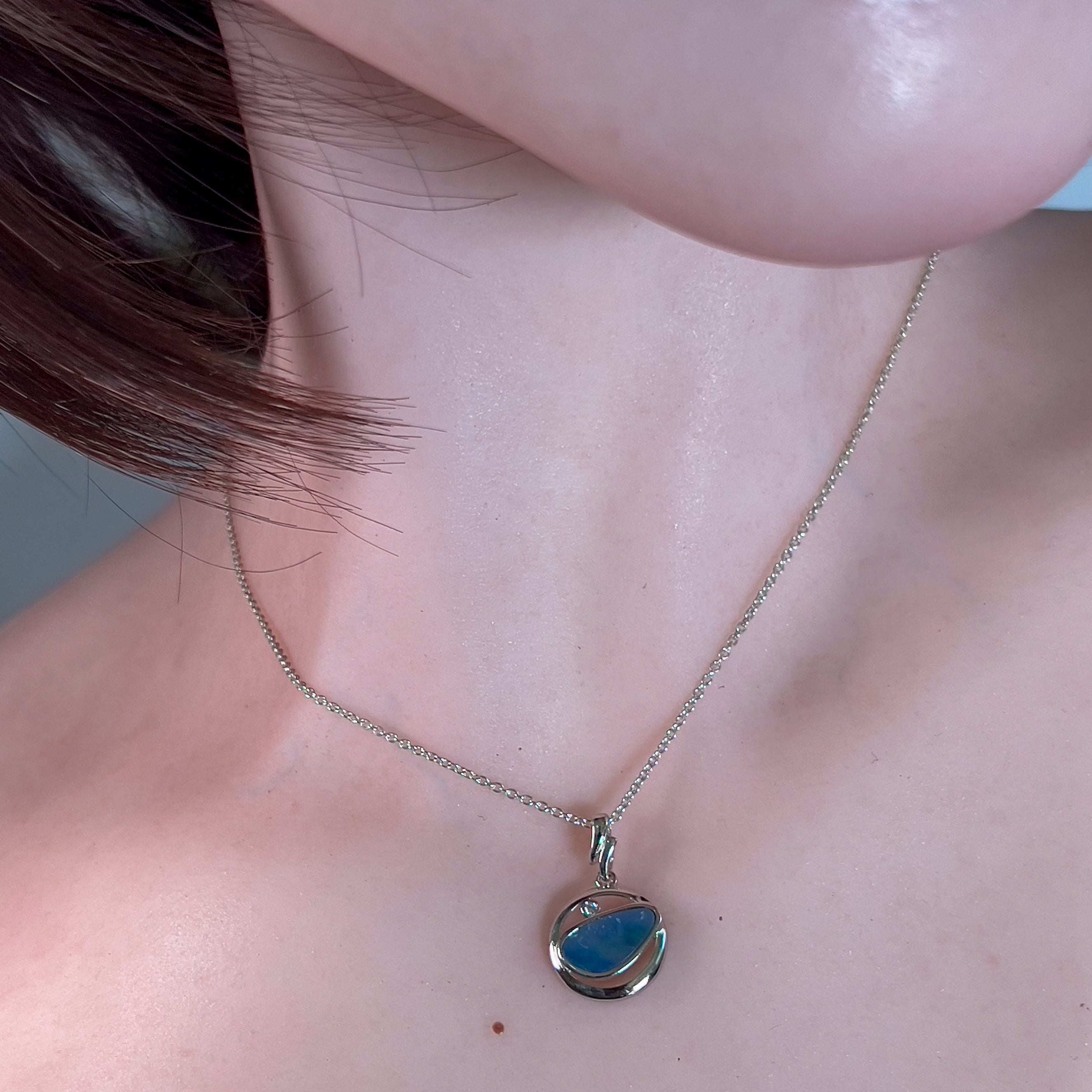 Experience the radiant beauty of our Sterling Silver Opal doublet horizontal circular pendant. This stunning circular design will add an elegant touch to any outfit, making you stand out from the crowd. Handcrafted with precision and featuring a captivating opal doublet, this pendant is the perfect accessory for any occasion.