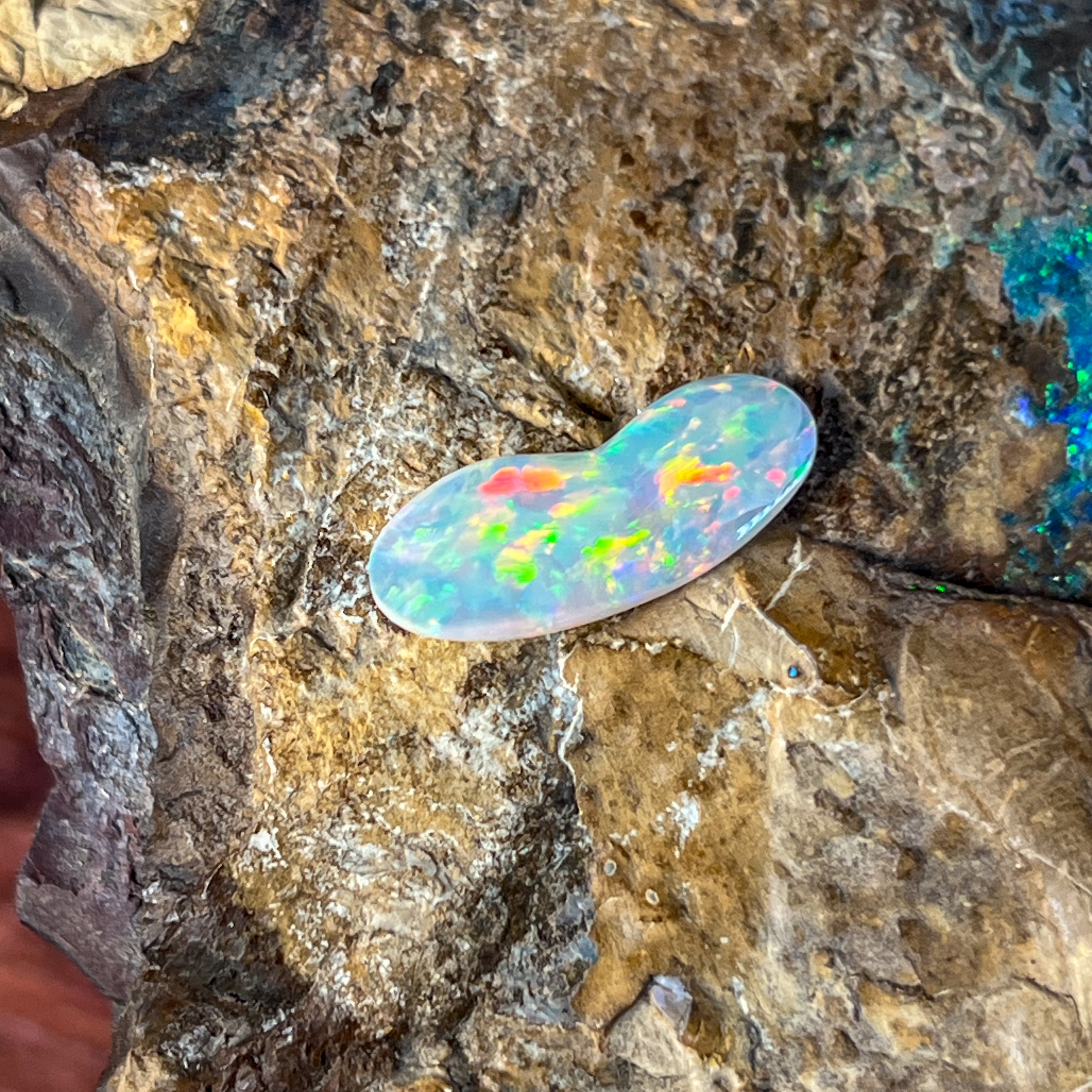 Opals are softer gemstones, rating about 5.5-6.5 on the Mohs scale of hardness. Try to avoid wearing opal jewelry during activities where the stones could be knocked or damaged.
