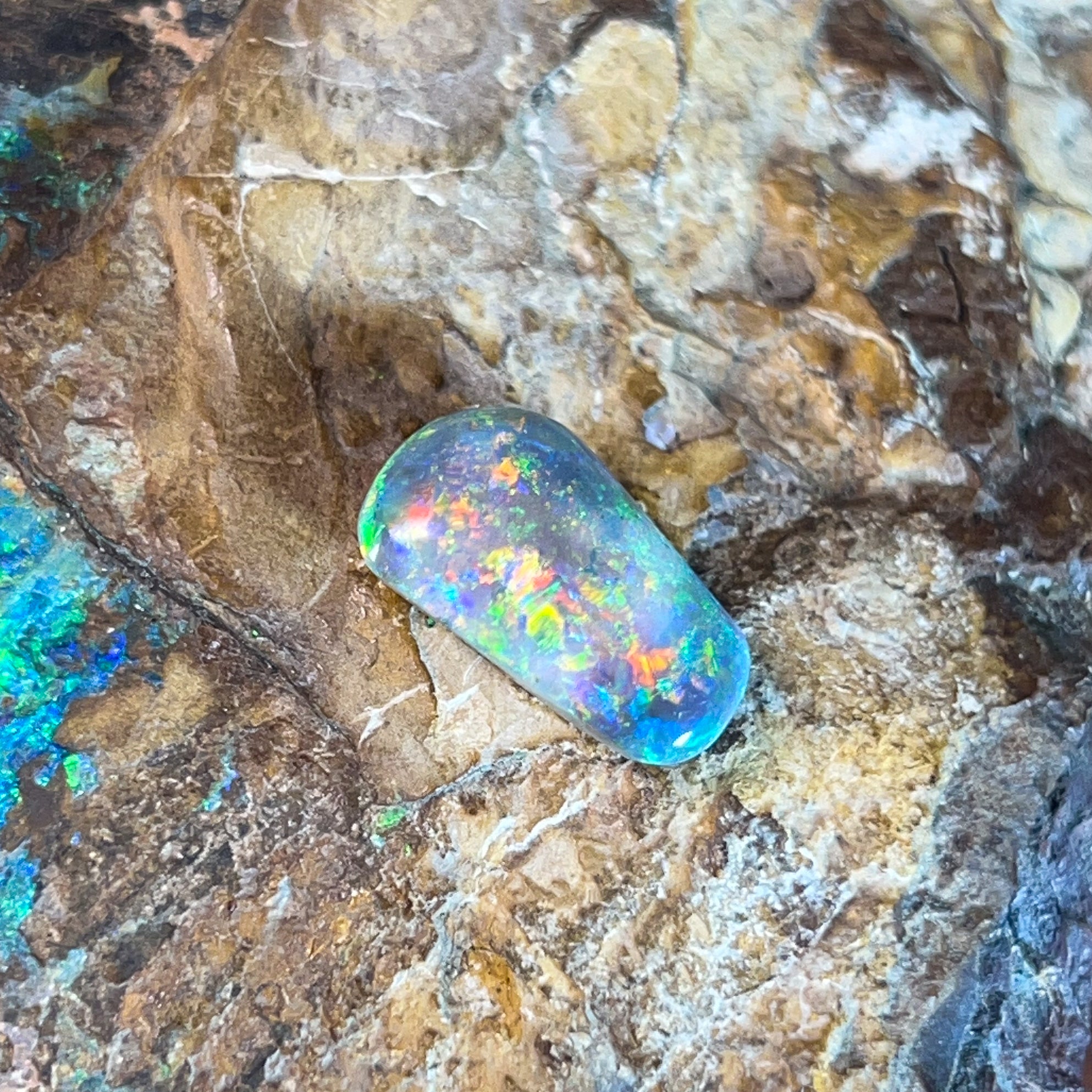 What's fantastic about boulder opals is their beauty and play in colours. They have a dark body tone, making them a bit similar in appearance to black opals.