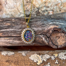 Elevate your elegance with this Gold Plated Silver bezel cluster pendant featuring a vibrant 9x7mm Opal triplet. Its classic design pairs timeless beauty with durability, making it perfect for everyday wear or special occasions. The bezel setting protects the opal while highlighting its fiery play of colors, ensuring you always shine with subtle sophistication.