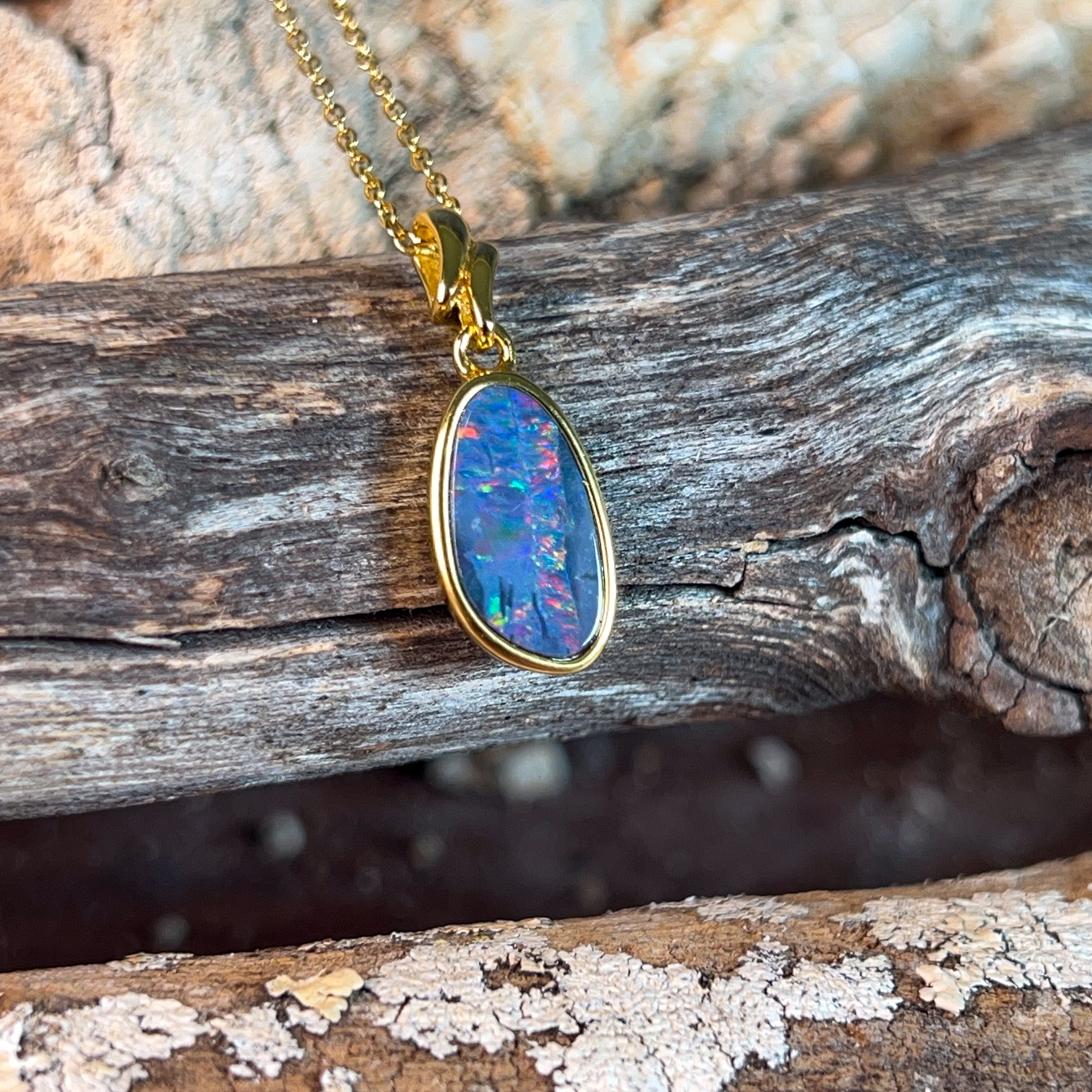 Gold plated silver opal pendant 14x9mm doublet pendant
