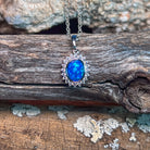 Sterling Silver Black Opal doublet Blue colour halo pendant