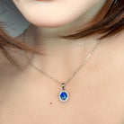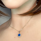 Elevate your elegance with this sterling silver pendant featuring a captivating black opal doublet framed by a delicate blue colour halo. Its classic dainty design offers timeless style perfect for daily wear or special occasions, while the vibrant opal glow adds a unique touch of sophistication to any outfit.