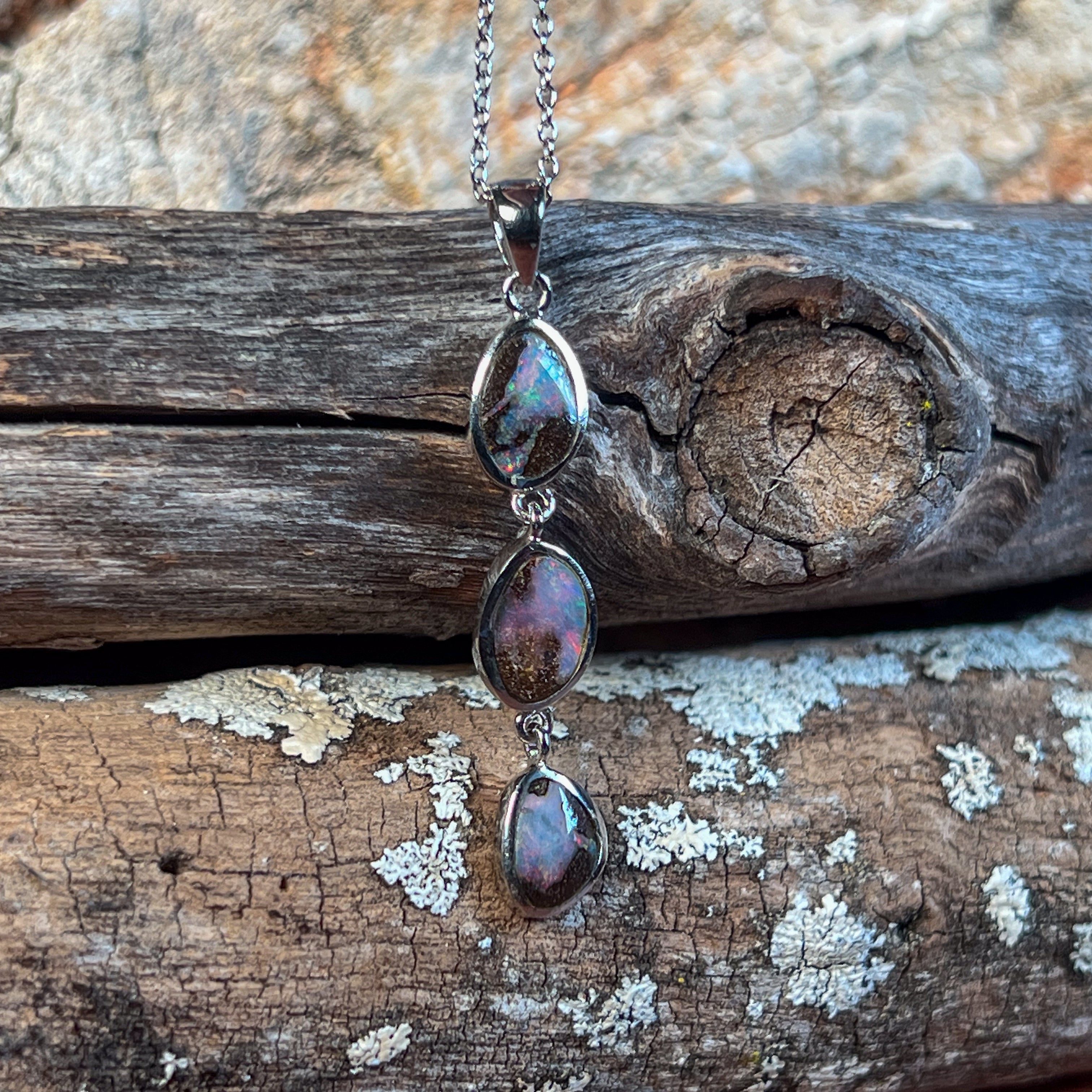 Sterling Silver Boulder Opal 3 stone drop style pendant