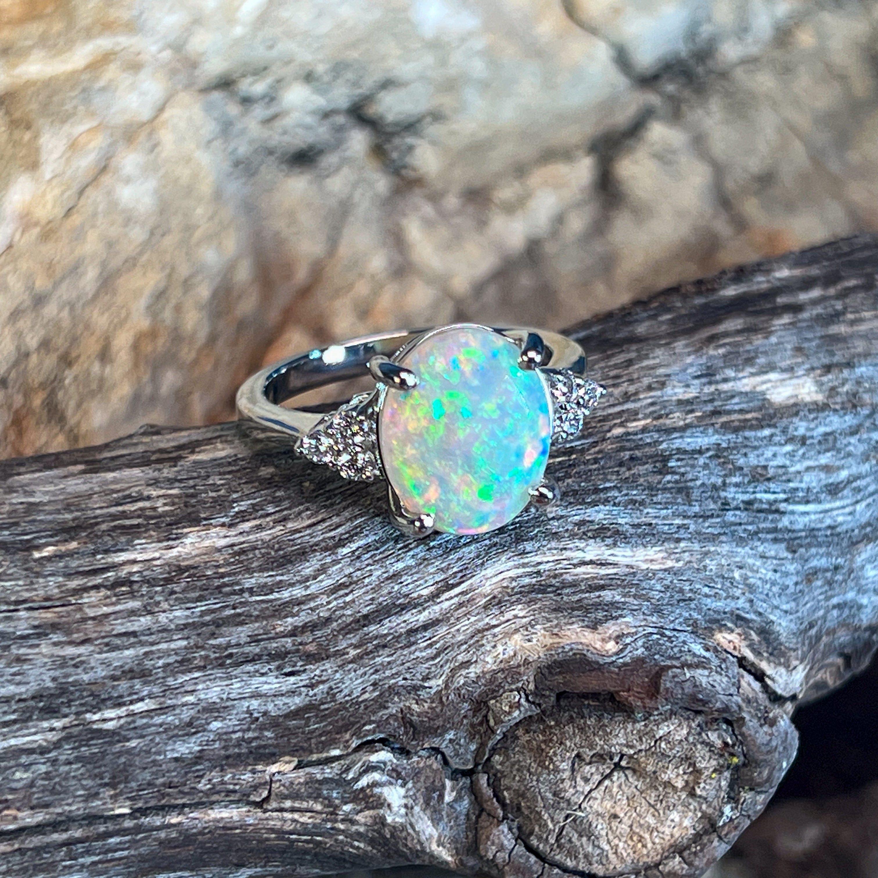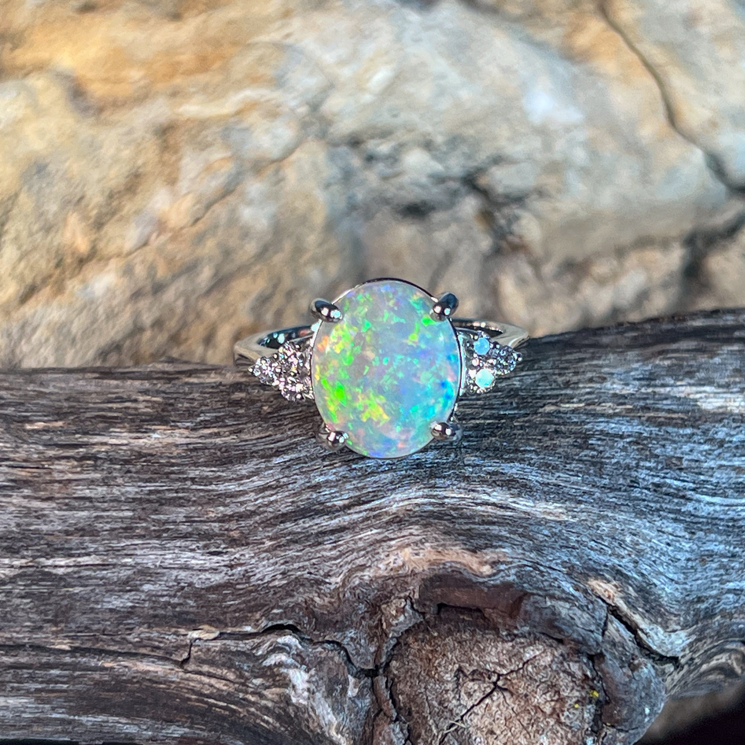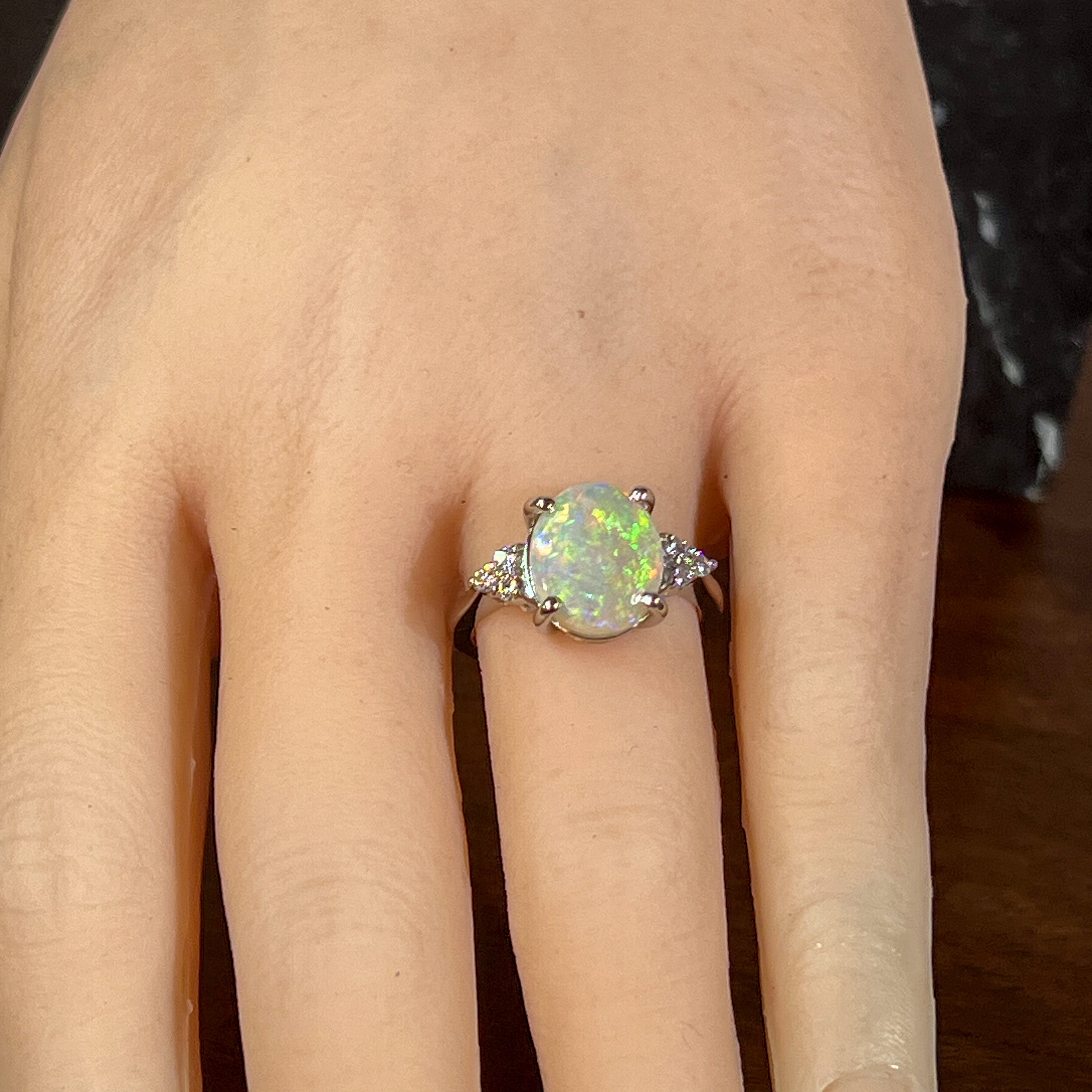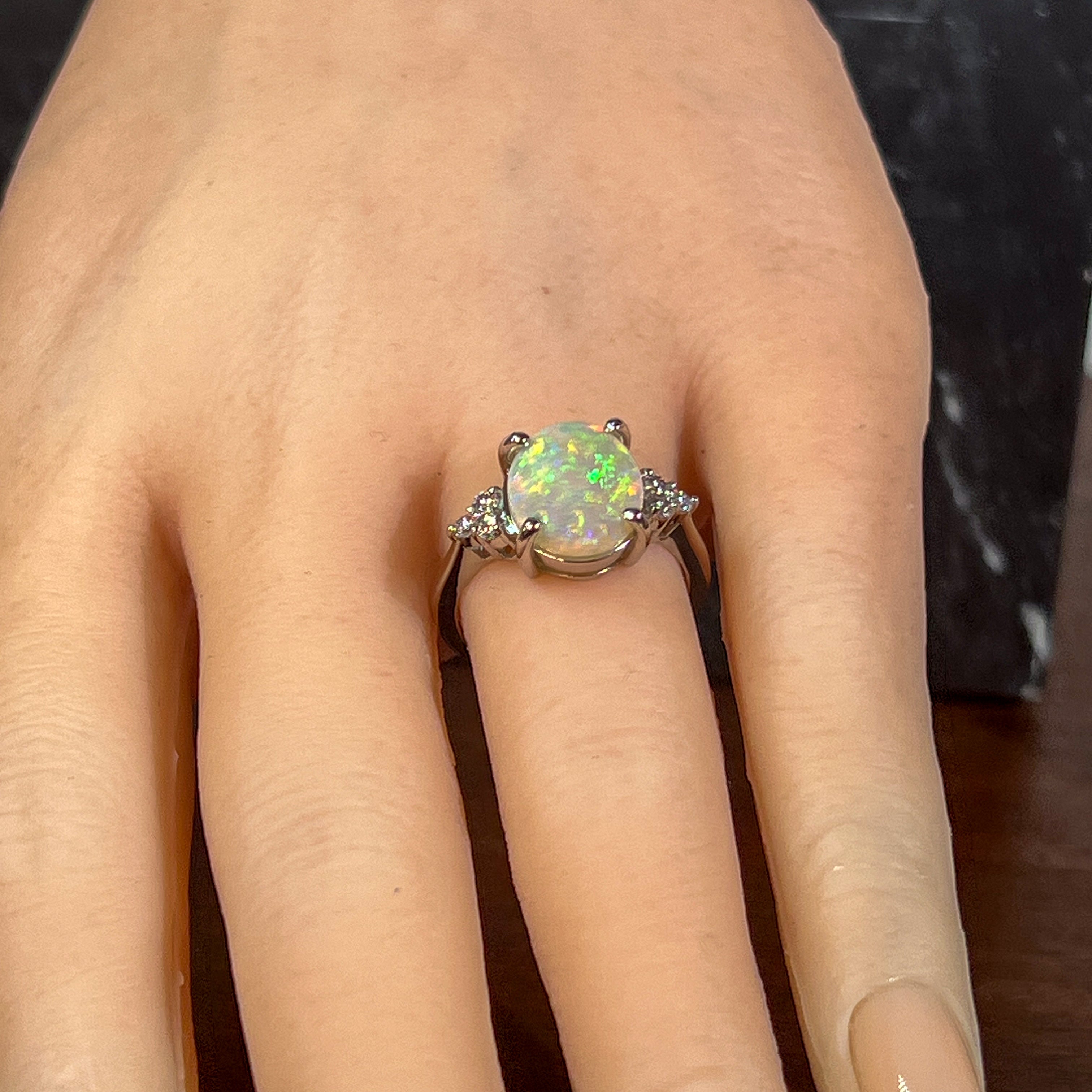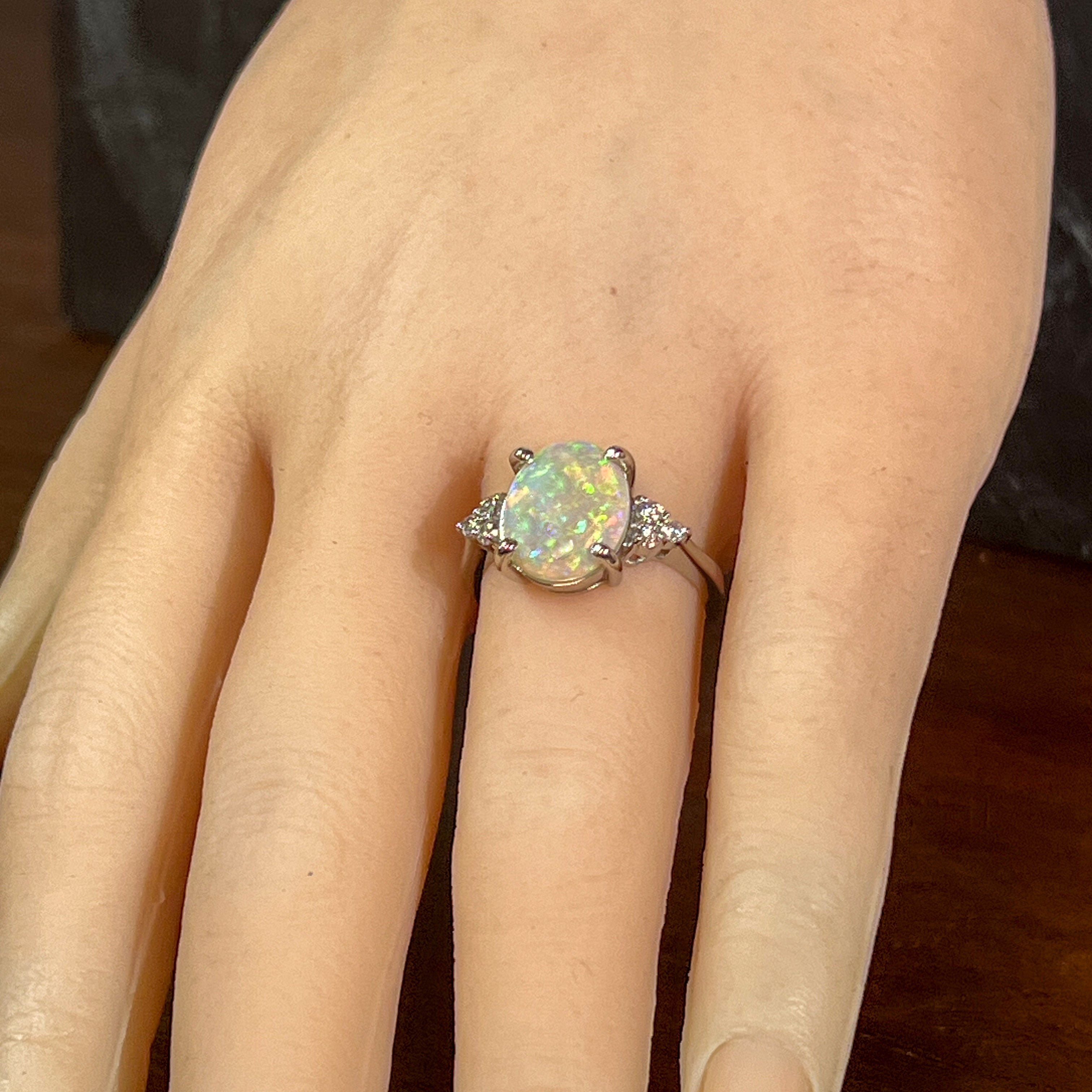 Diamond and opal rings often go well together, not only because they look good but also because diamond balances the opal stones' softness.