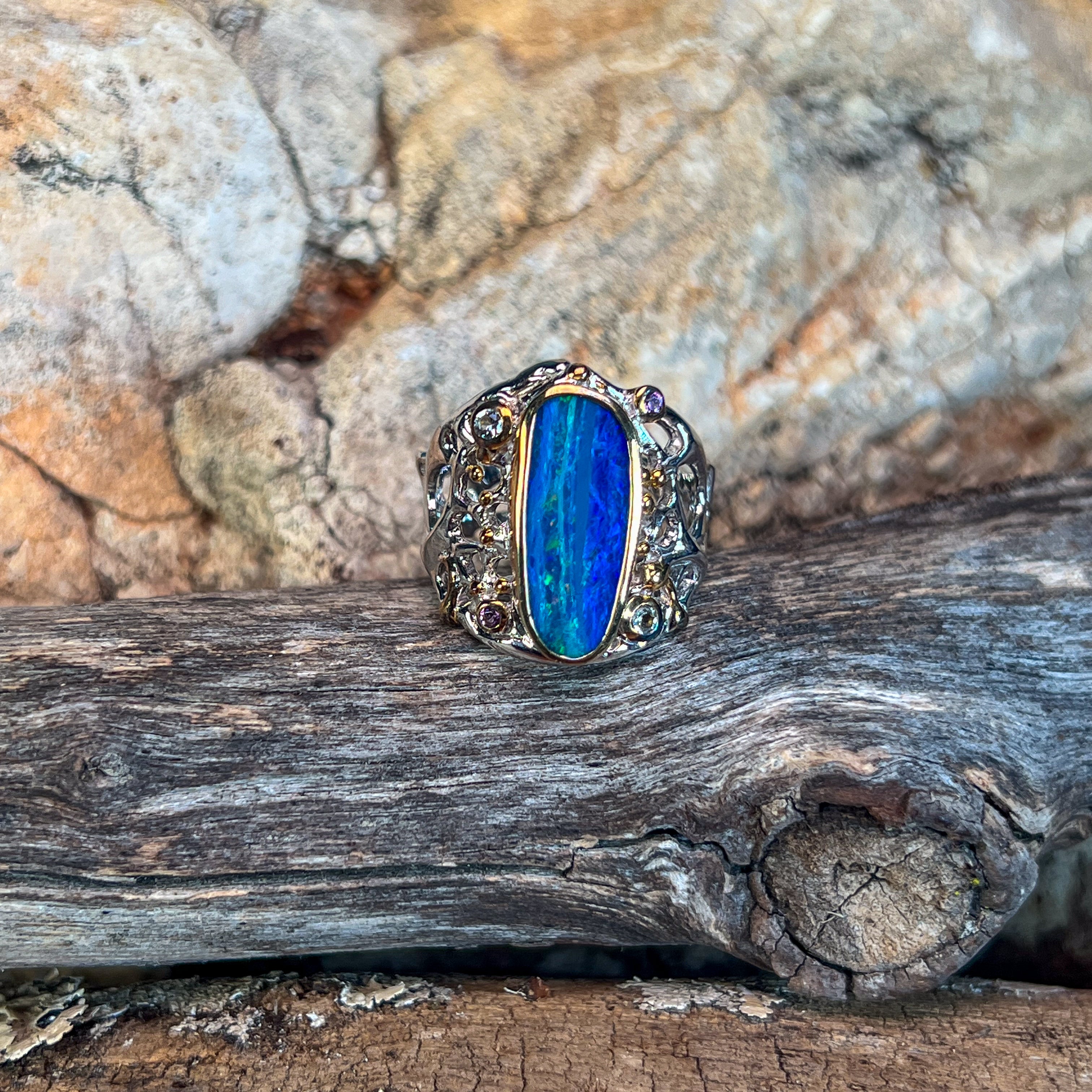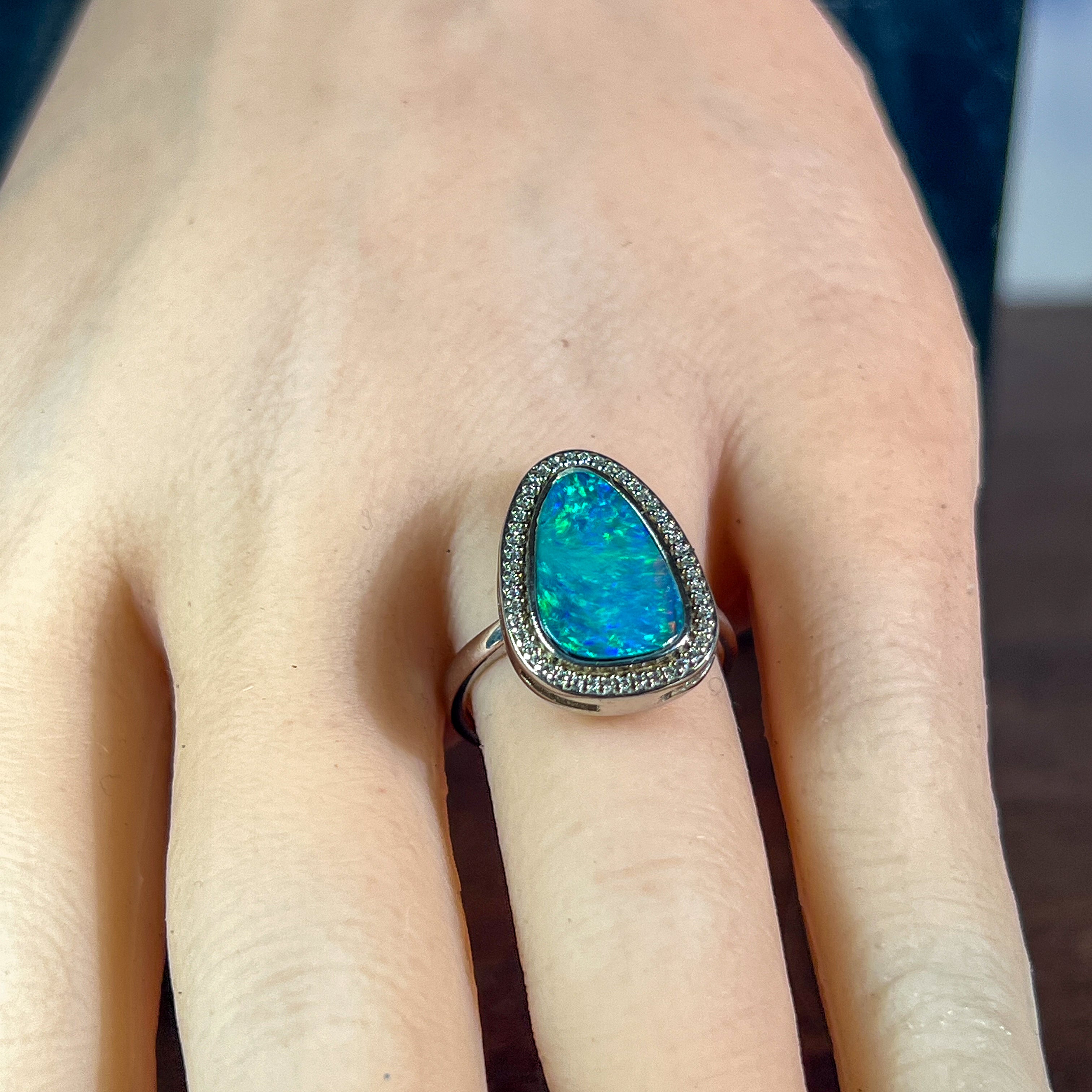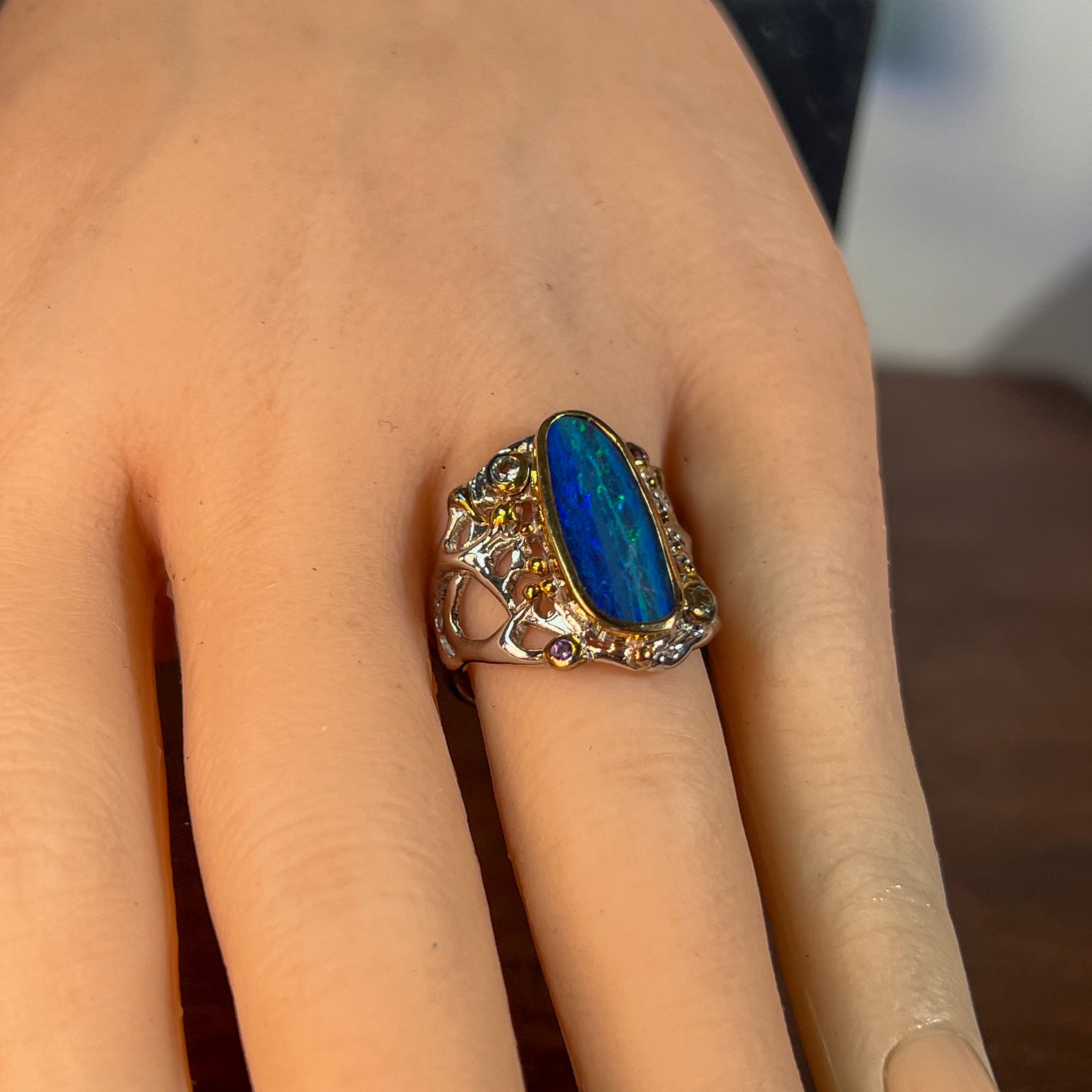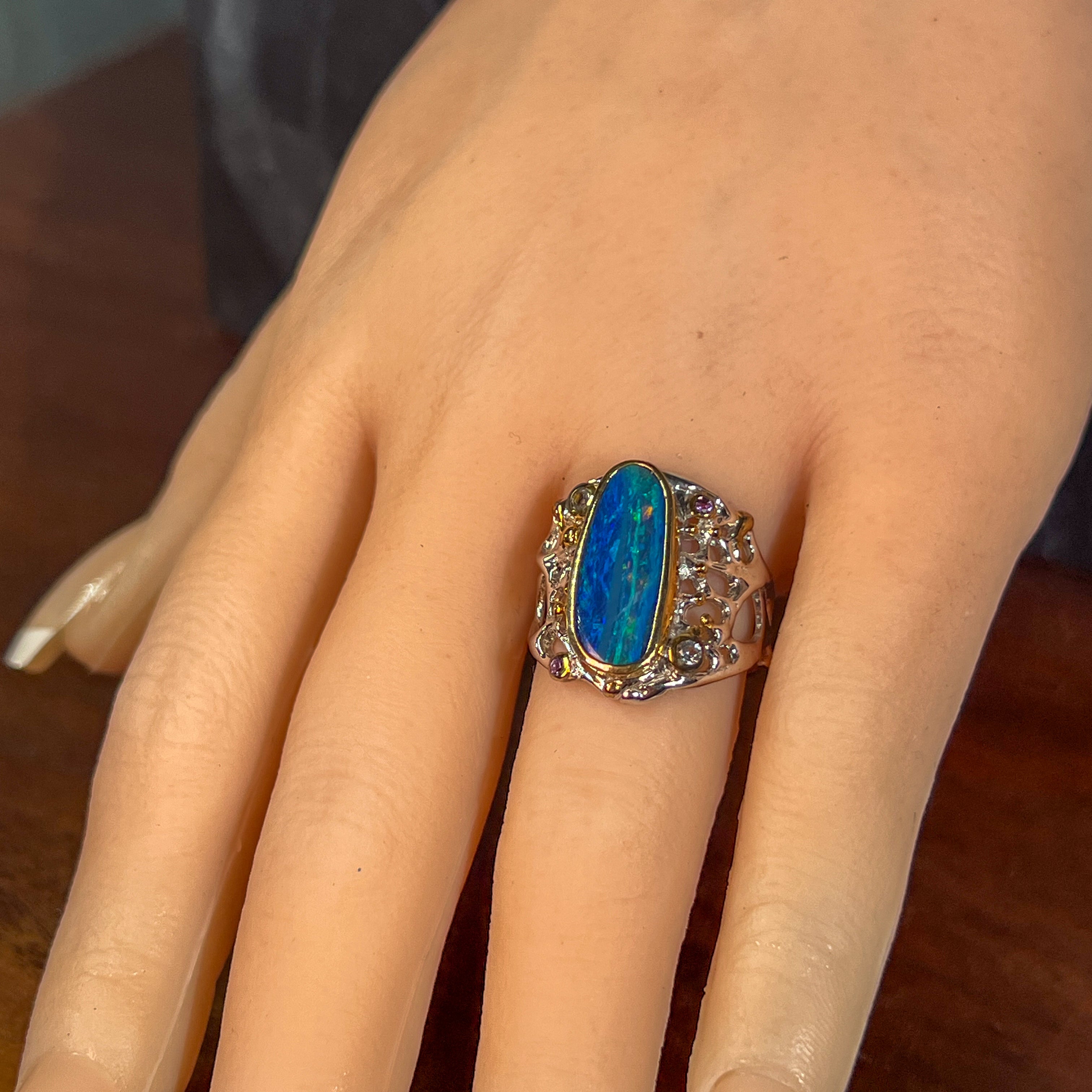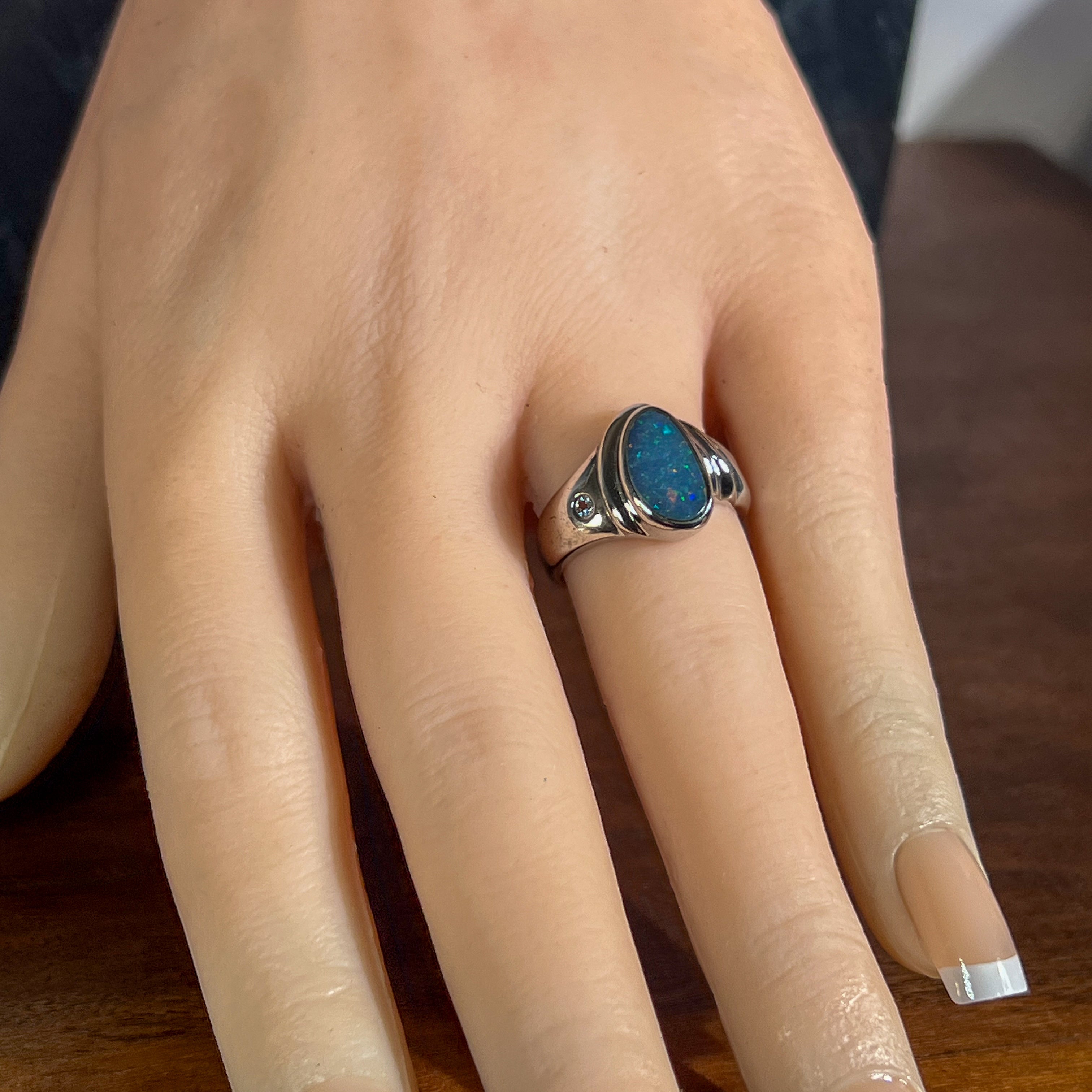 Meanwhile, blue opal rings are the perfect accessories to complement orange, green or purple outfits. Blue opal rings are also perfect as a gift or a wedding ring. Take a look at our collection of blue opal rings in our shop.