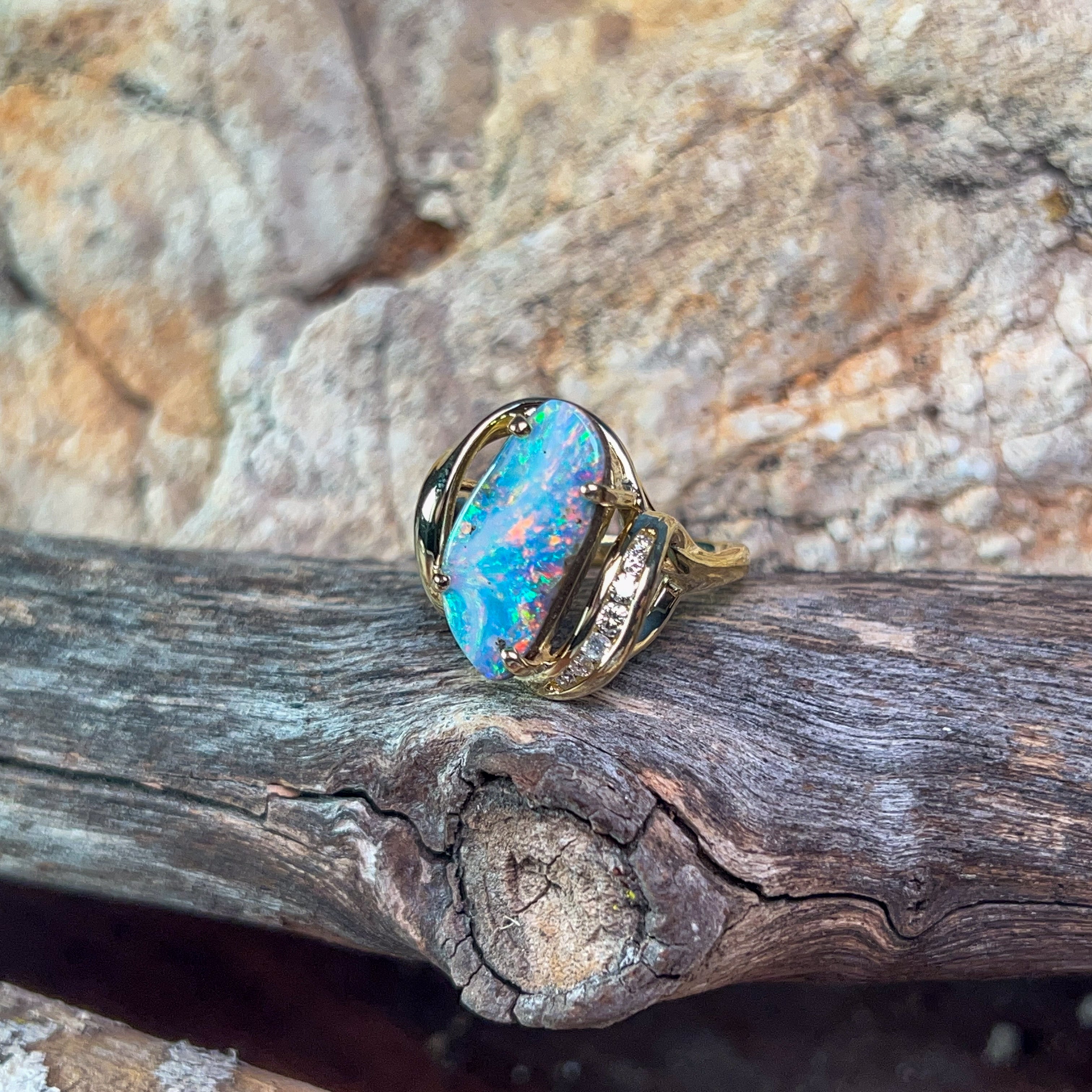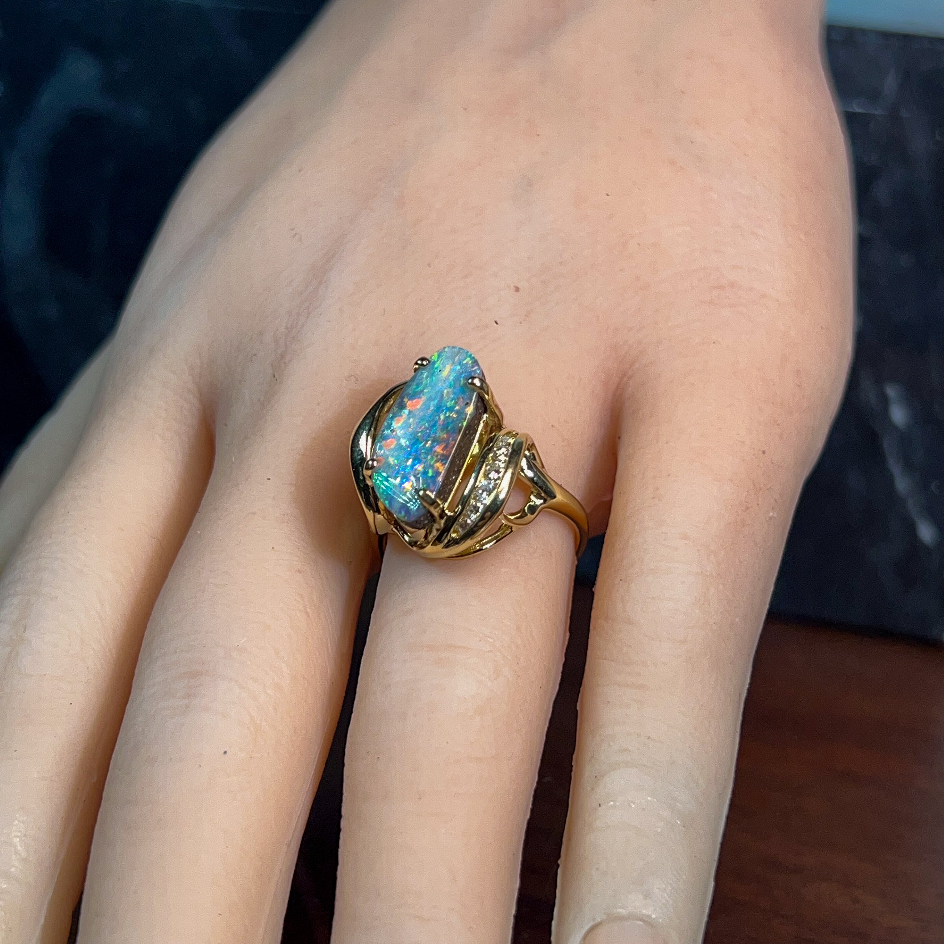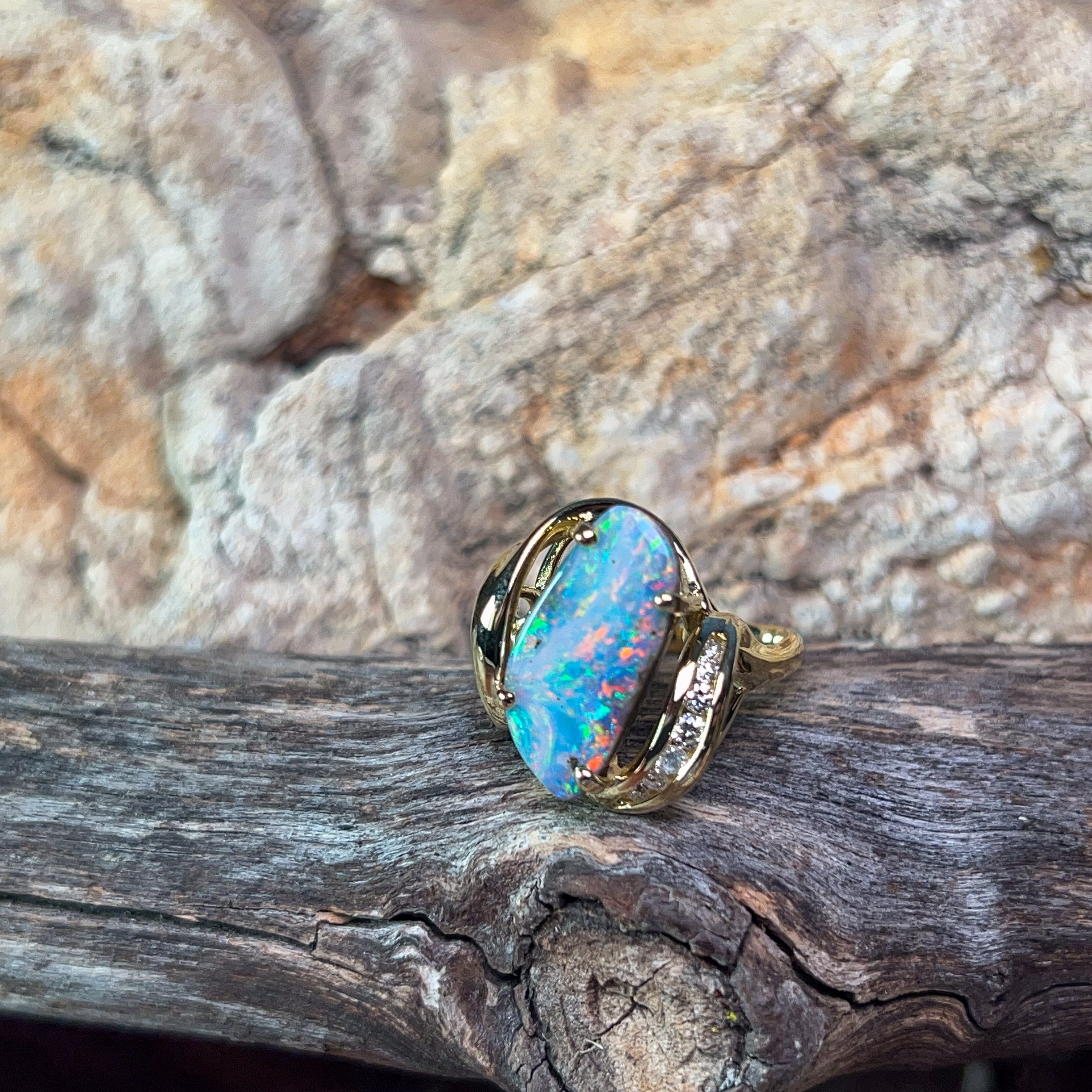 18kt Yellow Gold Boulder Opal 5.7ct and diamond ring