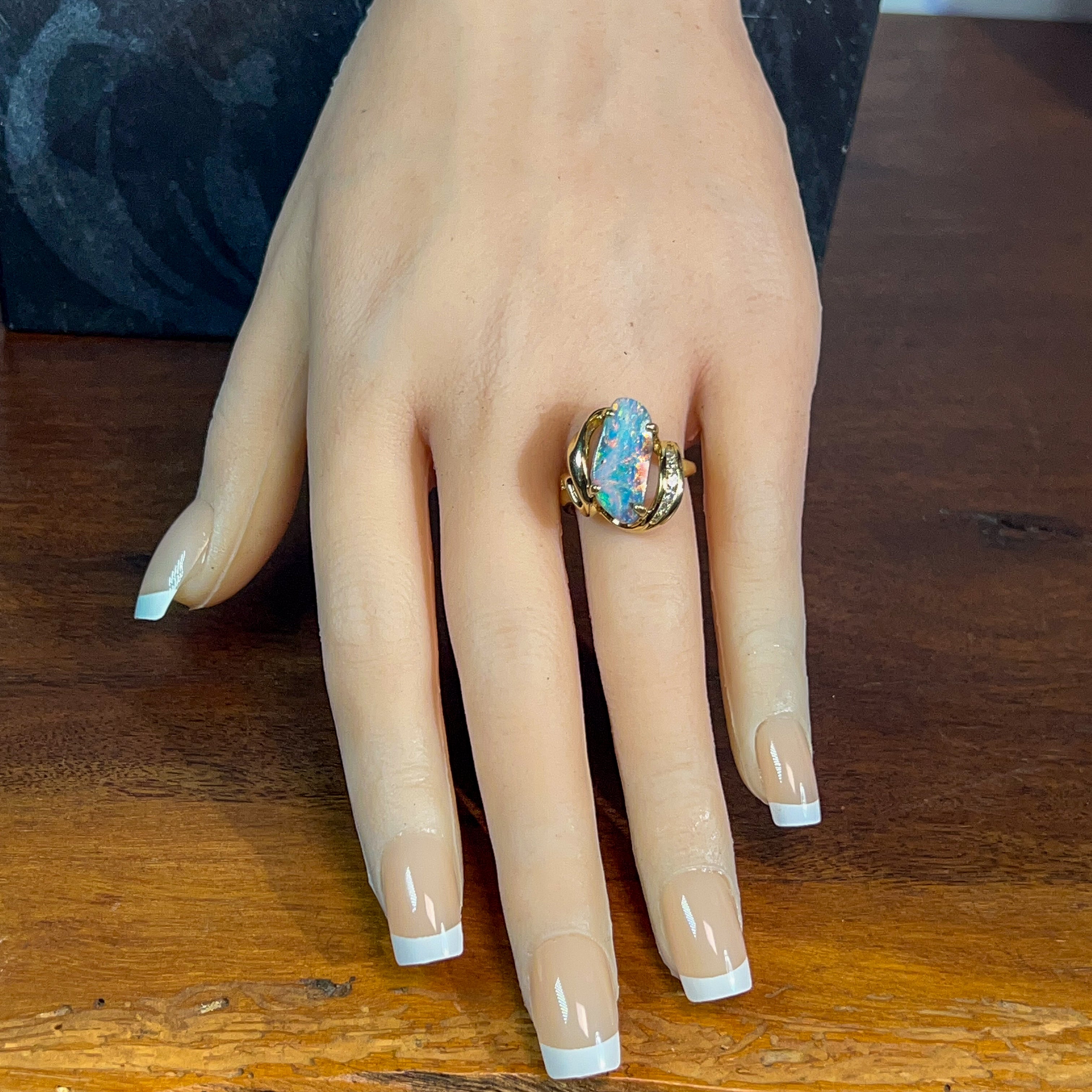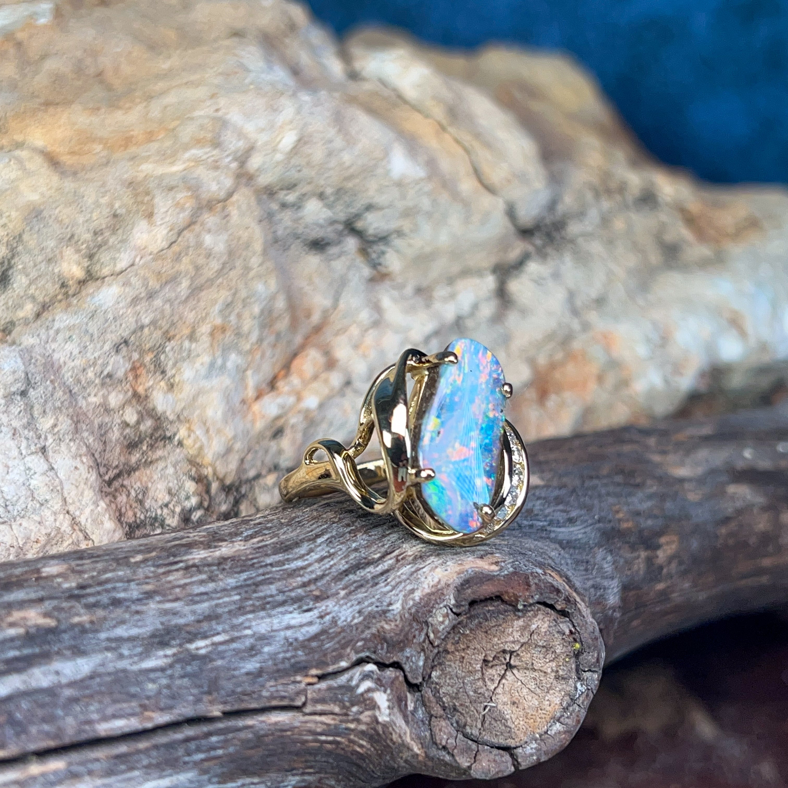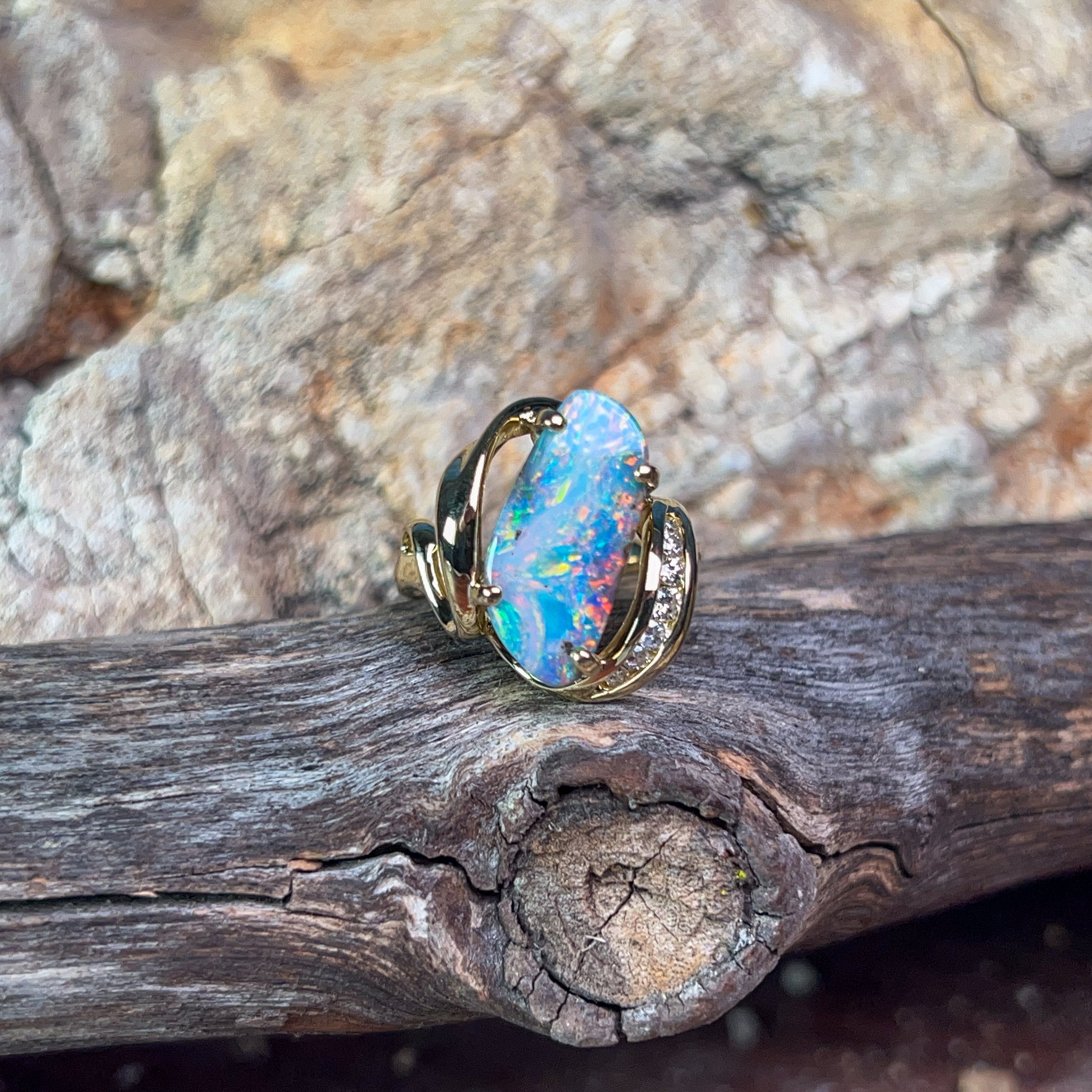 18kt Yellow Gold Boulder Opal 5.7ct and diamond ring
