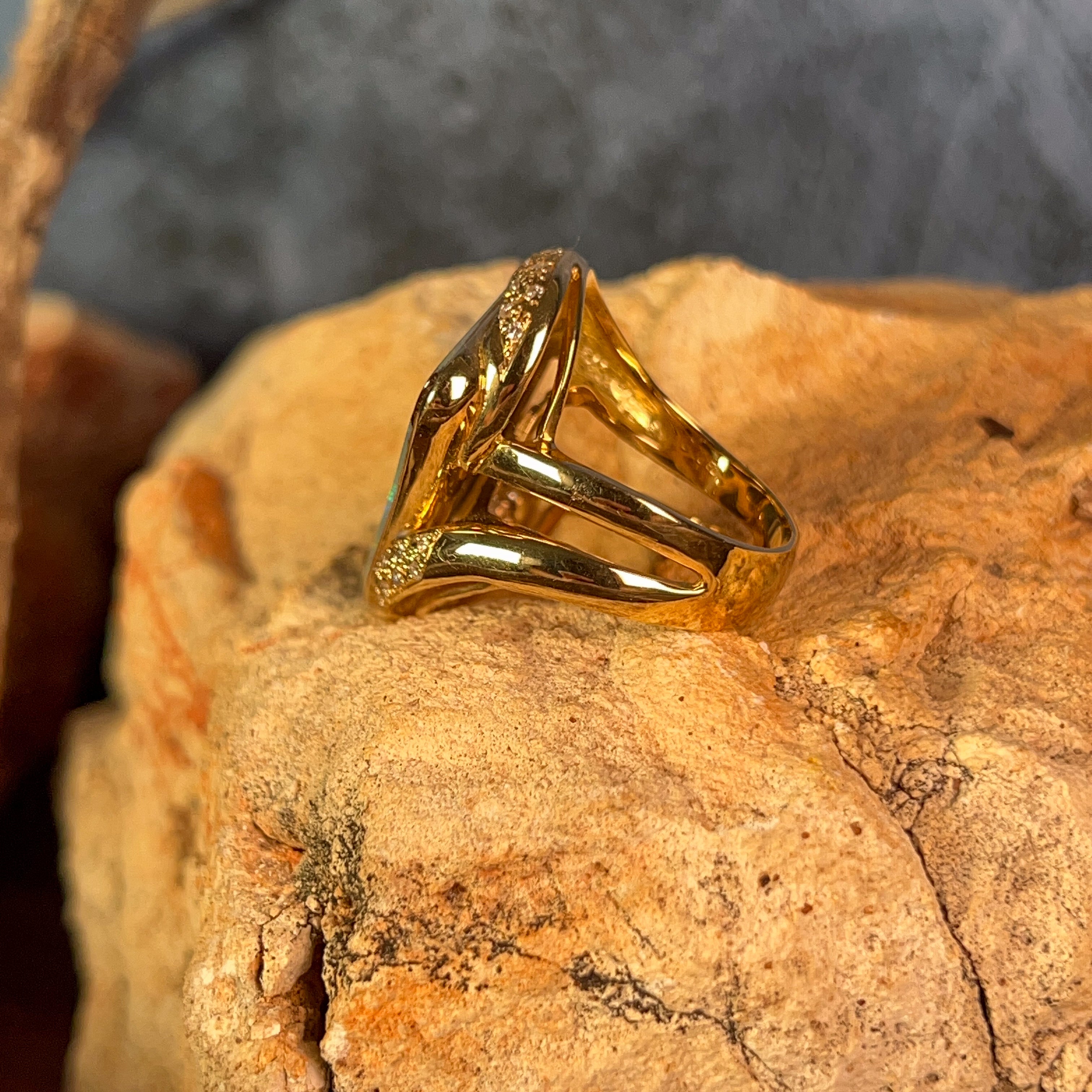 18kt Yellow Gold Boulder Opal 9ct diamonds 0.18ct statement ring