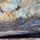 Elevate your everyday elegance with this stunning gold-plated silver opal triplet ring. The 13x7mm opal showcases mesmerizing play-of-colour that shifts with every movement, while the precious metal setting ensures lasting durability and timeless appeal. Perfect for those seeking authentic opal beauty without compromise, this piece combines contemporary design with the natural magic of genuine gemstones. A versatile addition to any jewellery collection that captures light and attention effortlessly.