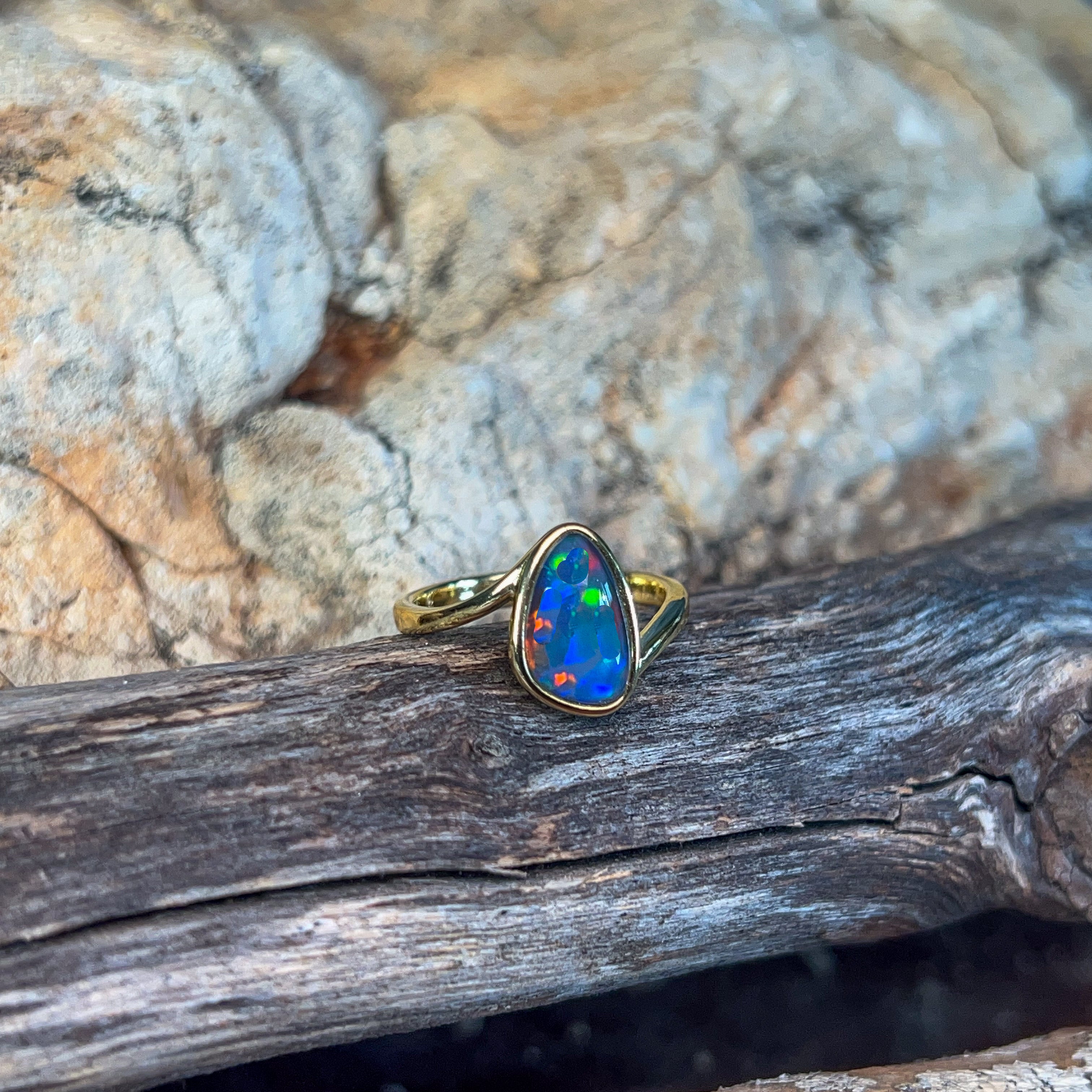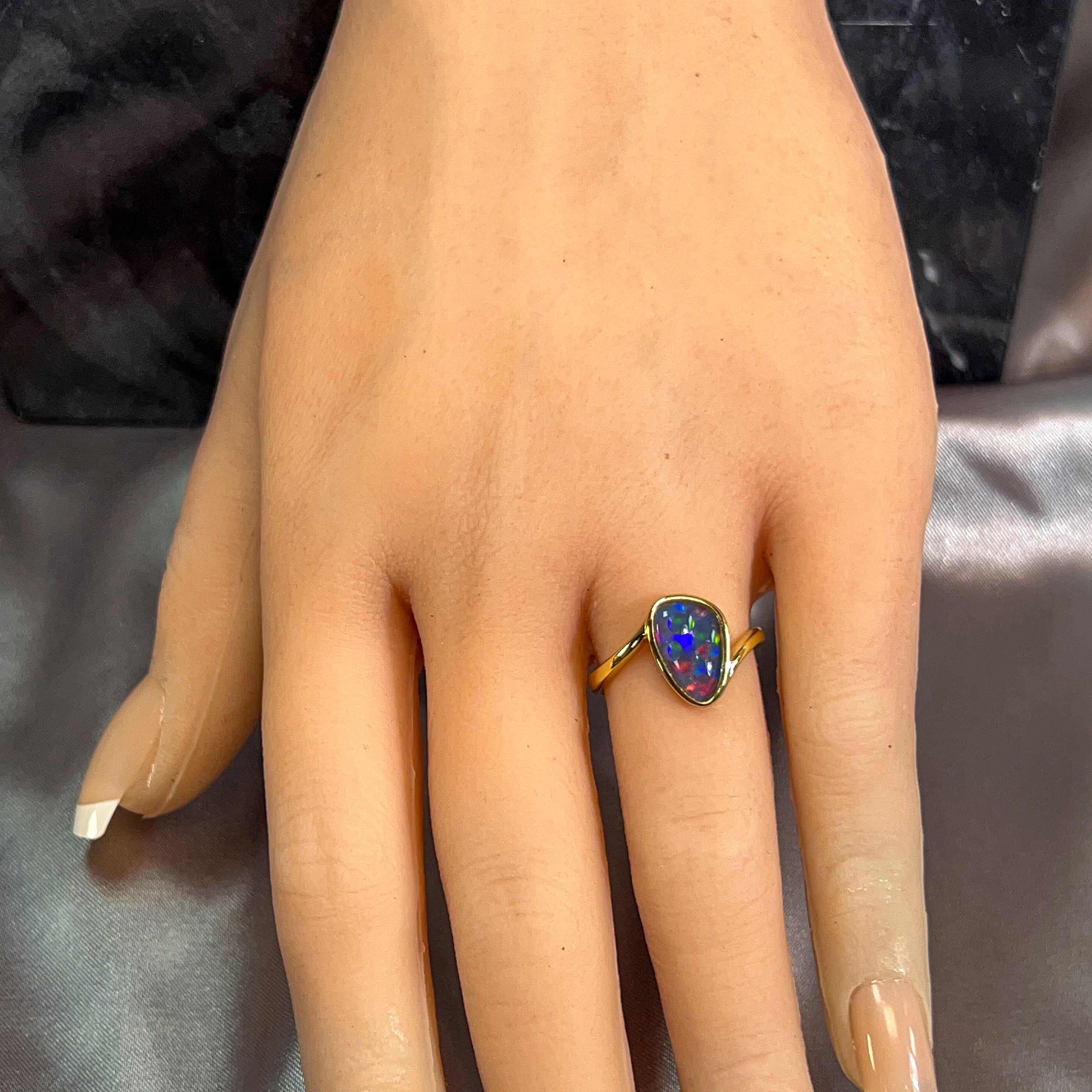 Gold Plated Silver Opal 13x7mm triplet ring