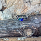 One Sterling Silver Australian Opal doublet horizontal ring