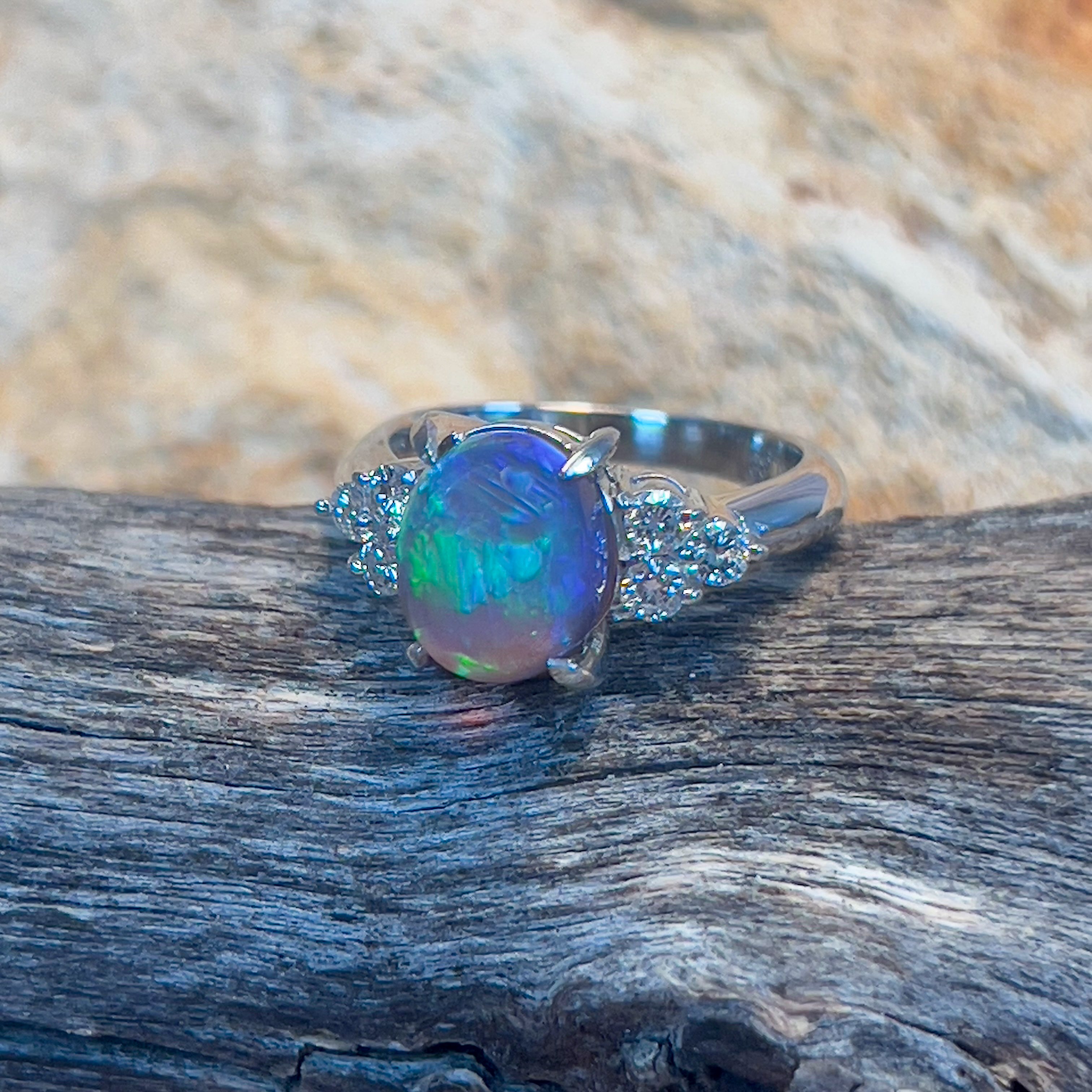Platinum Black Opal 2.92ct and 0.33ct 6 Diamond ring