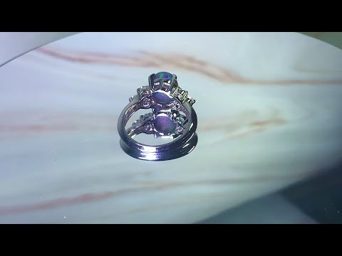 Indulge in luxury with our Platinum Black Opal 2.92ct and 0.33ct 6 Diamond ring. The mesmerizing opal stone is sure to capture attention, making it the perfect gift for her. With the added sparkle of 6 diamonds, this opal engagement ring is a timeless and sophisticated choice. Elevate your love with this exclusive and elegant piece.