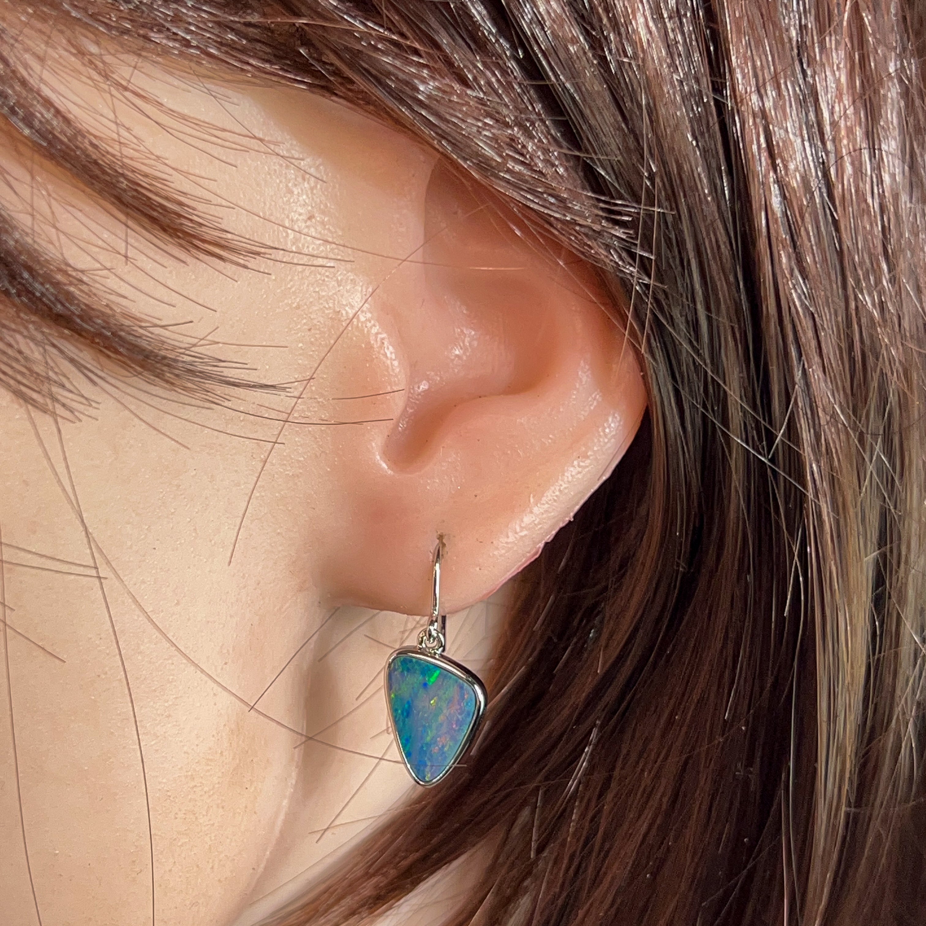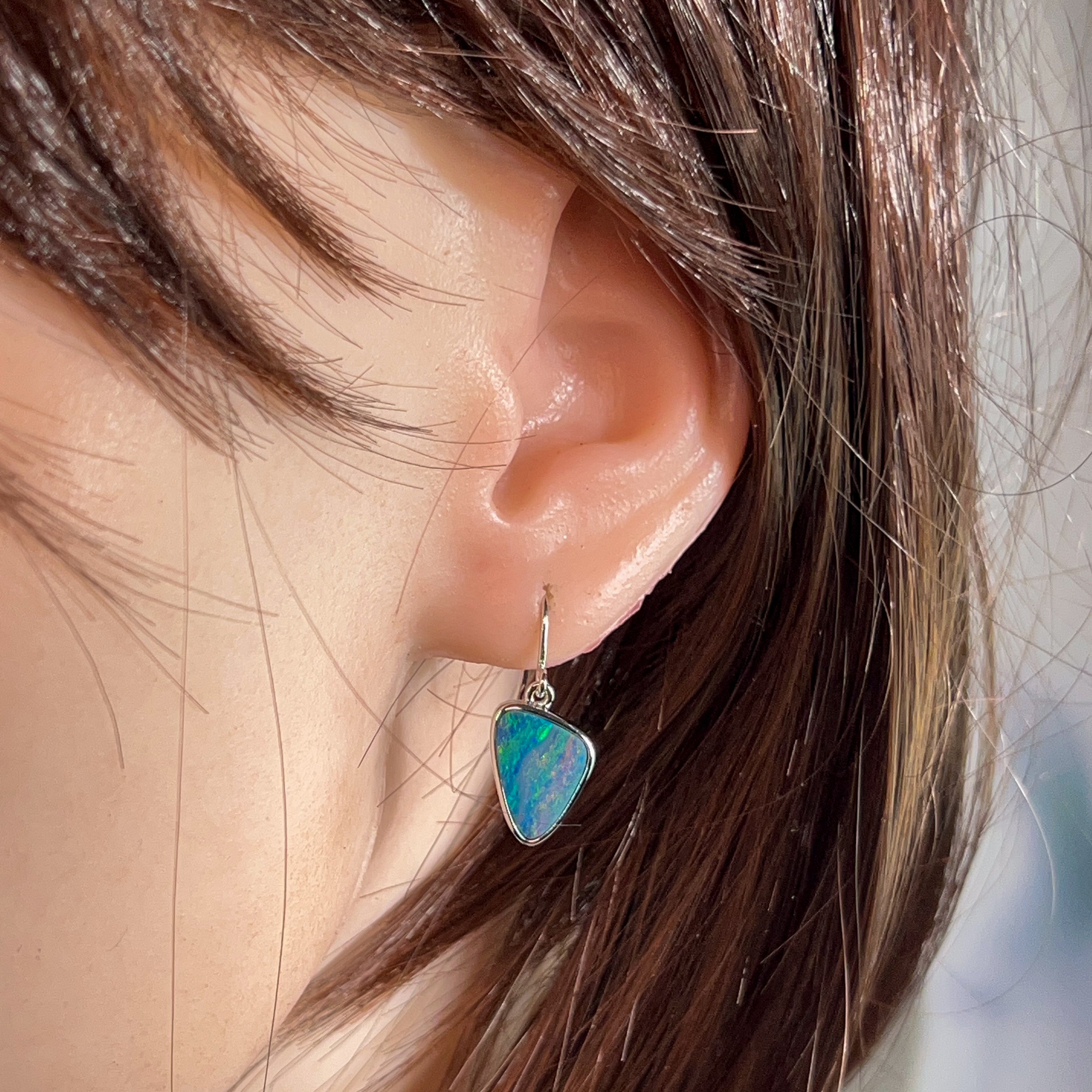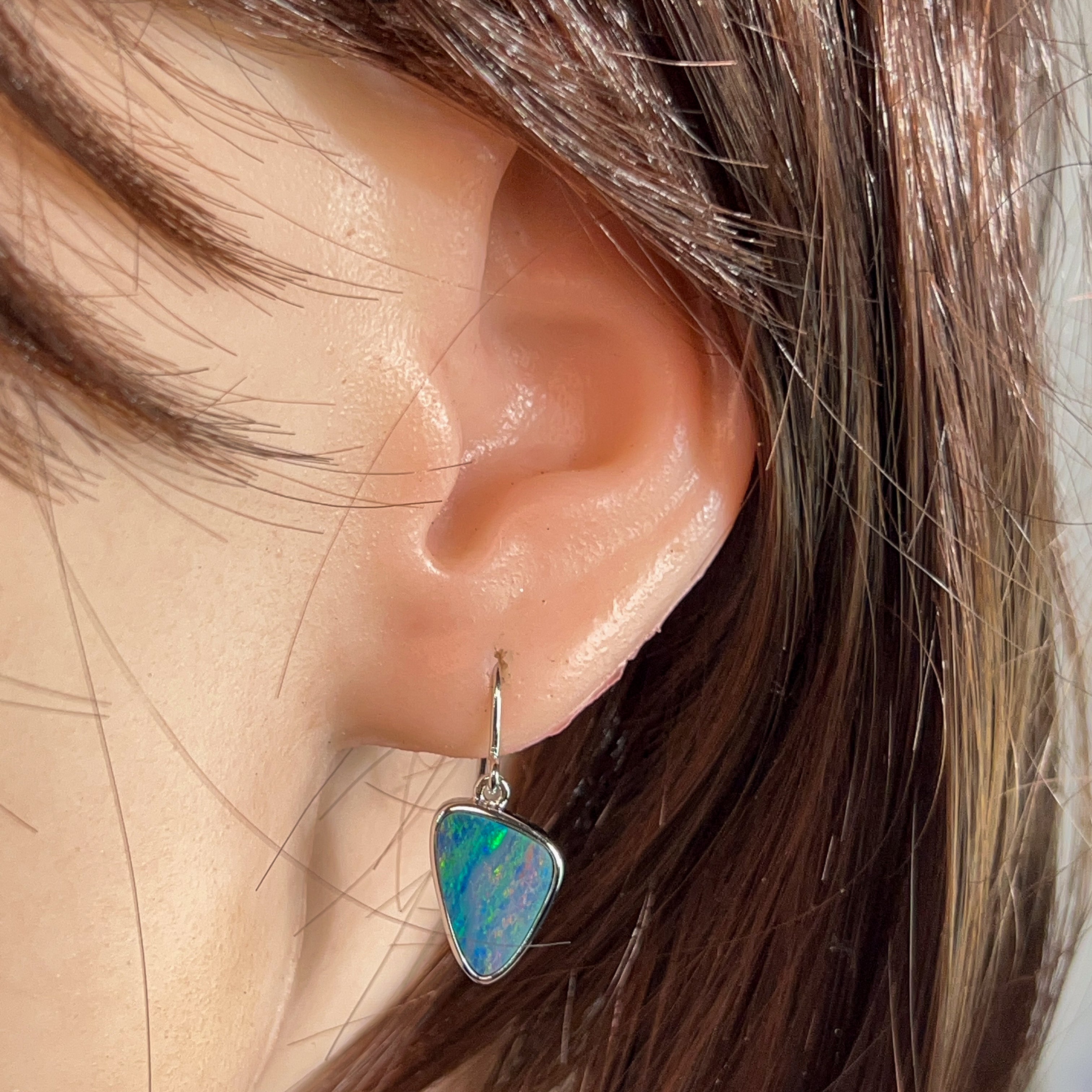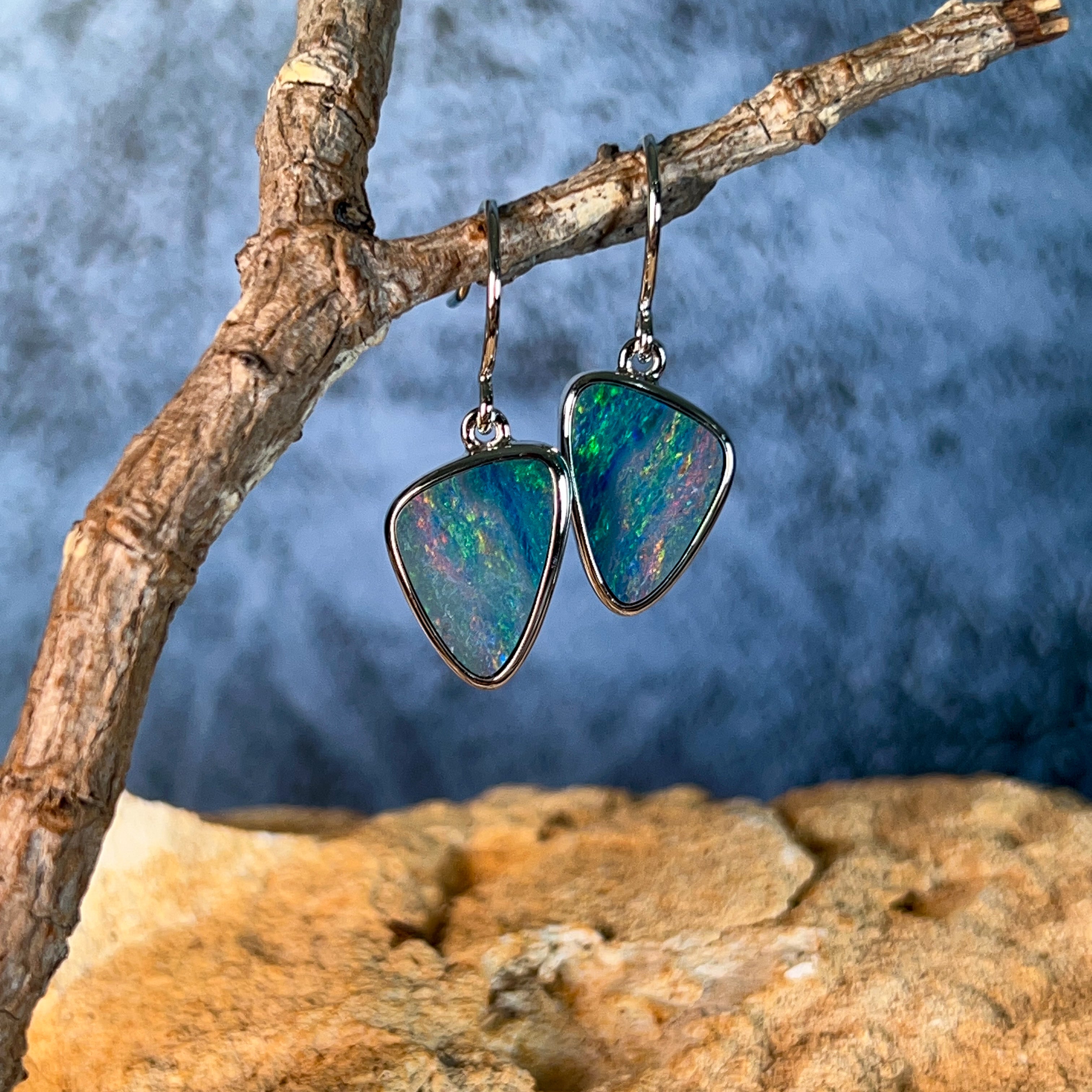 Sterling Silver triangle Opal doublet 5.38ct dangling earrings