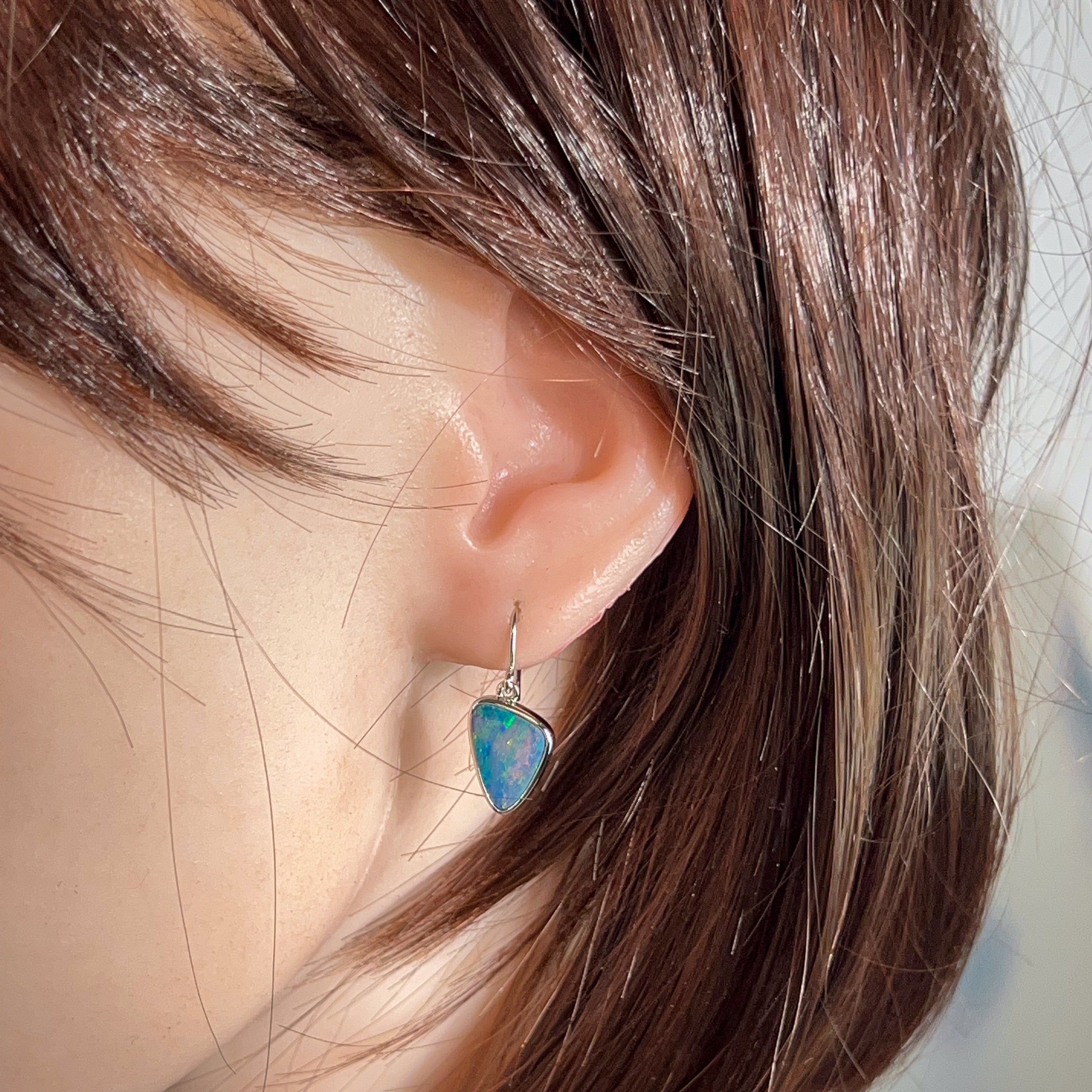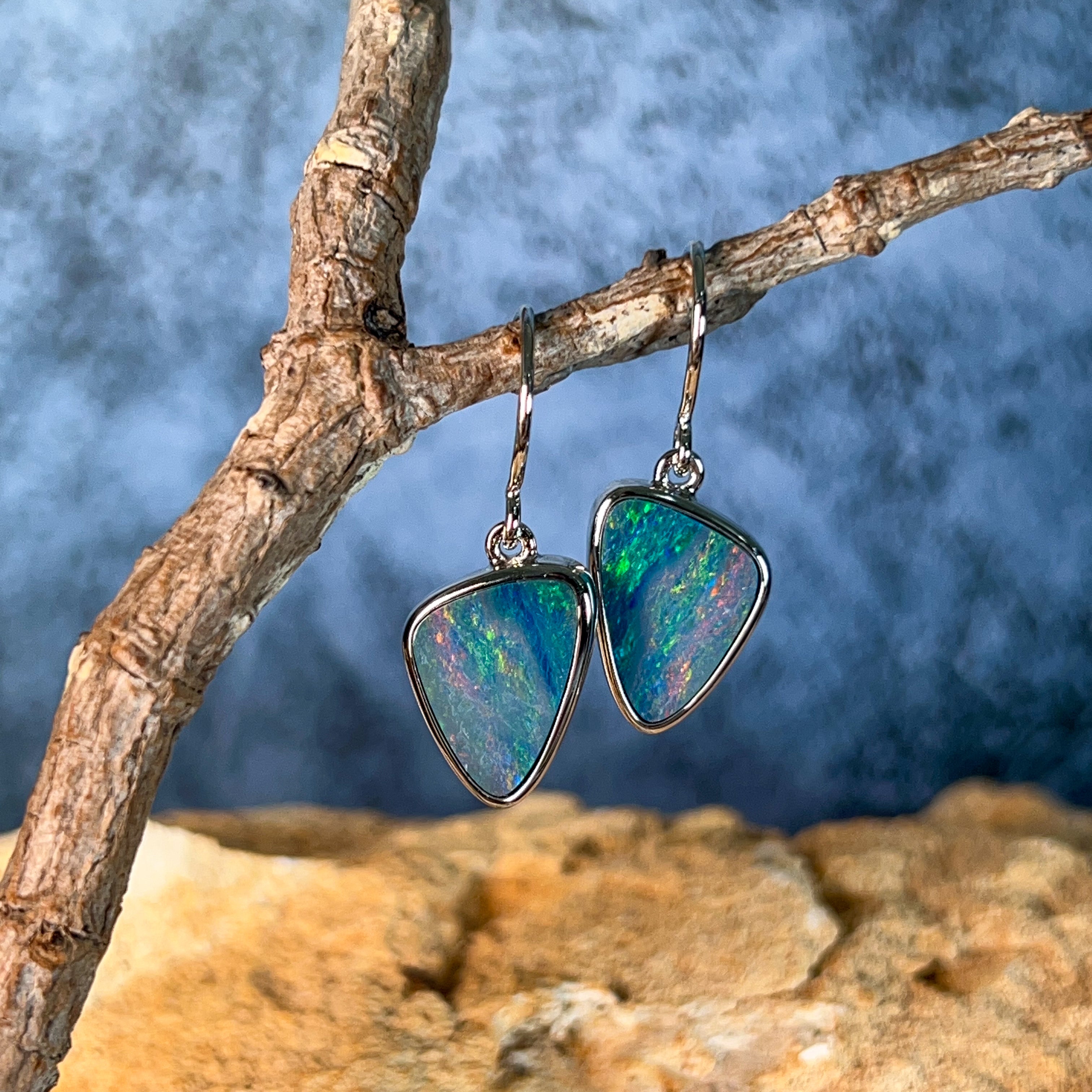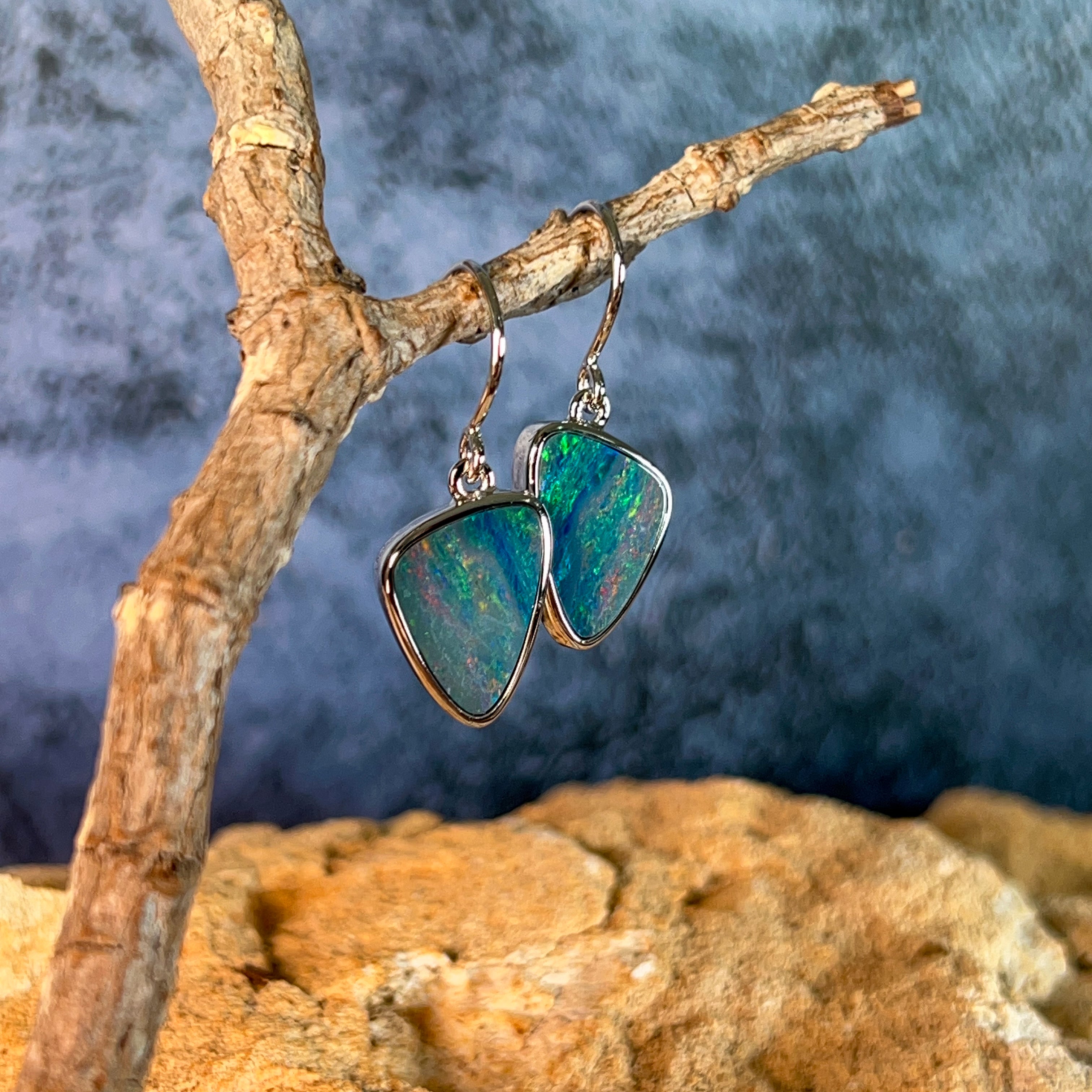 Sterling Silver triangle Opal doublet 5.38ct dangling earrings