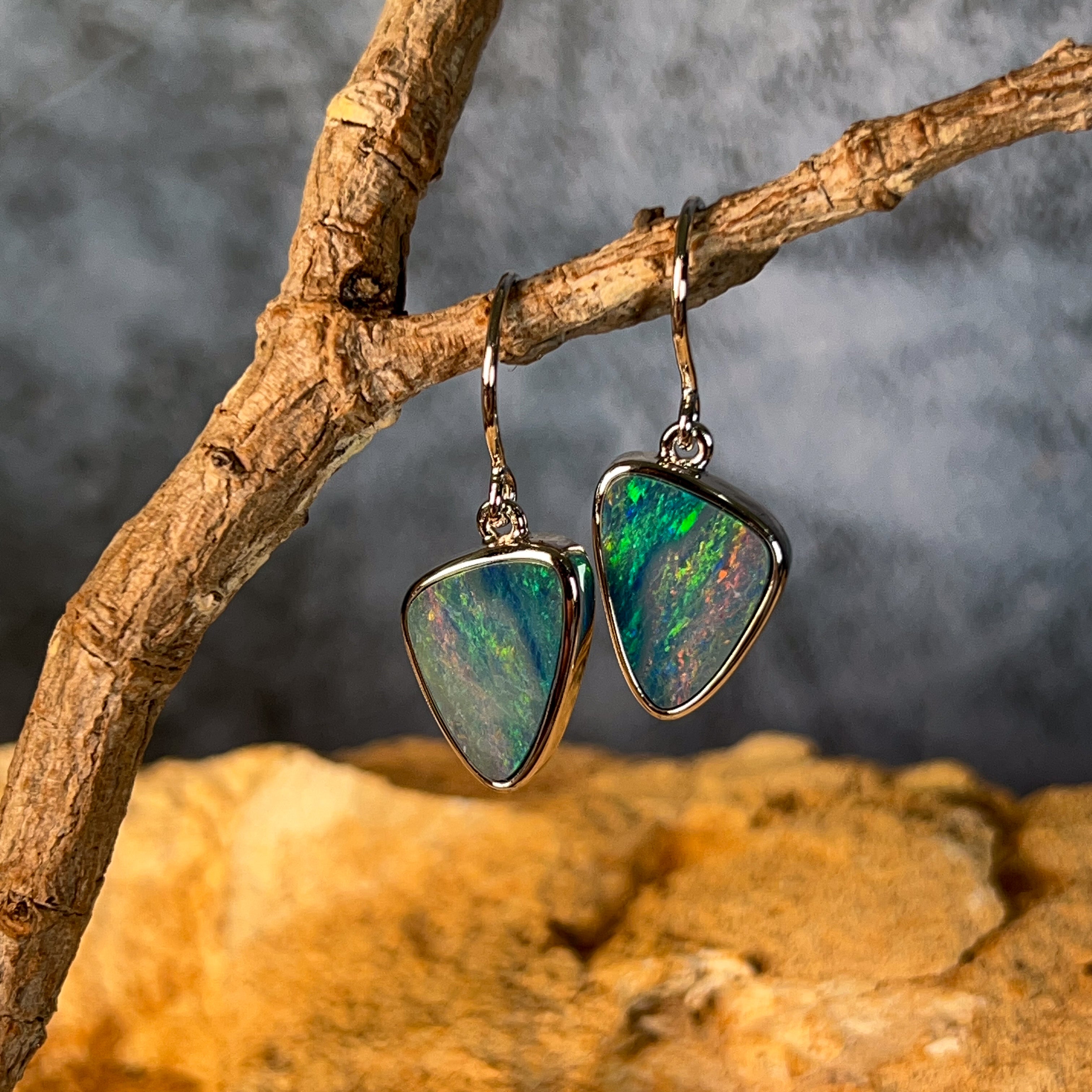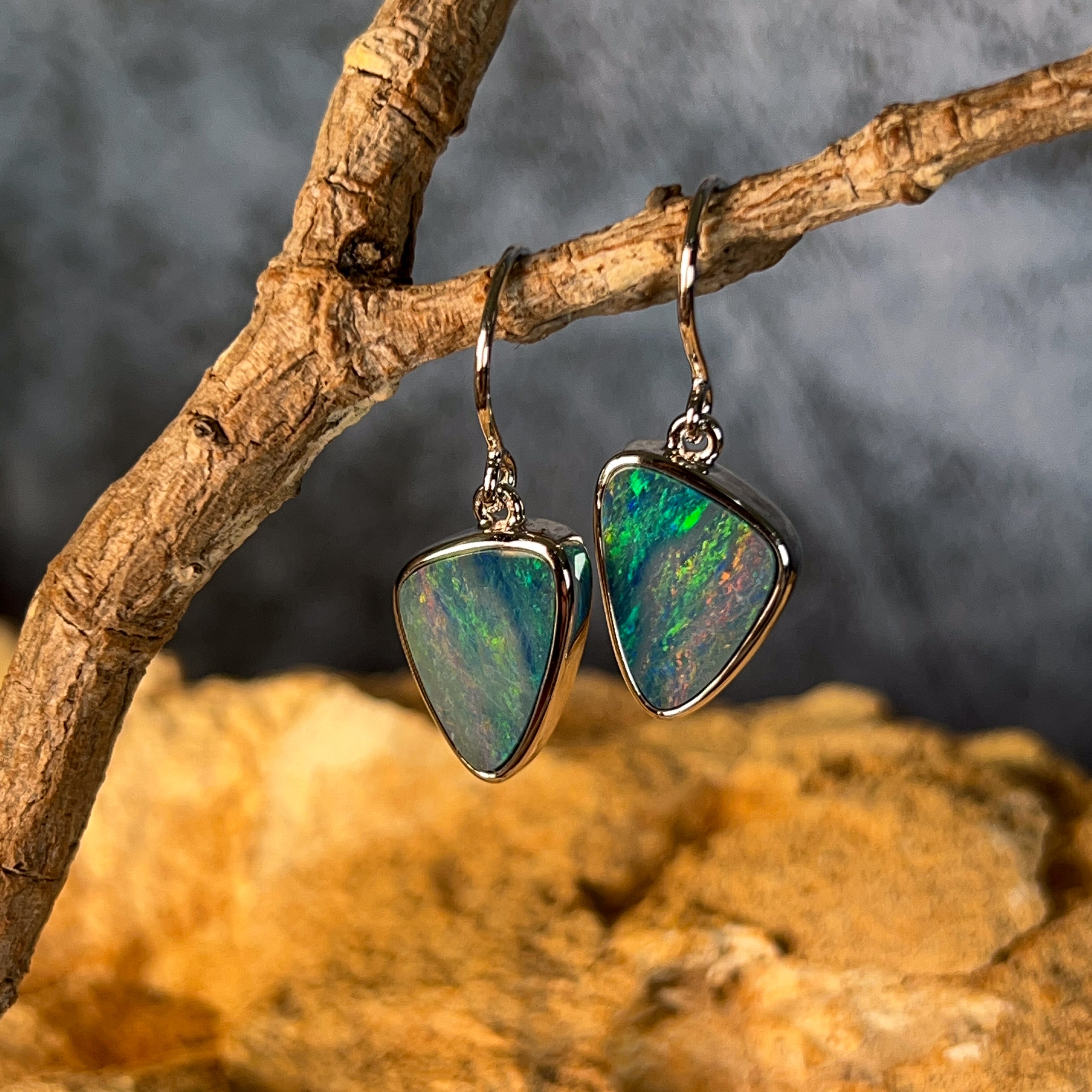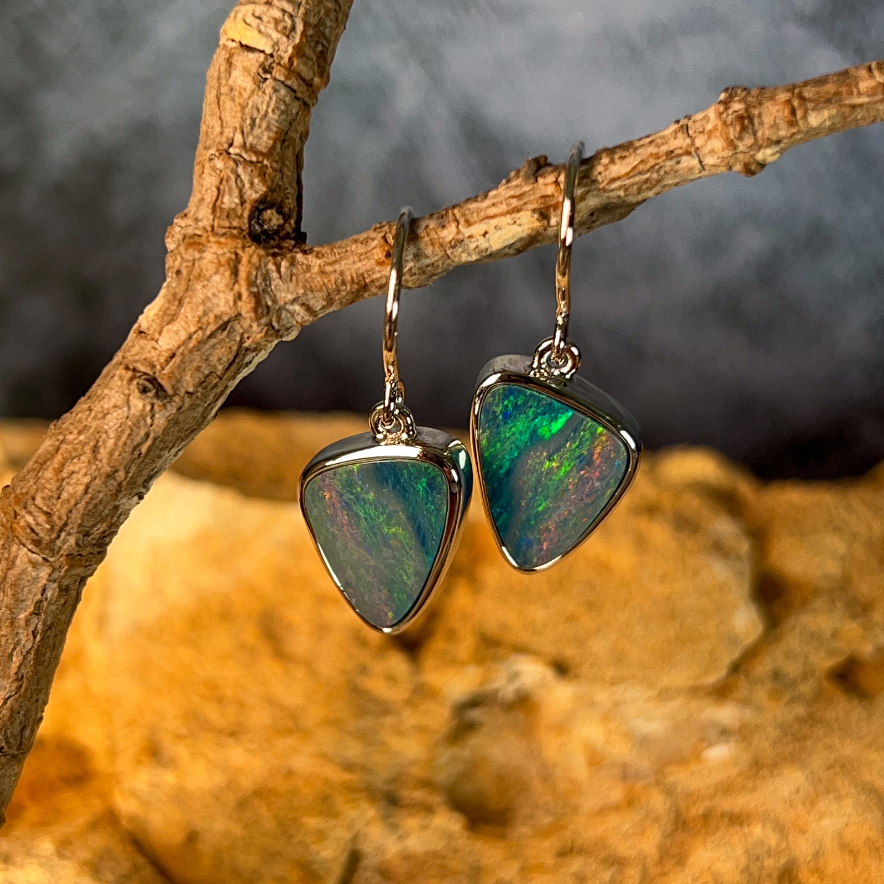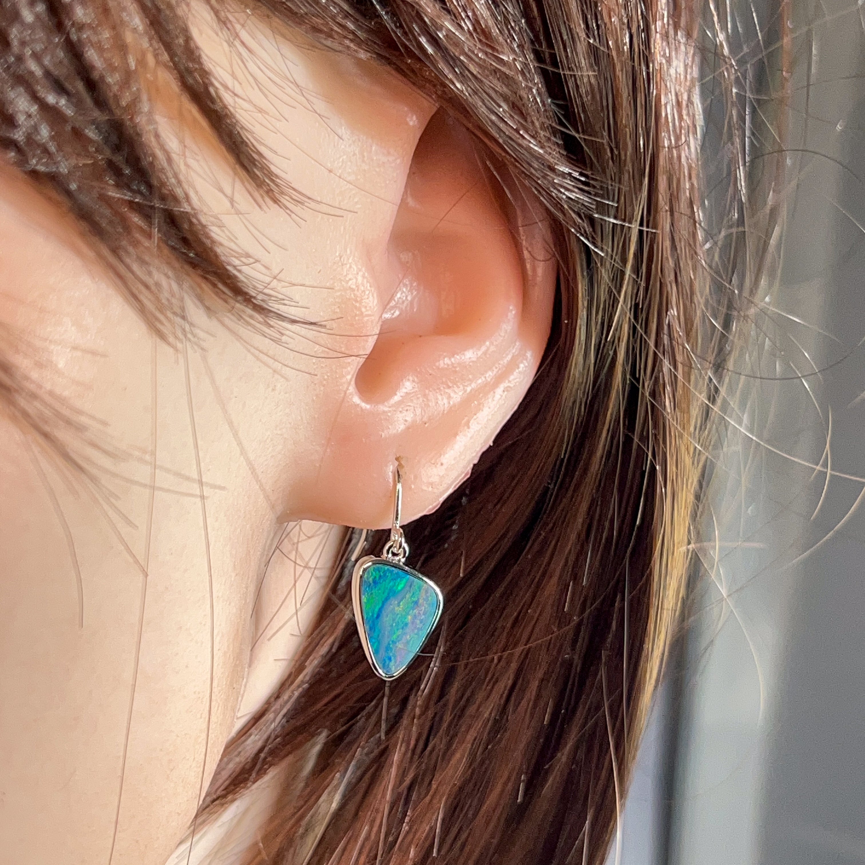 Sterling Silver triangle Opal doublet 5.38ct dangling earrings