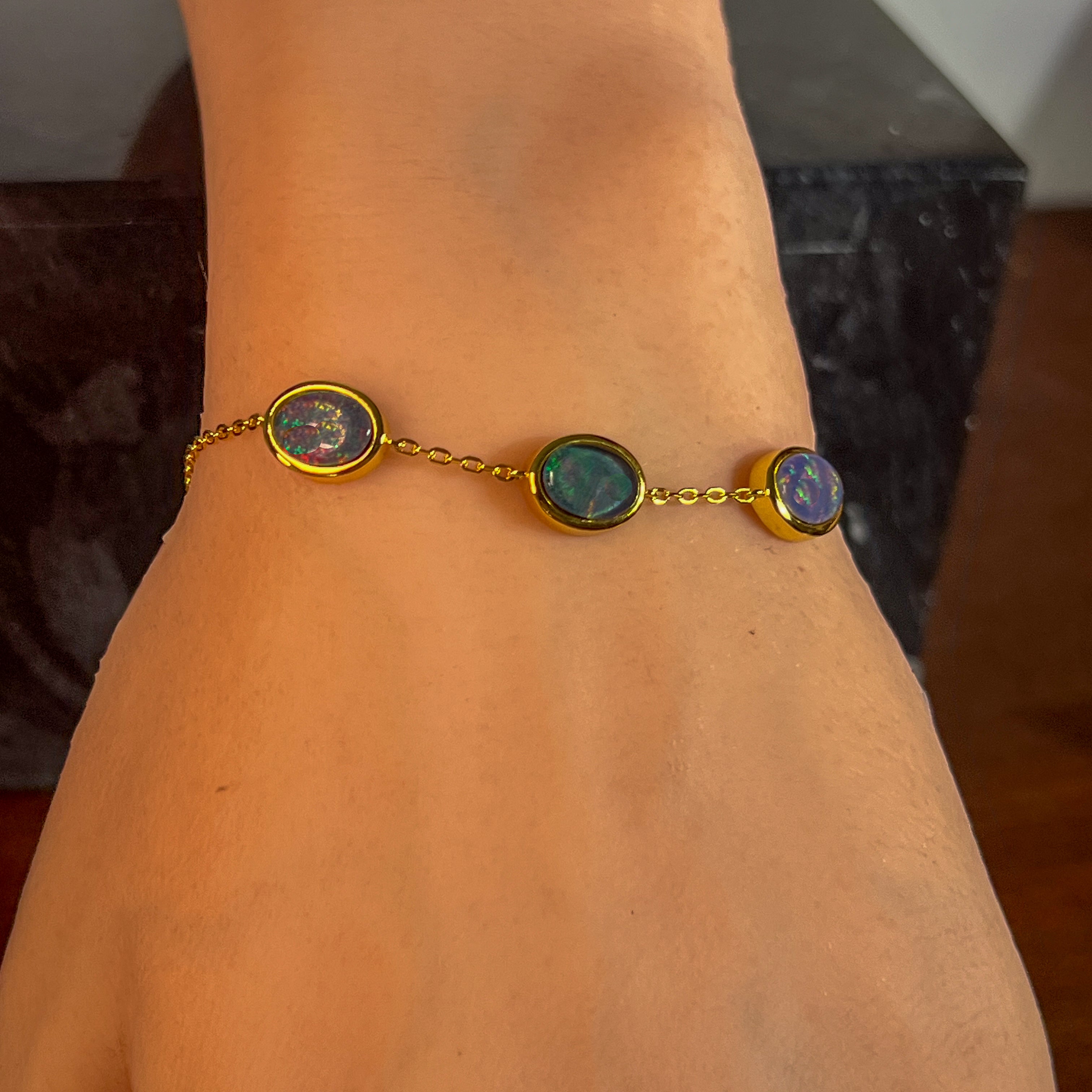 Gold Plated Silver 8x6mm Opal triplet bracelet 3 spaced