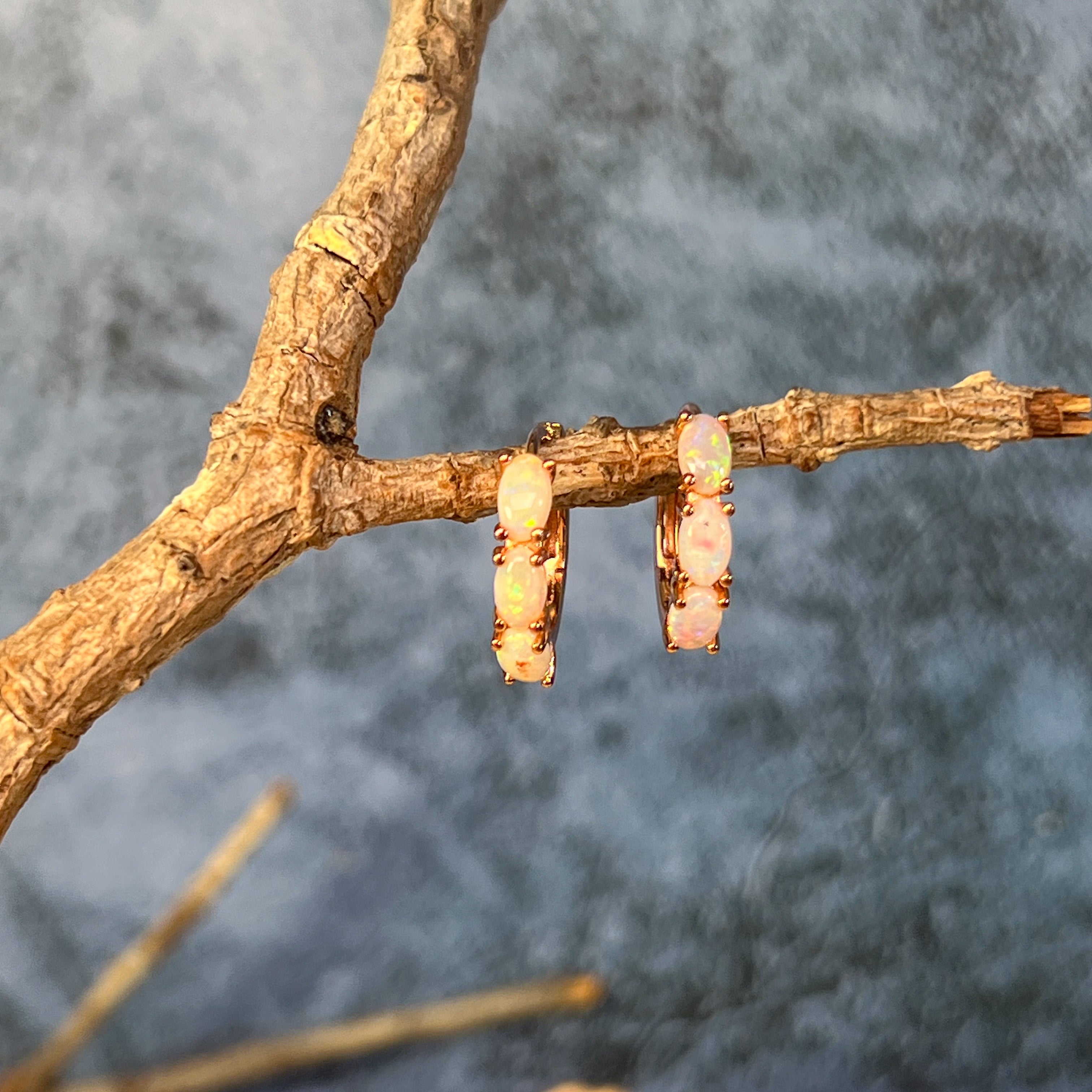 Rose Gold plated Silver huggie style 5x3mm Opal earrings