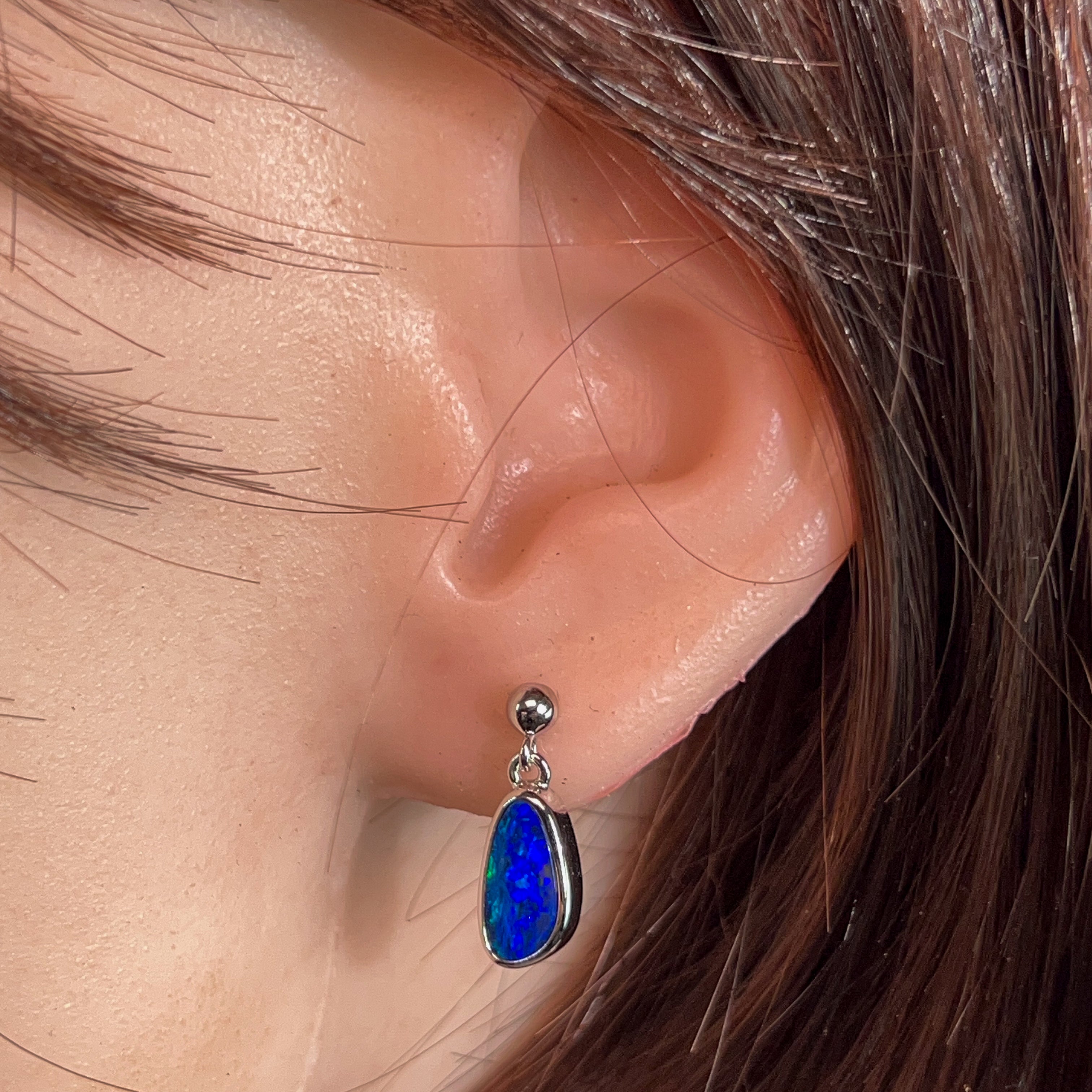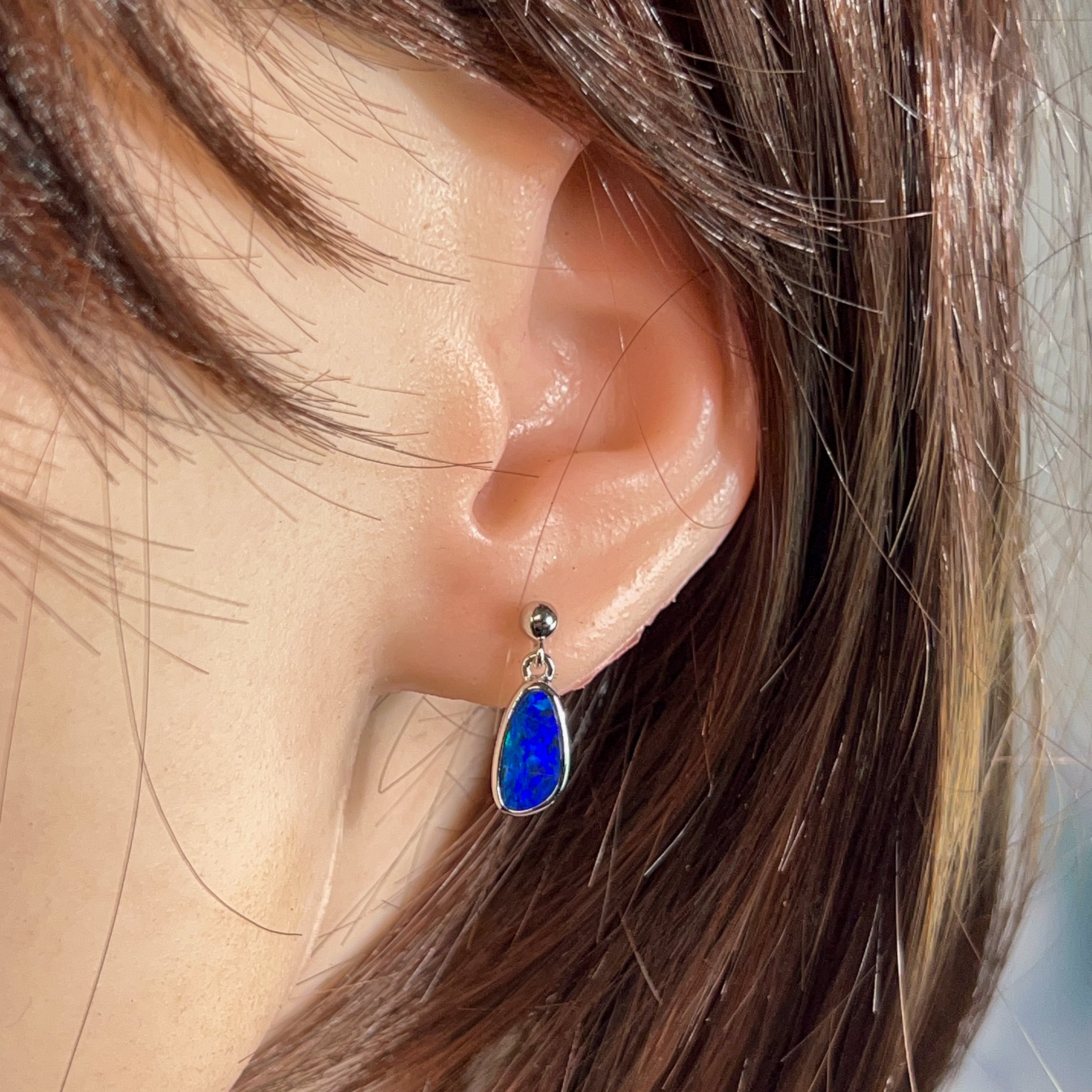 Dive into elegance with these stunning sterling silver drop earrings, showcasing 2.4 carats of mesmerising opal. Each stone dances with deep blue hues and flashes of colour that catch the light beautifully. The classic drop style keeps things timeless while the precious opal adds that wow factor. Perfect for adding a touch of sophistication to any occasion—whether you're dressing up or keeping it casual. These beauties are sure to become your go-to pair.